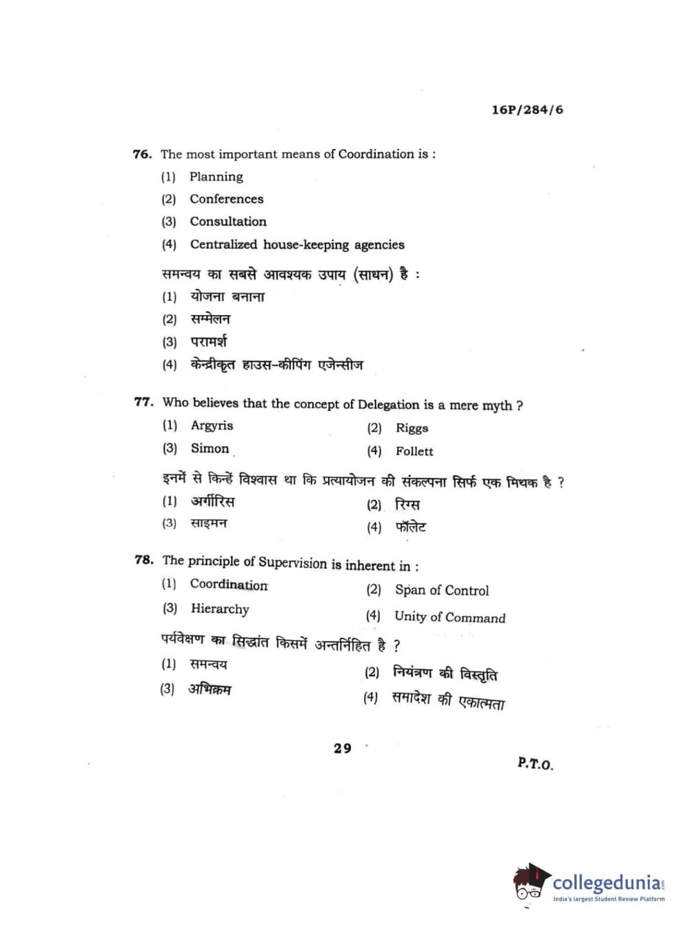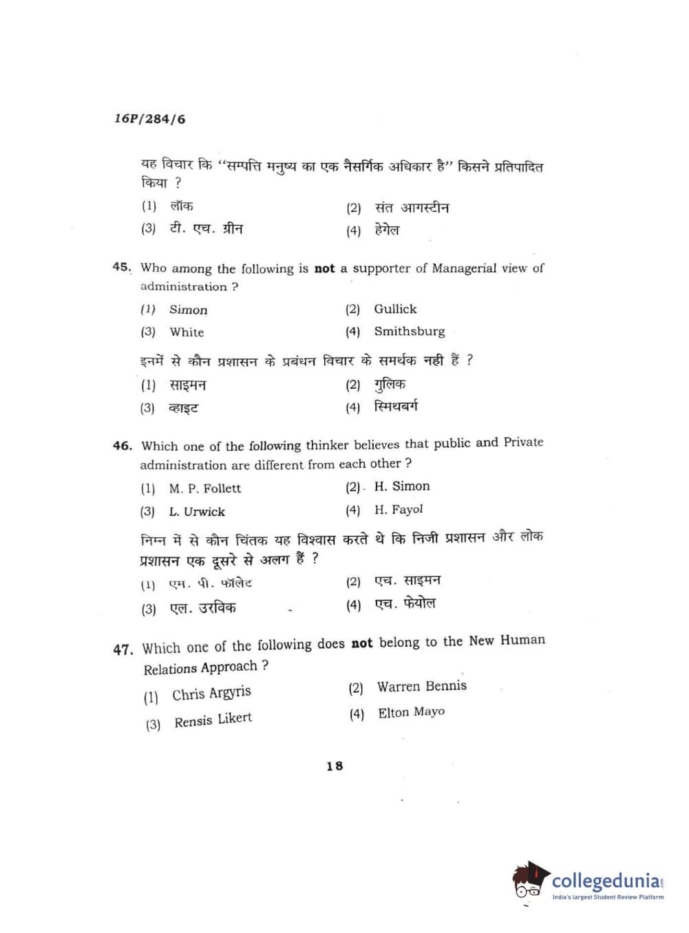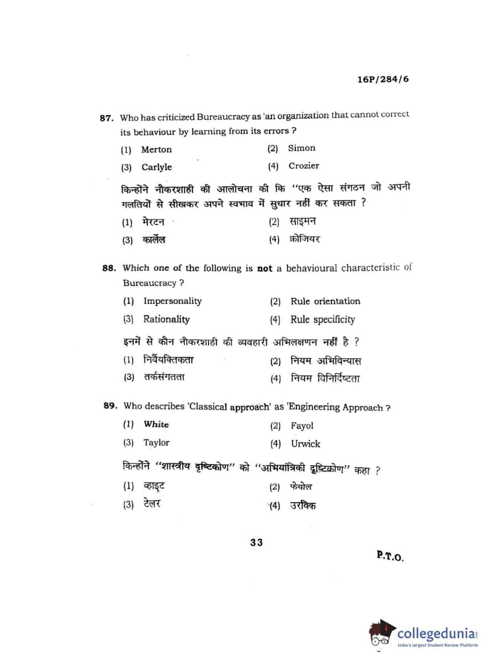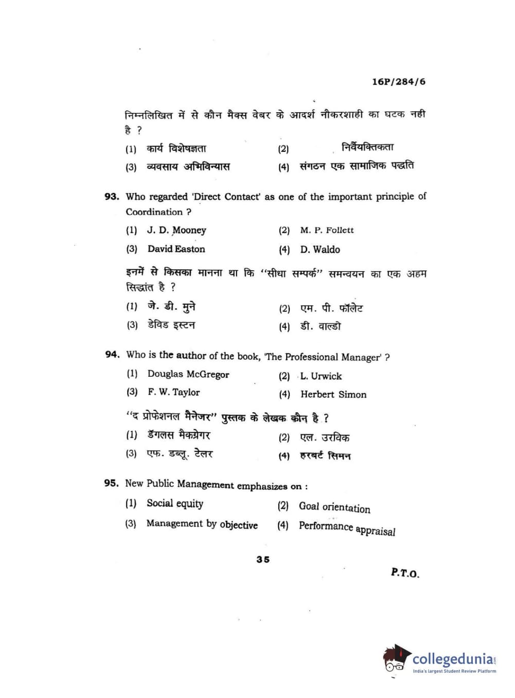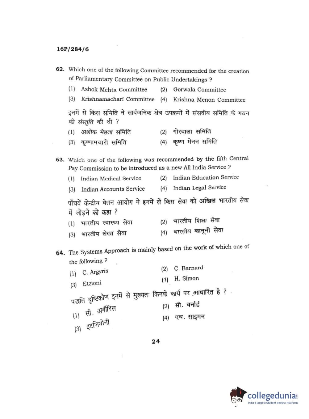 BHU PET 2016 M.A. PUBLIC ADMINISTRATION Question Paper with Answer Key PDFs