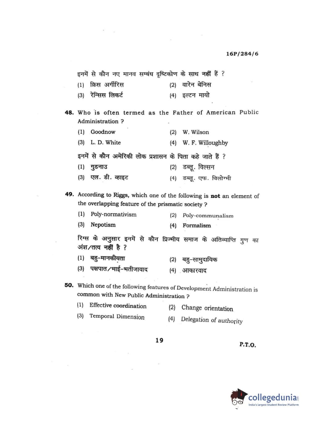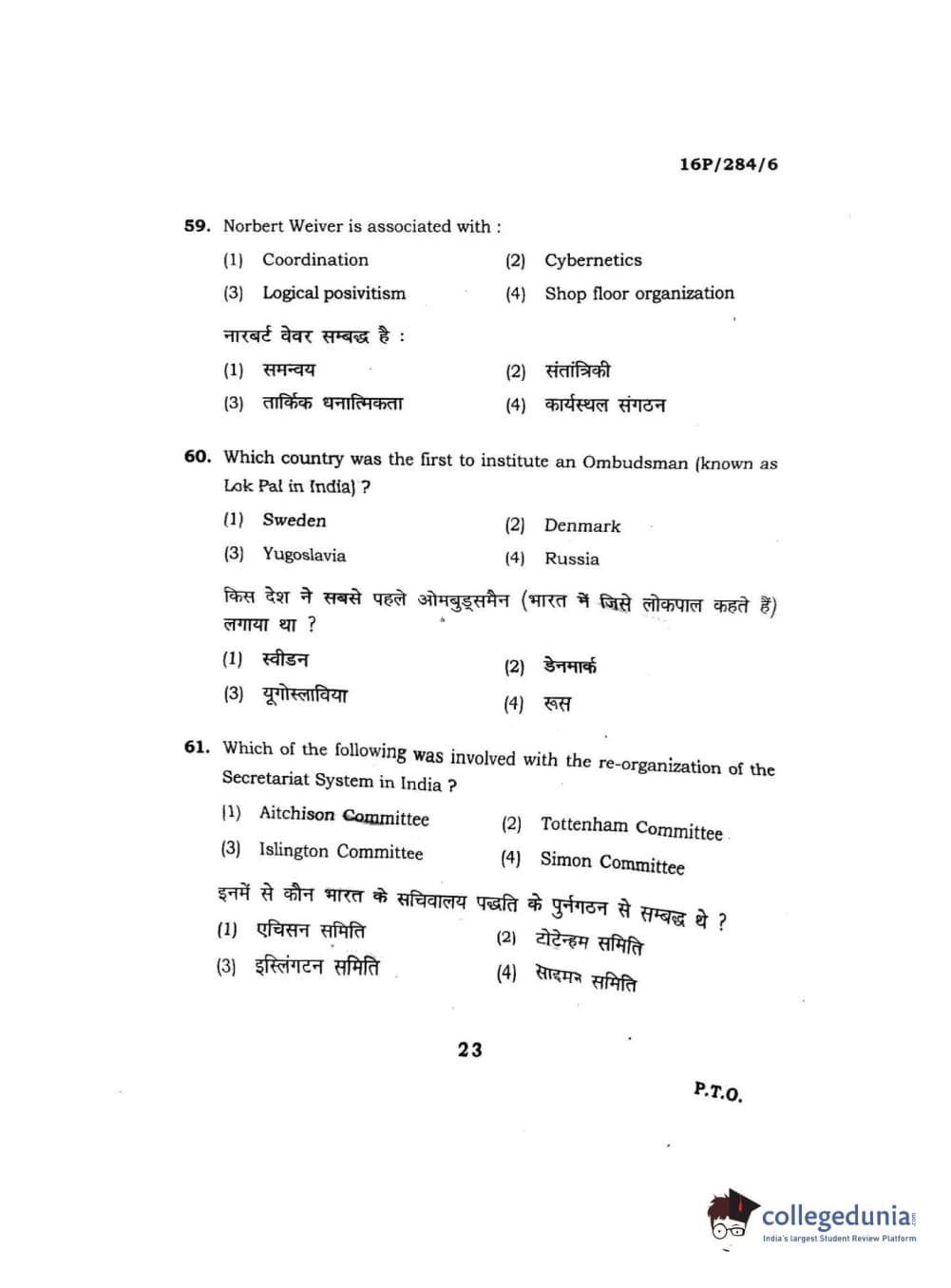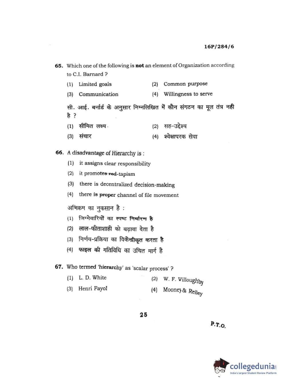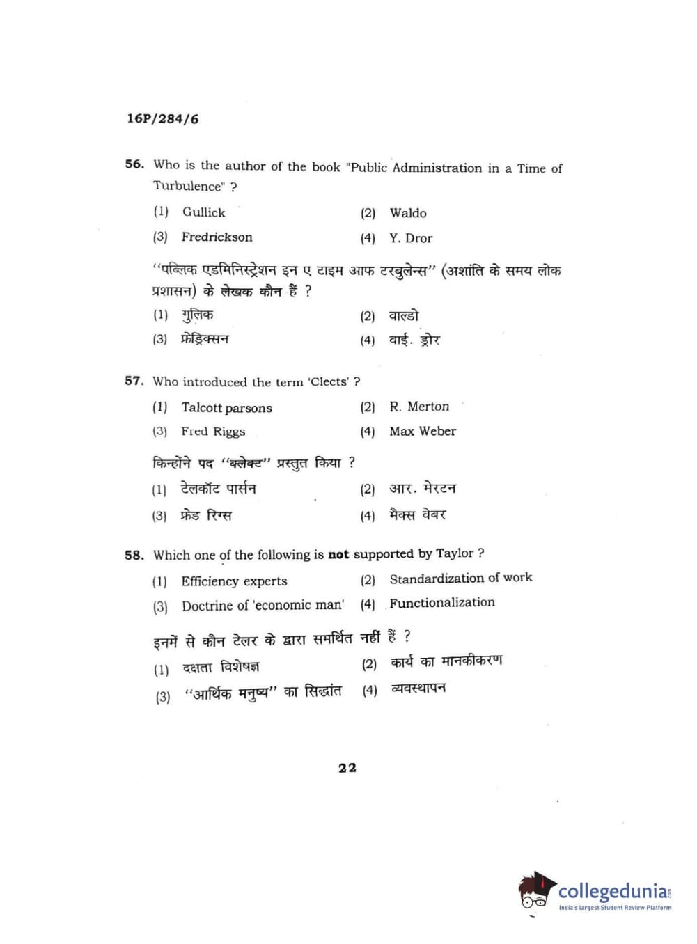 BHU PET 2016 M.A. PUBLIC ADMINISTRATION Question Paper with Answer Key PDFs