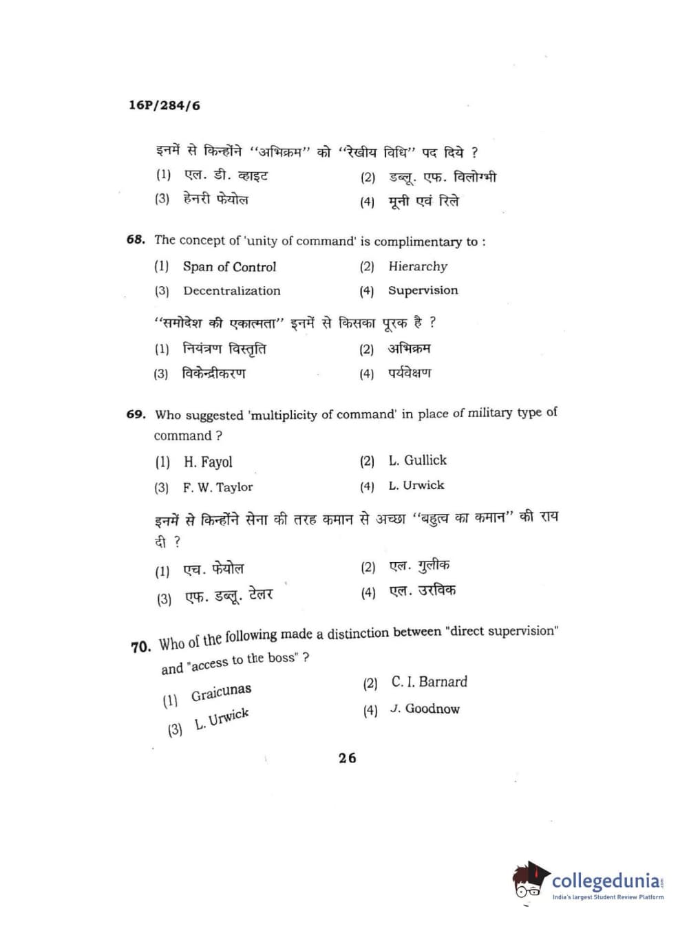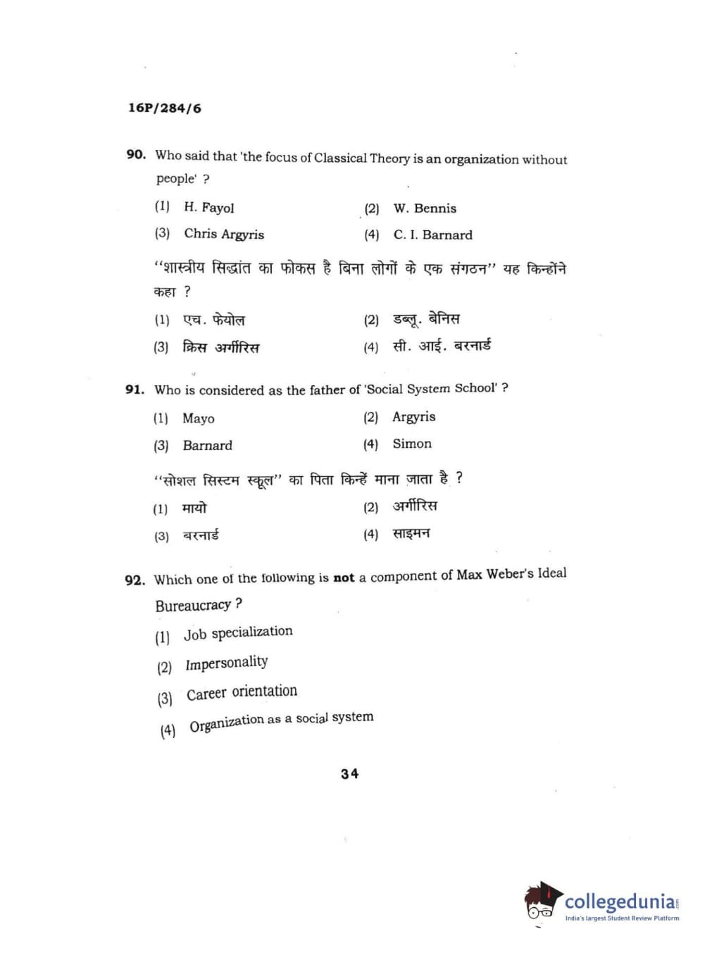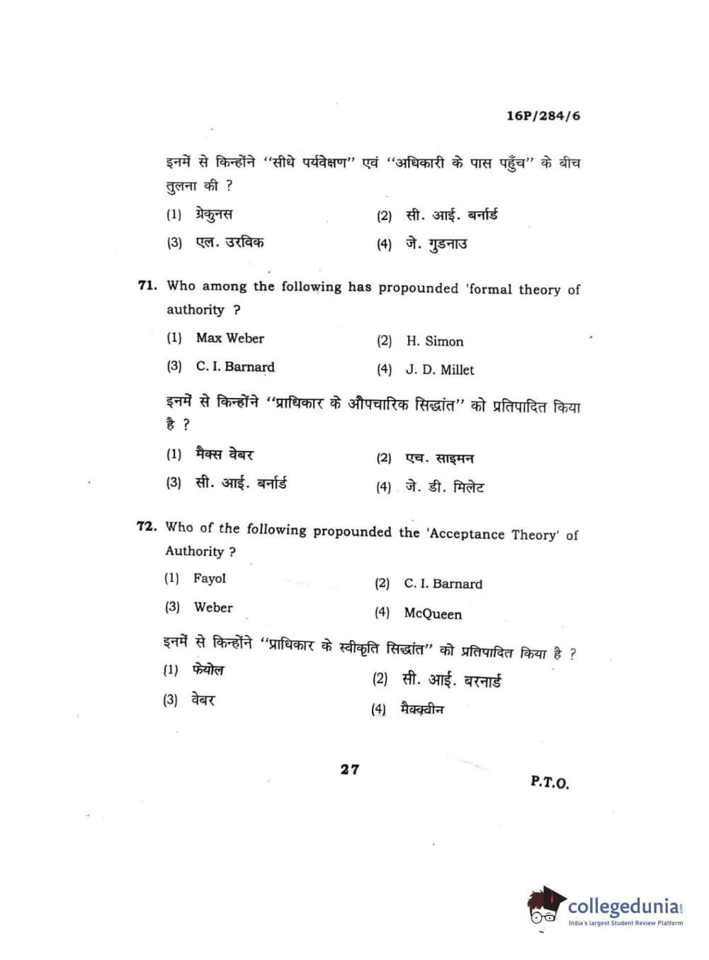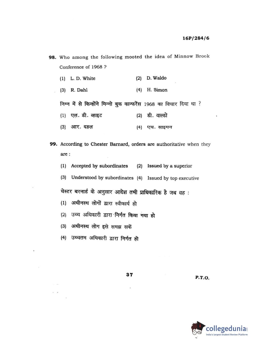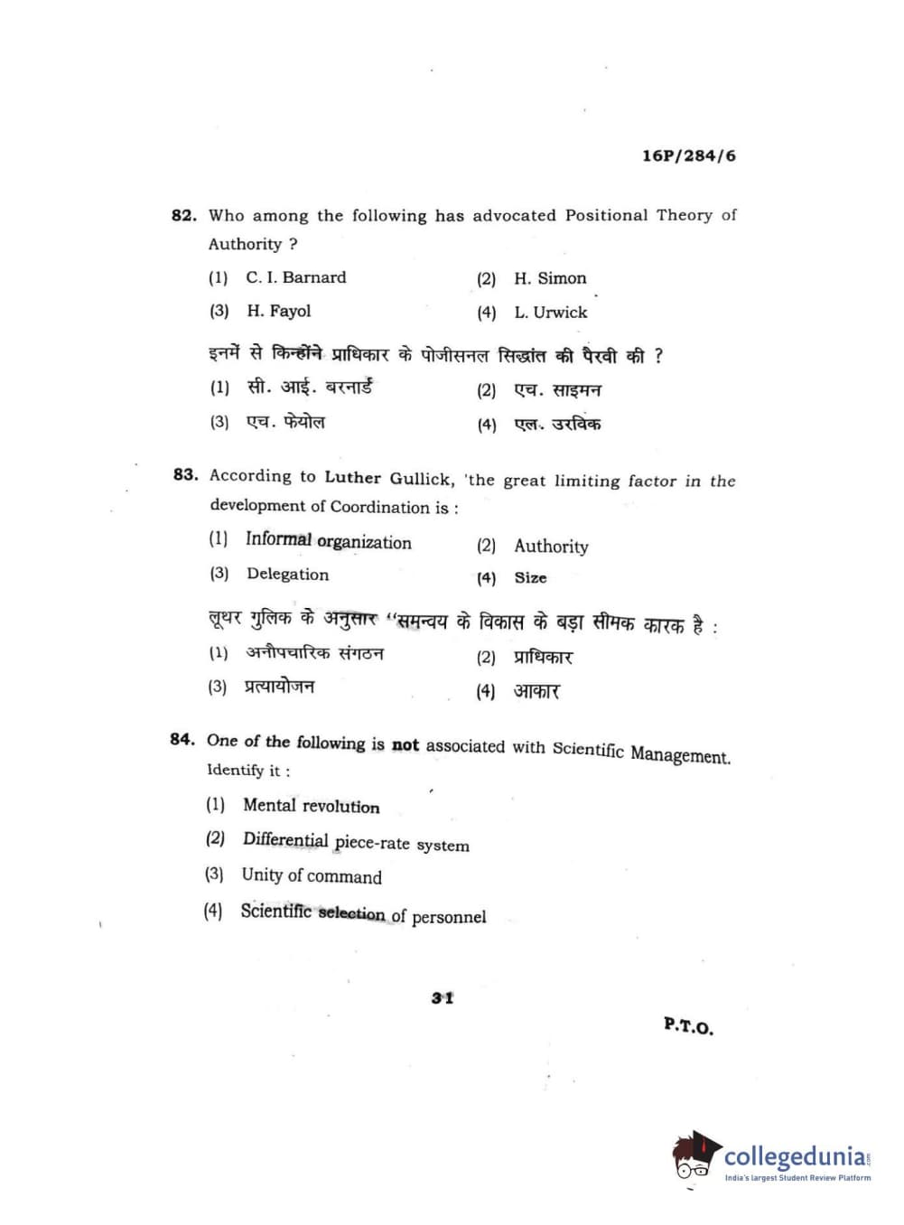 BHU PET 2016 M.A. PUBLIC ADMINISTRATION Question Paper with Answer Key PDFs