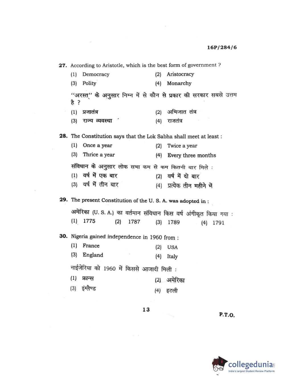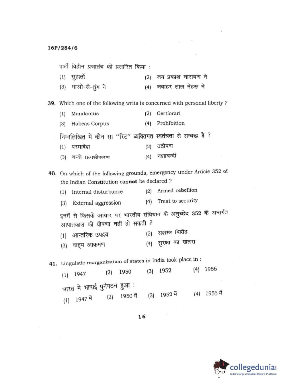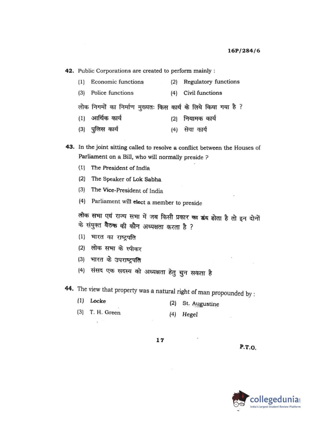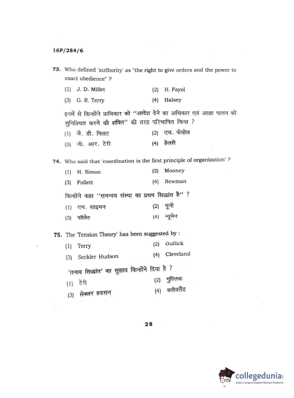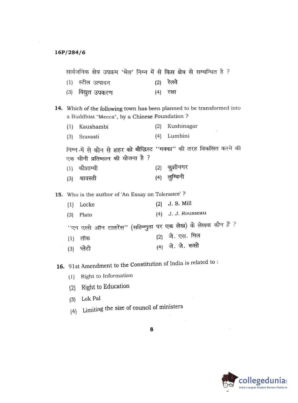 BHU PET 2016 M.A. PUBLIC ADMINISTRATION Question Paper with Answer Key PDFs