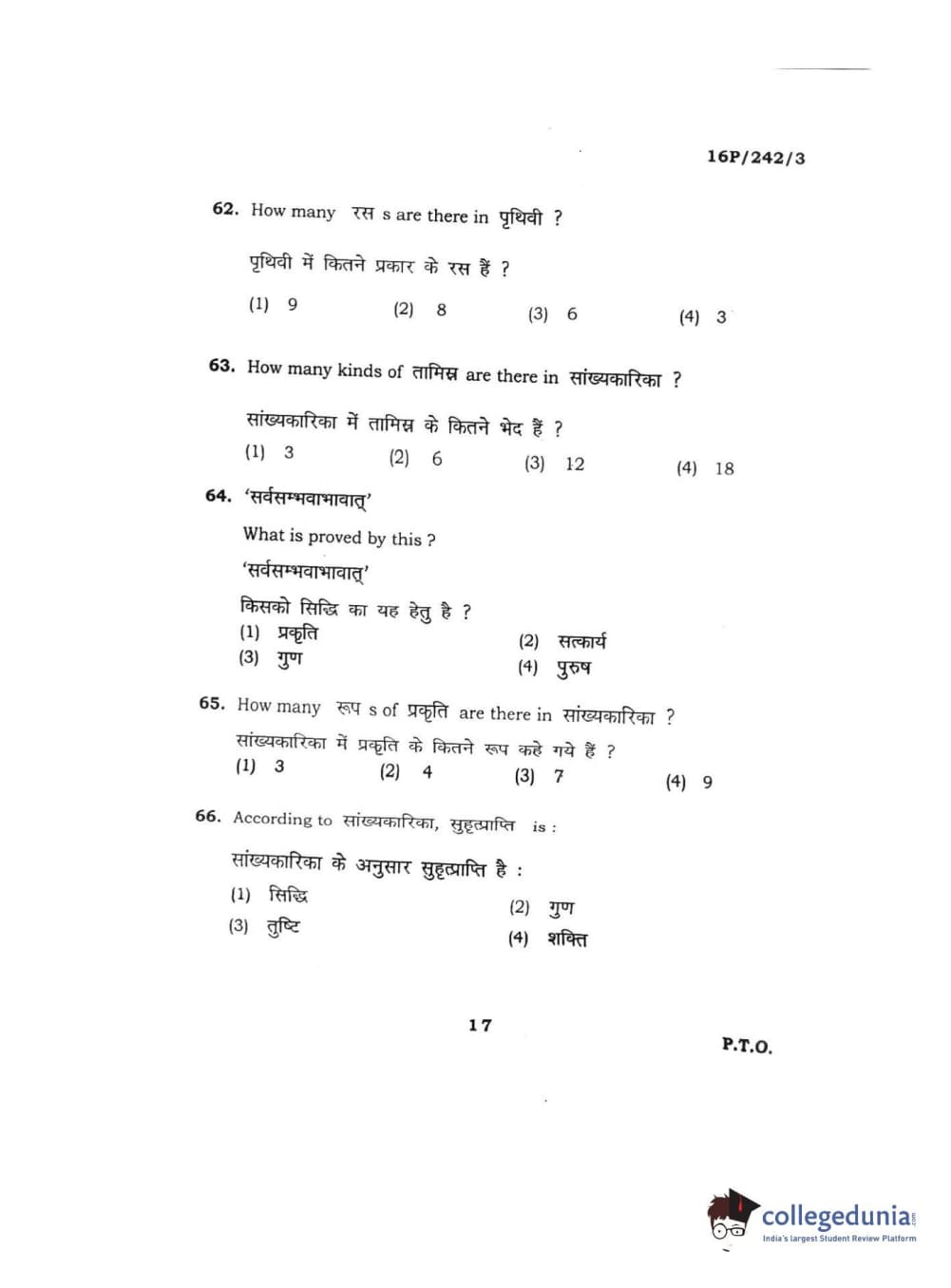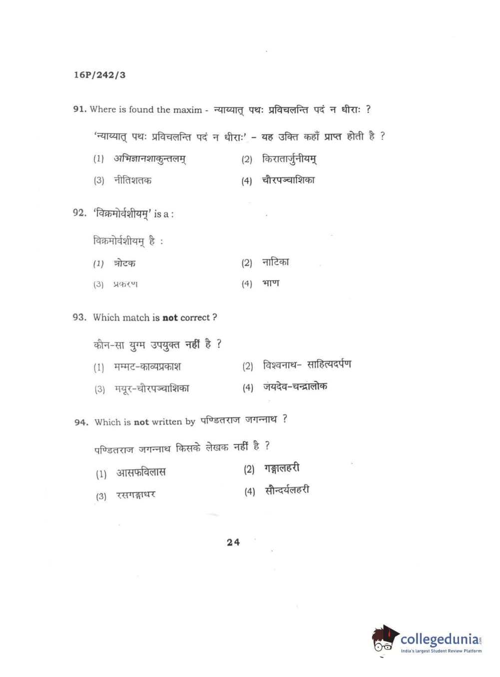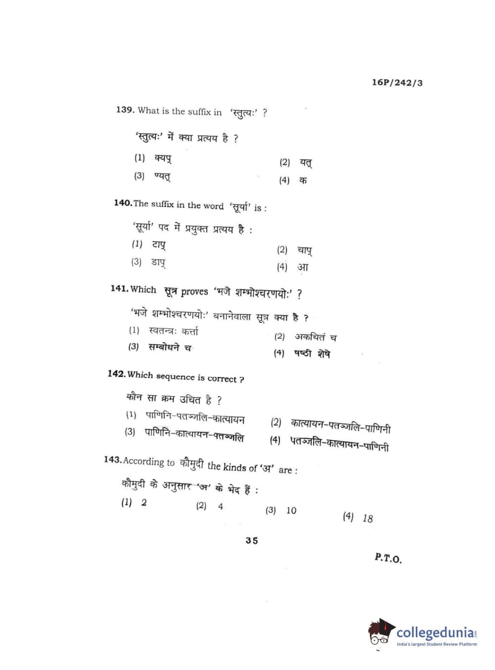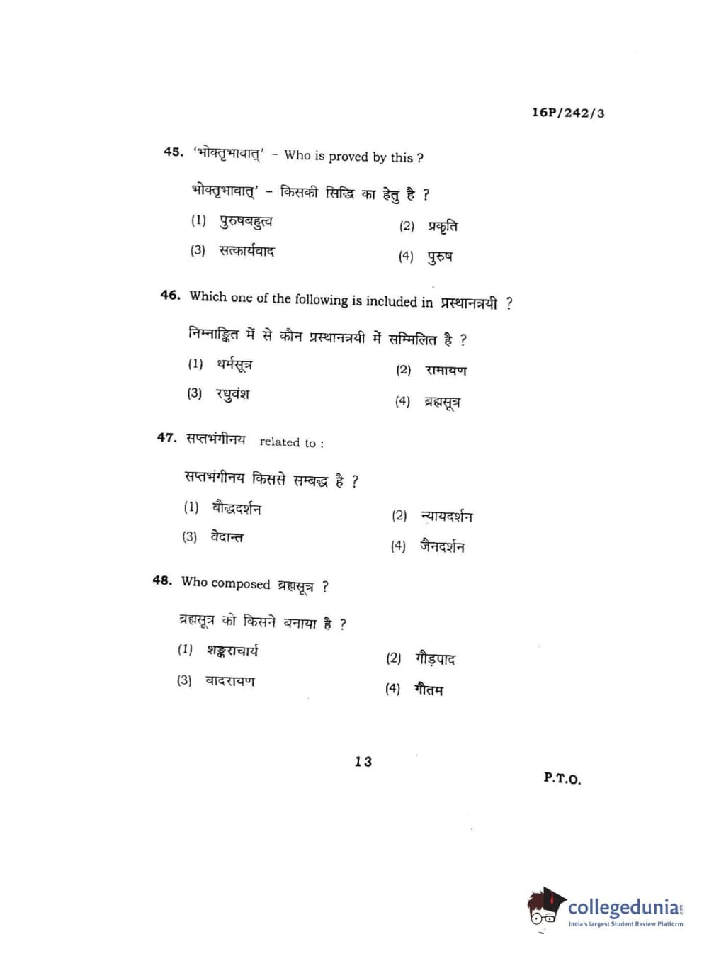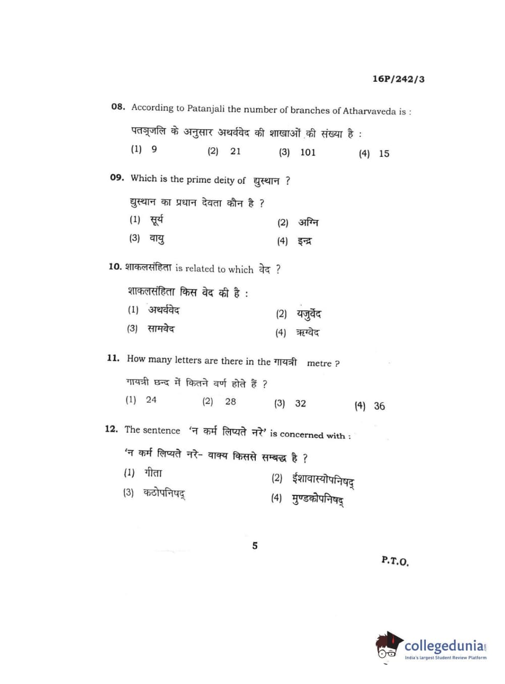 BHU PET 2016 M.A. SANSKRIT Question Paper with Answer Key PDFs