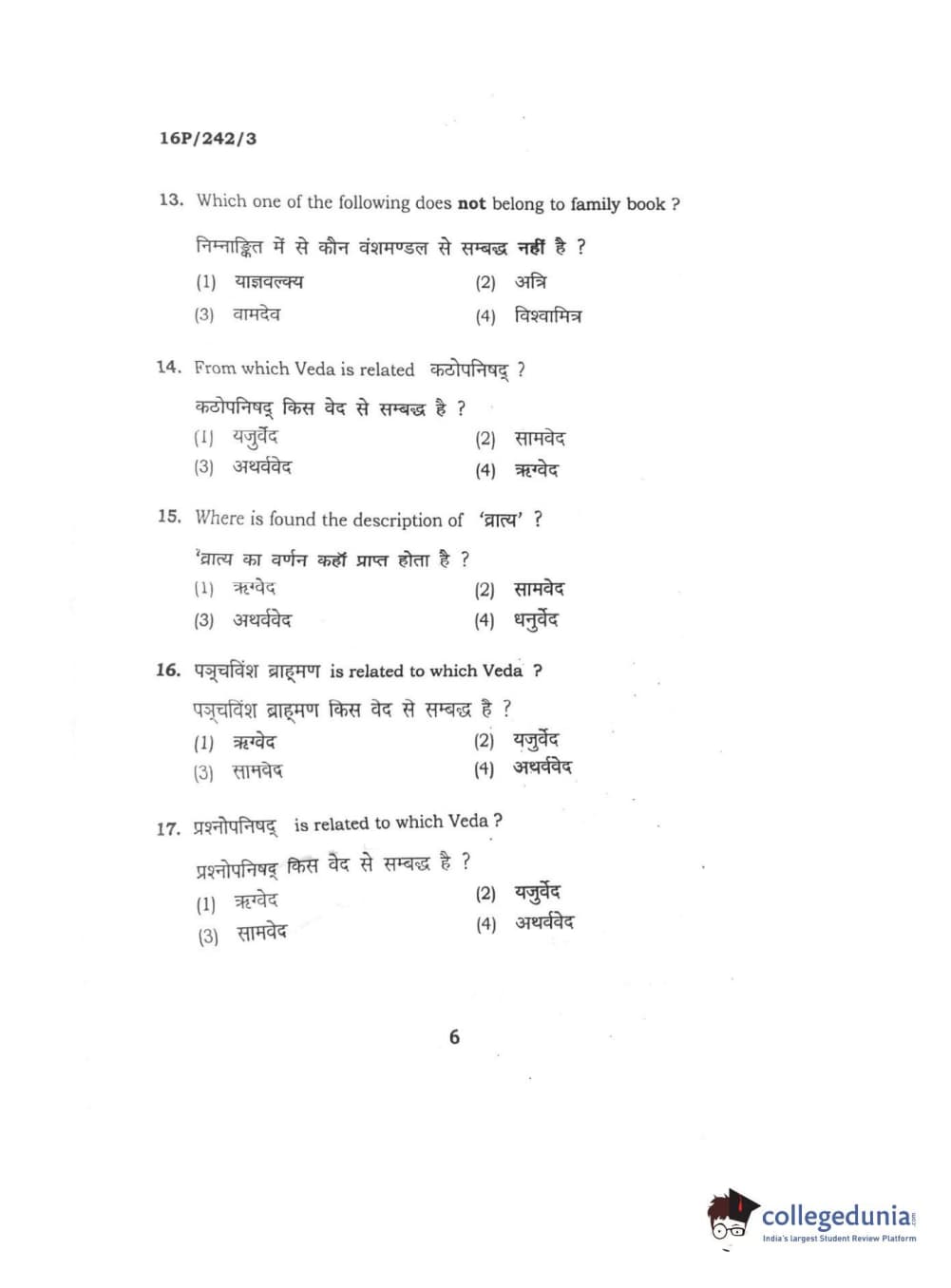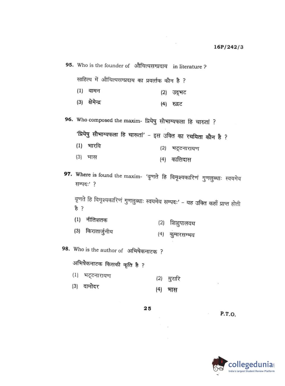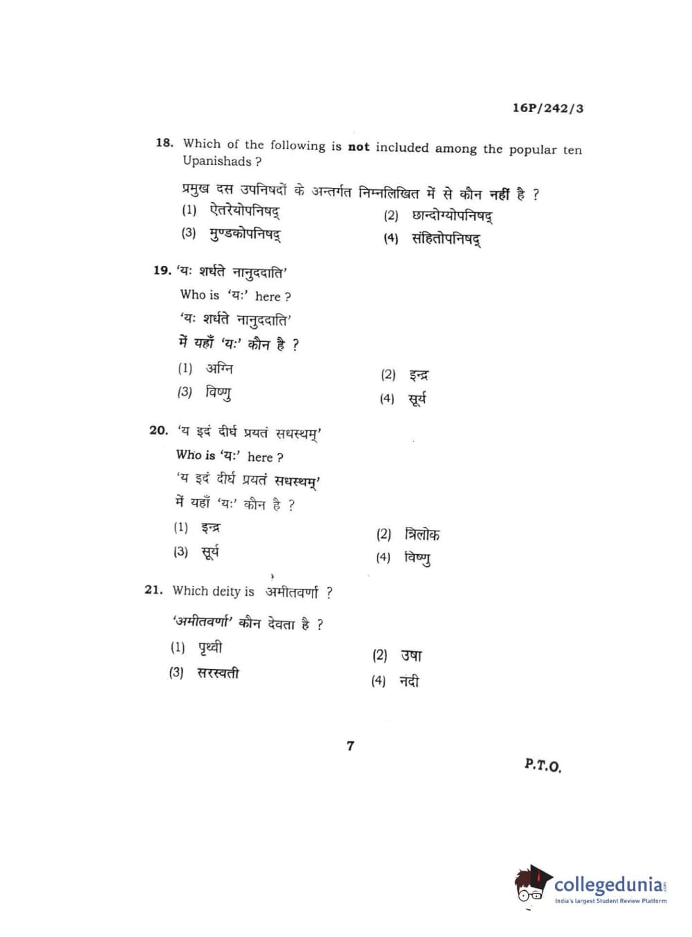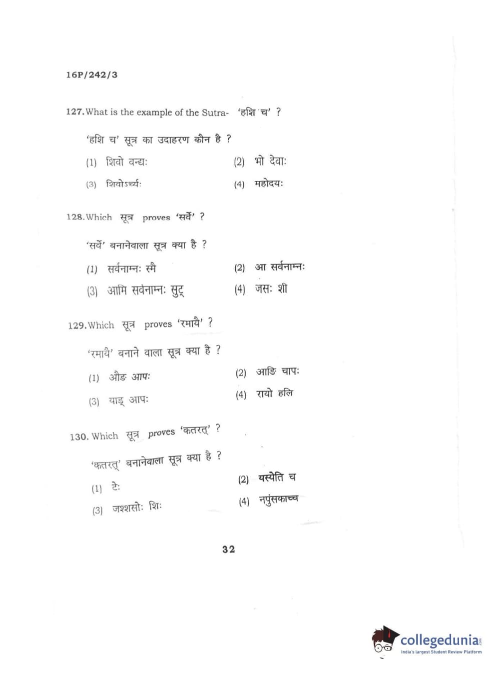 BHU PET 2016 M.A. SANSKRIT Question Paper with Answer Key PDFs