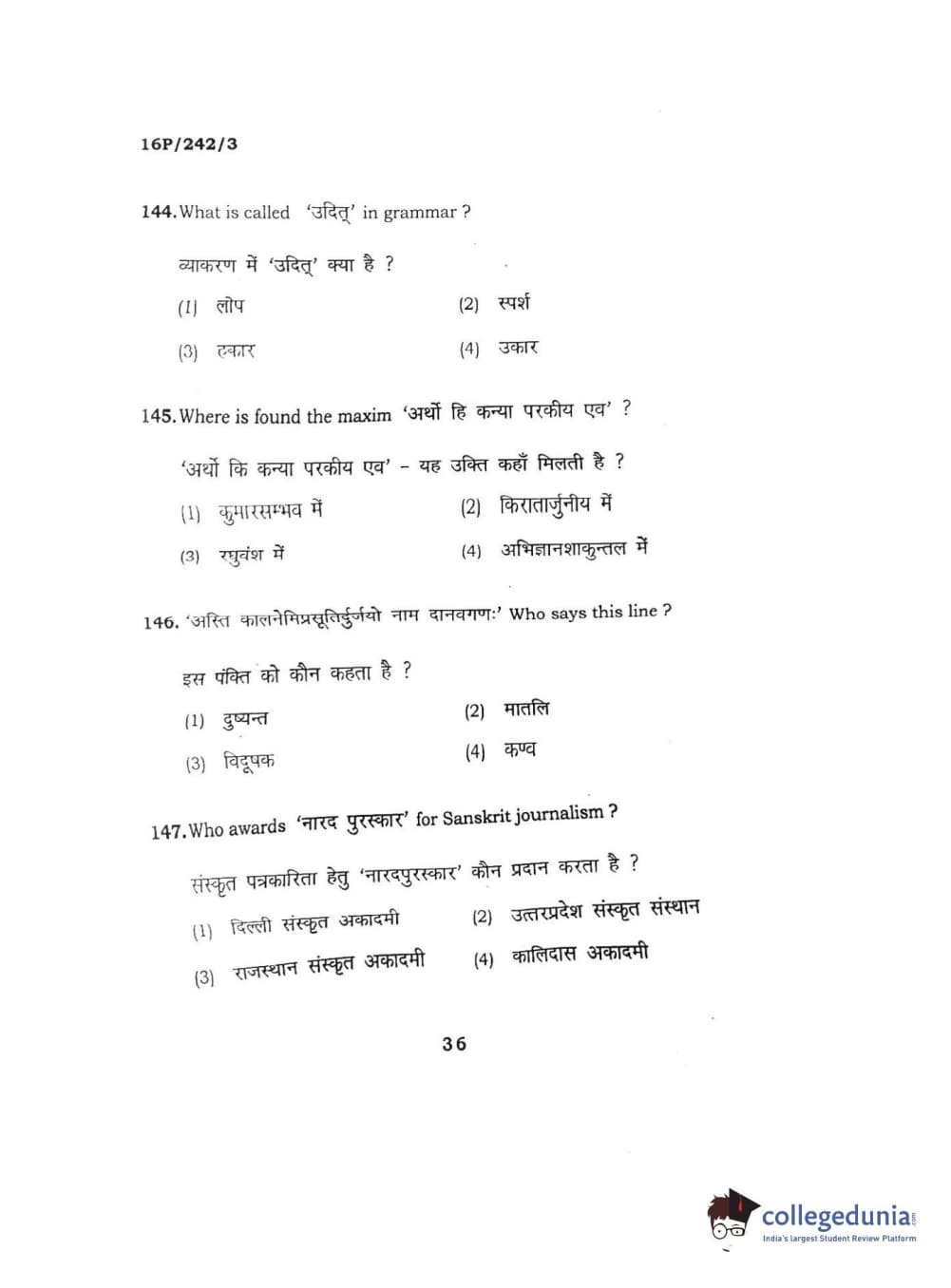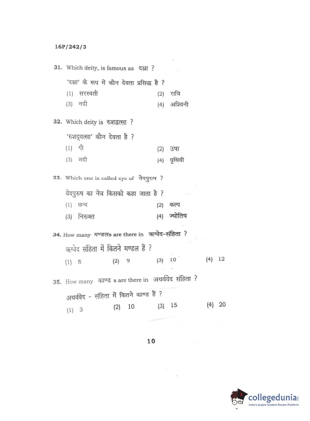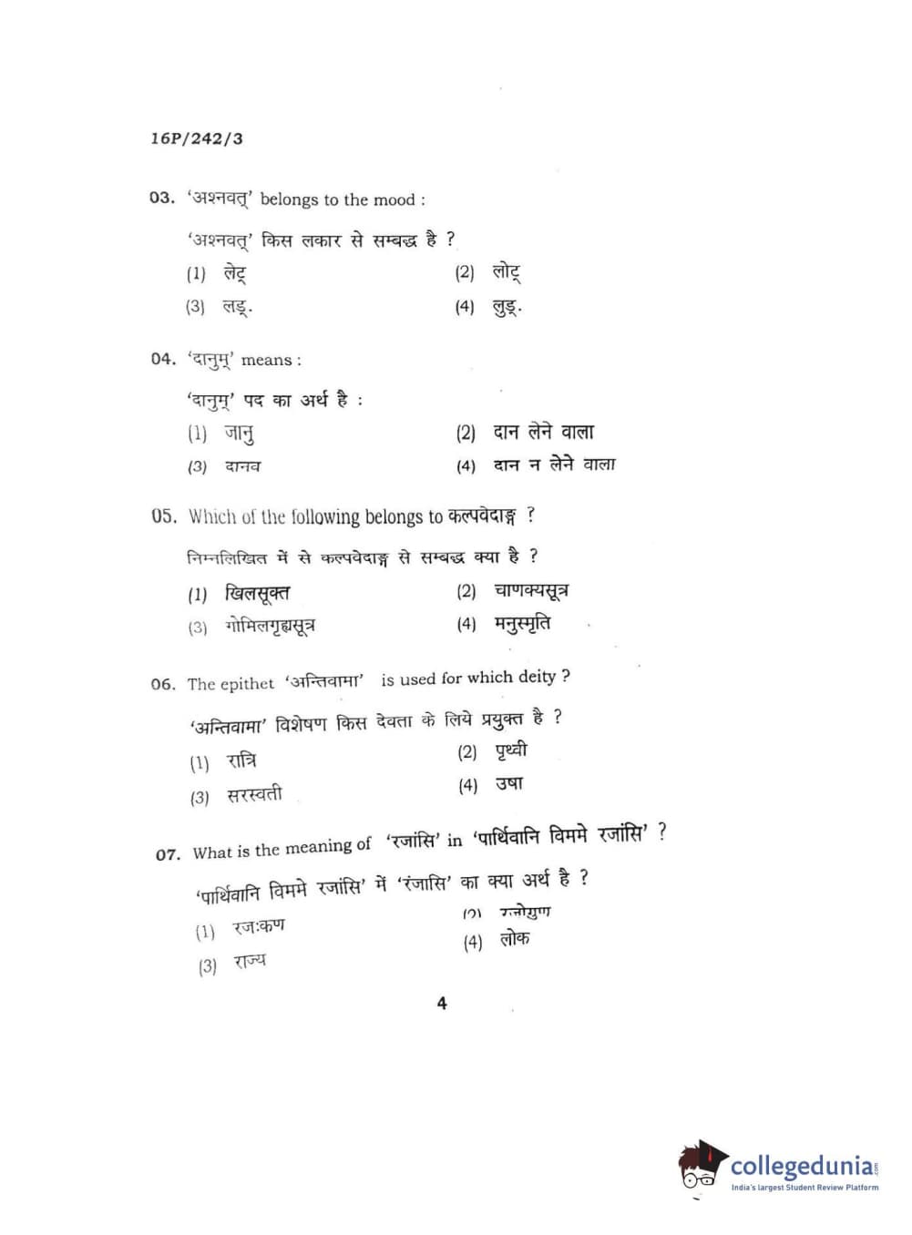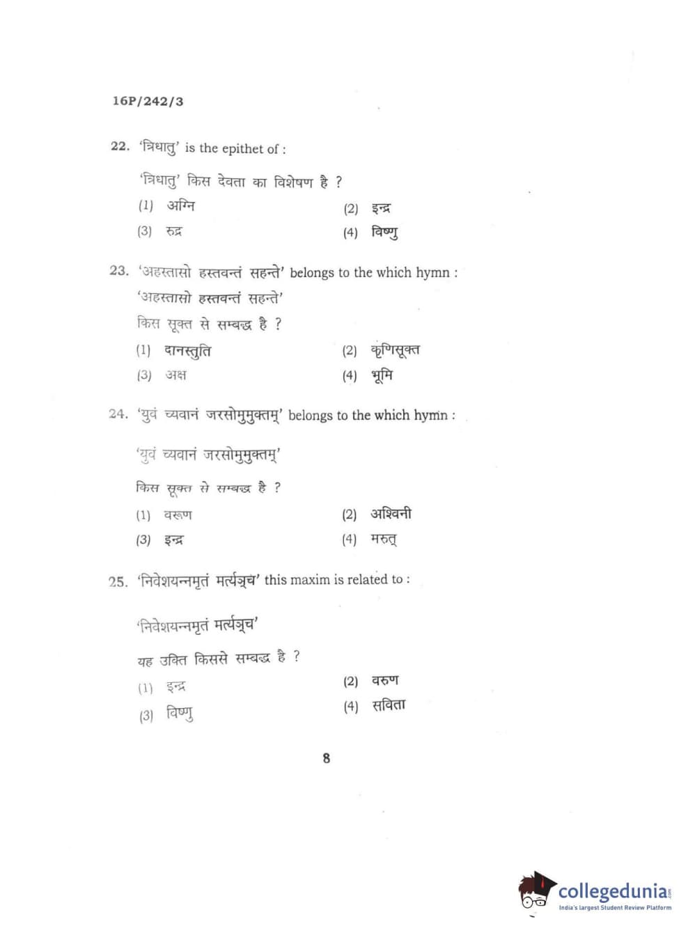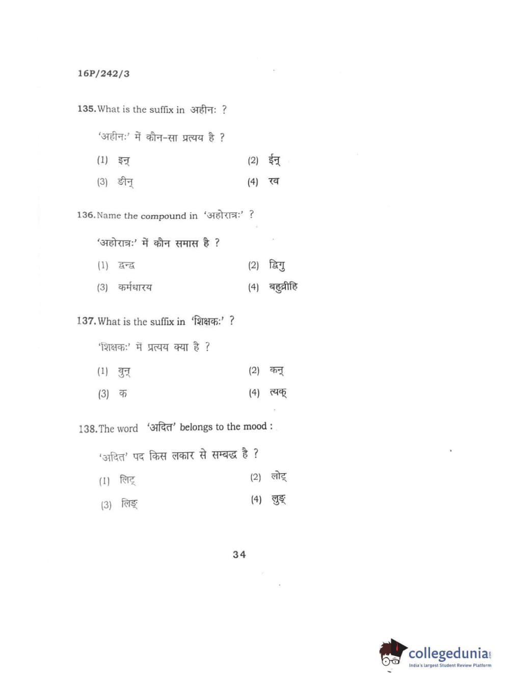BHU PET 2016 M.A. SANSKRIT Question Paper with Answer Key PDFs