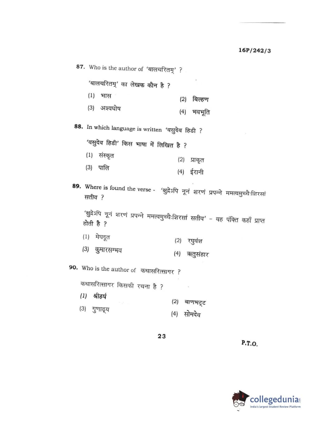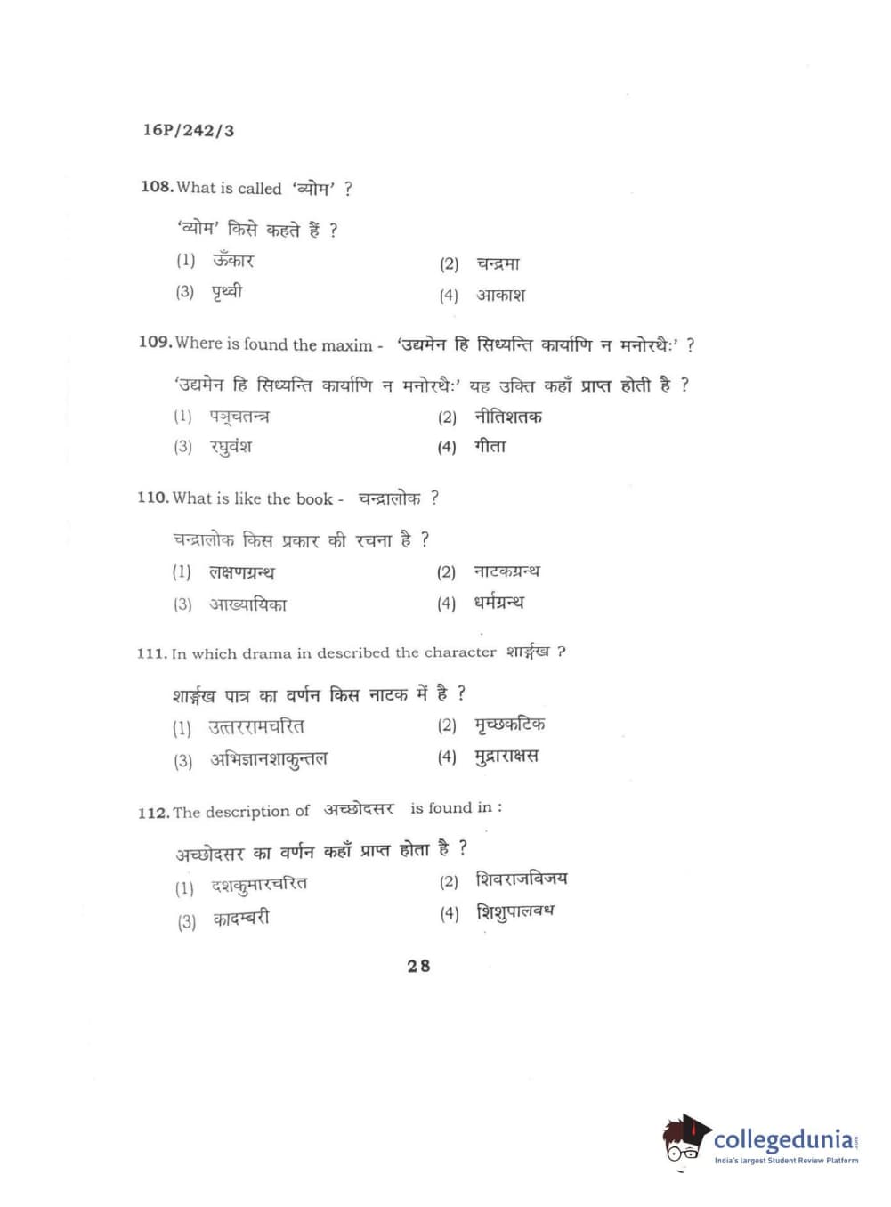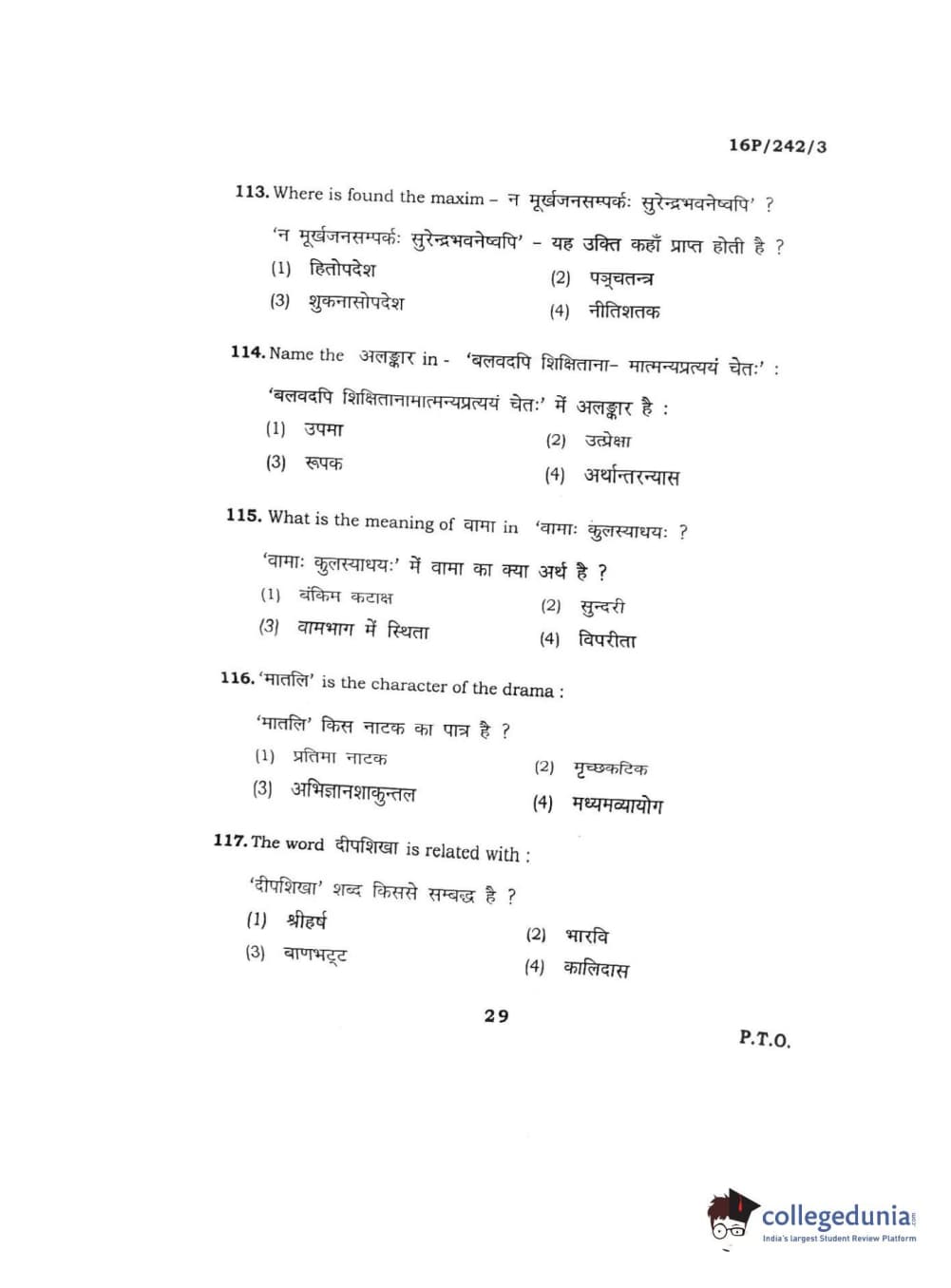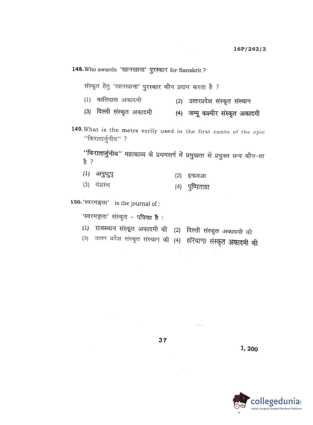 BHU PET 2016 M.A. SANSKRIT Question paper with answer key pdf is available for download. The exam was successfully organized by Banaras Hindu University (BHU). The question paper comprised a total of 150 questions.