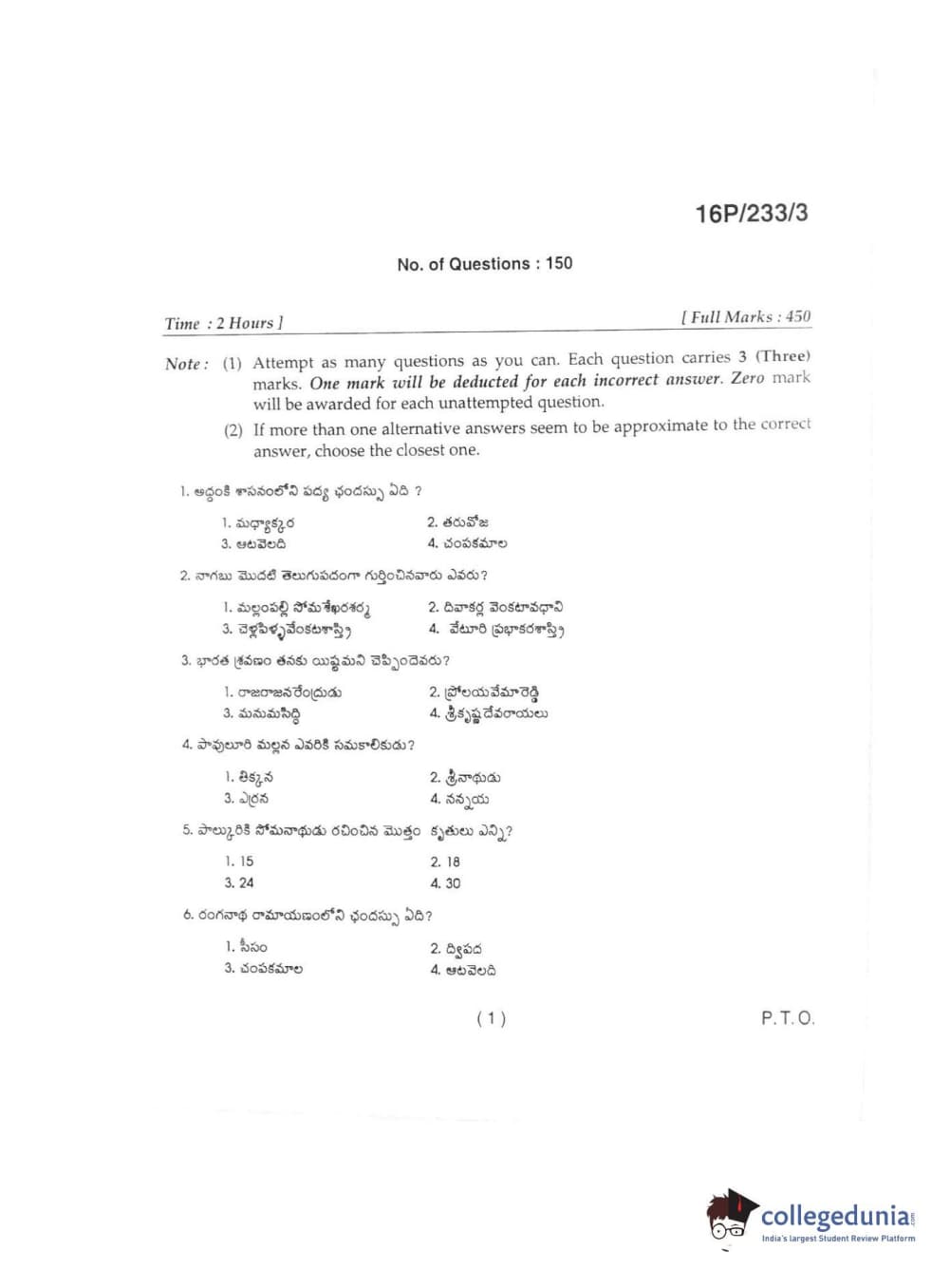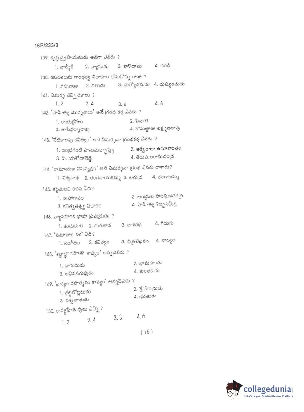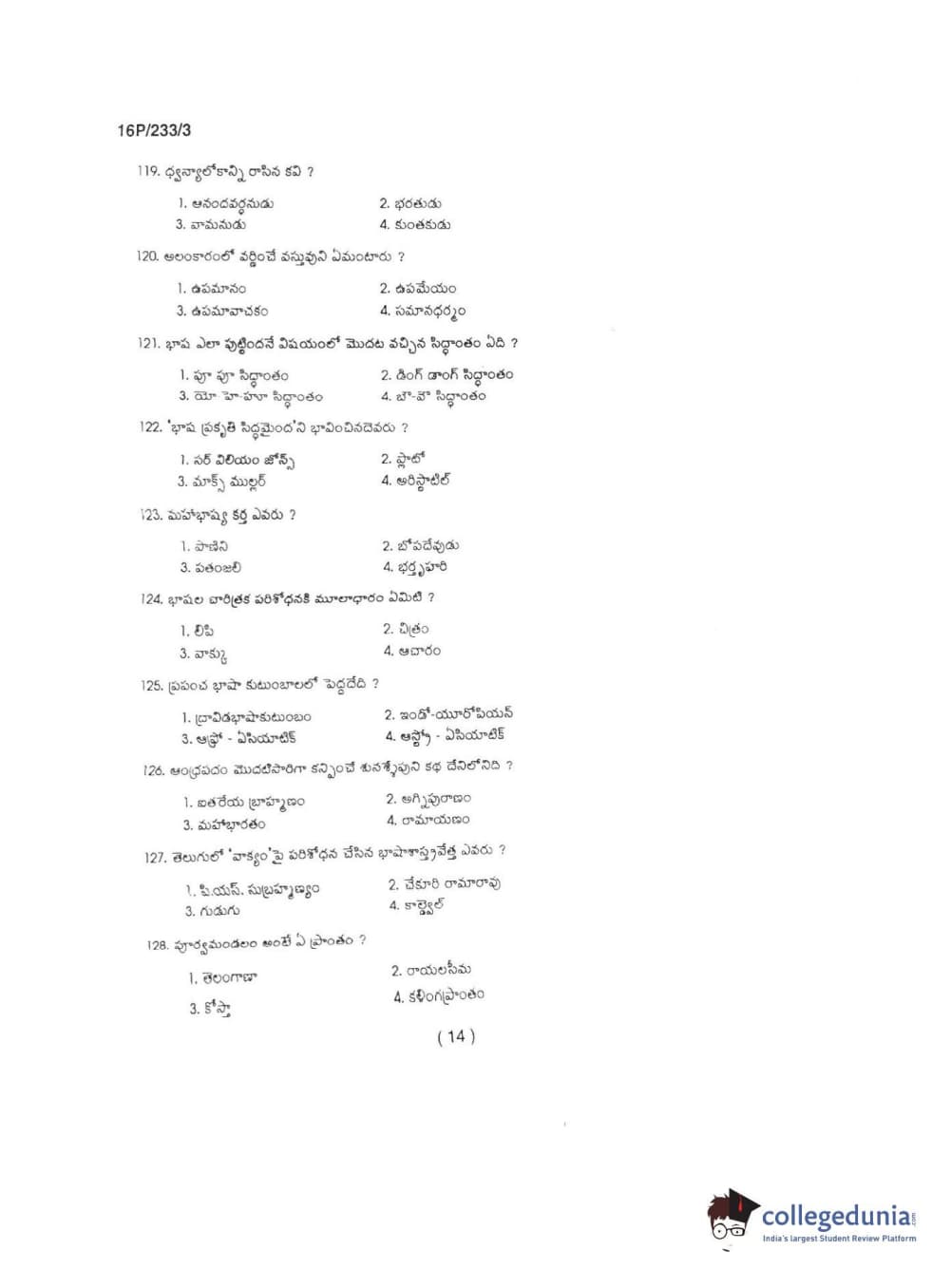 BHU PET 2016 M.A TELUGU Question paper with answer key pdf is available for download. The exam was successfully organized by Banaras Hindu University (BHU). The question paper comprised a total of 150 questions.