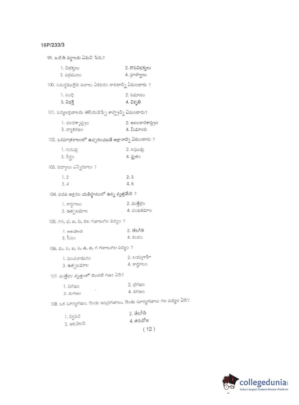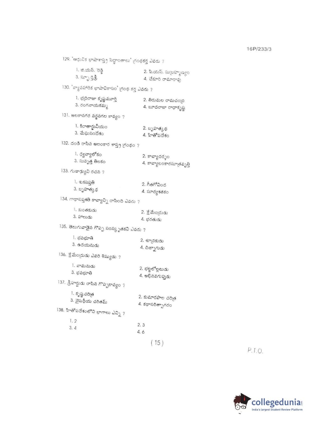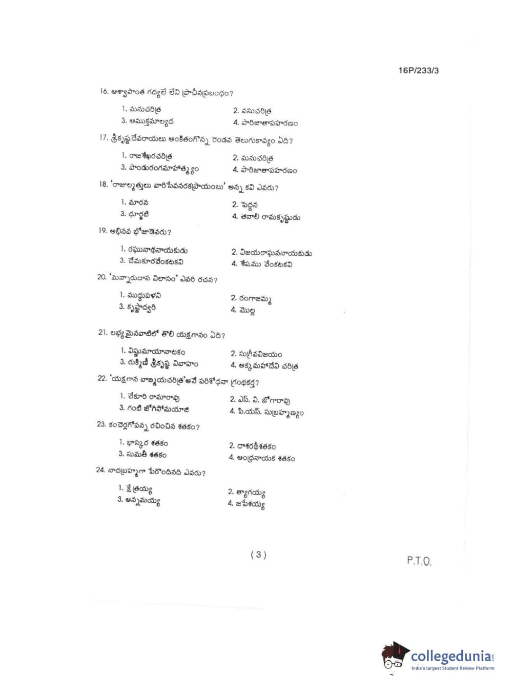 BHU PET 2016 M.A TELUGU Question paper with answer key pdf is available for download. The exam was successfully organized by Banaras Hindu University (BHU). The question paper comprised a total of 150 questions.
