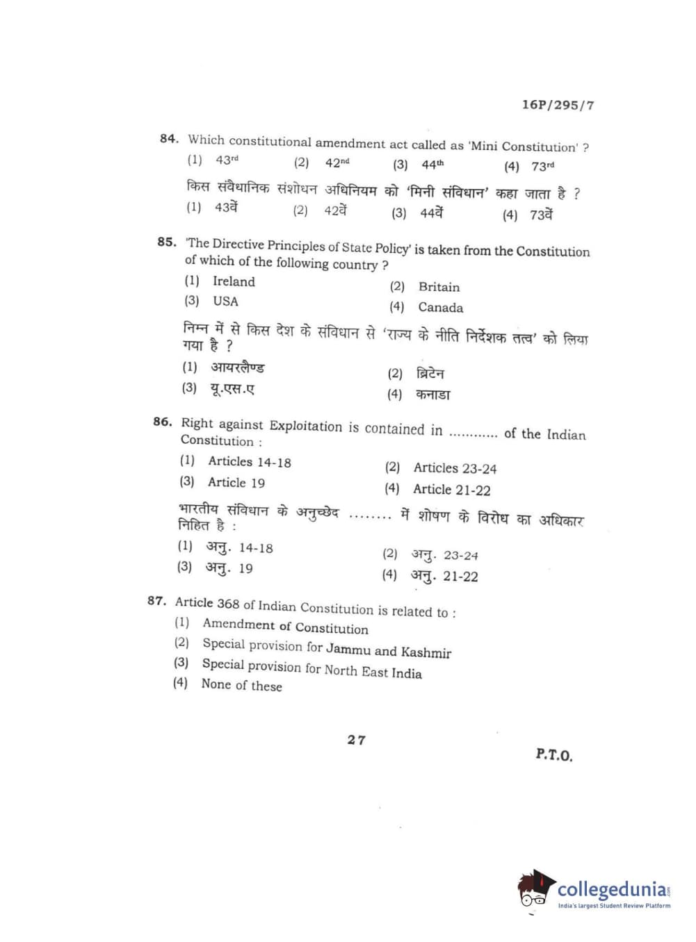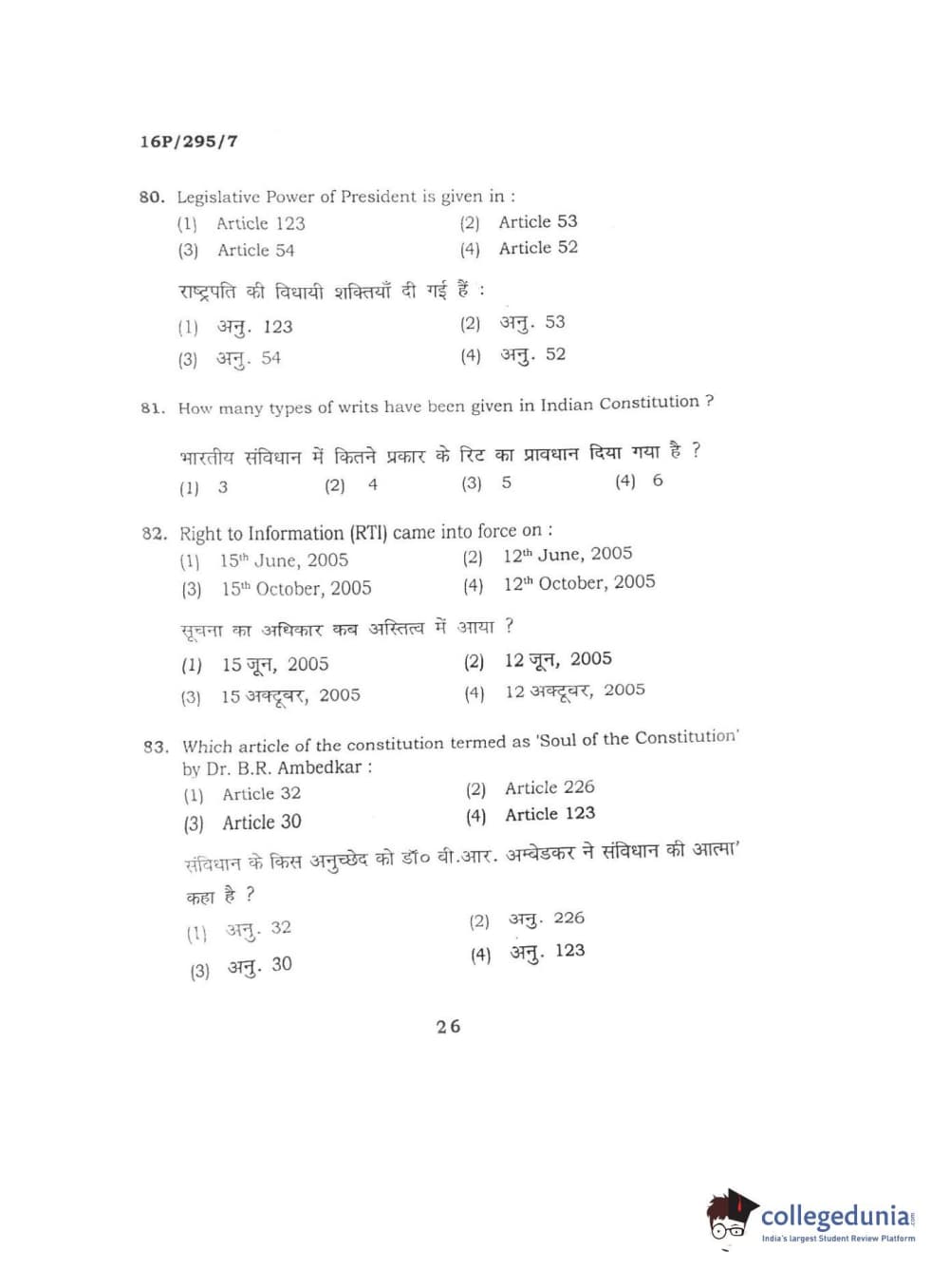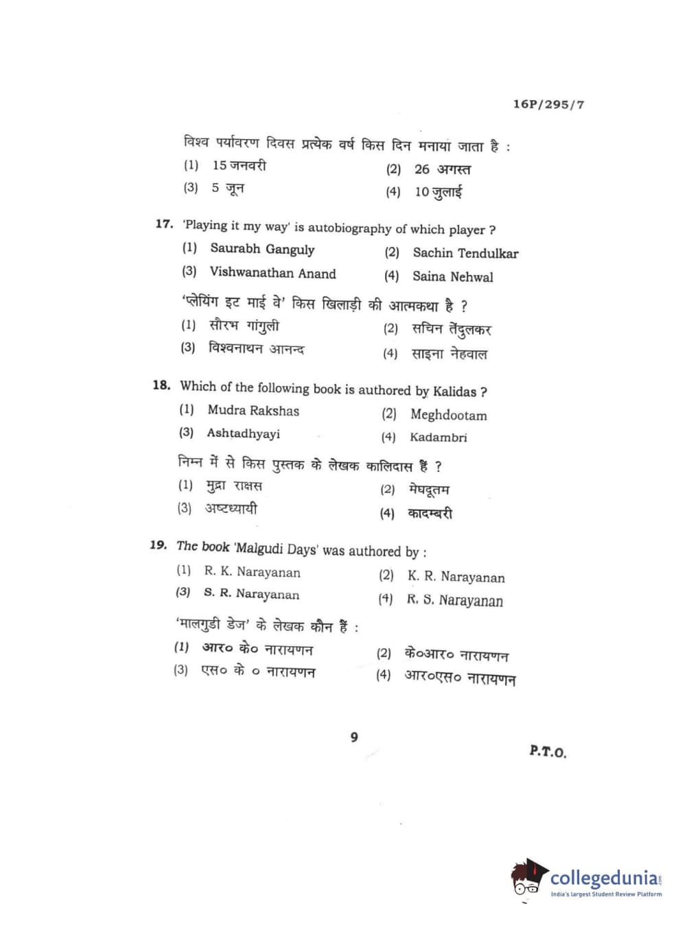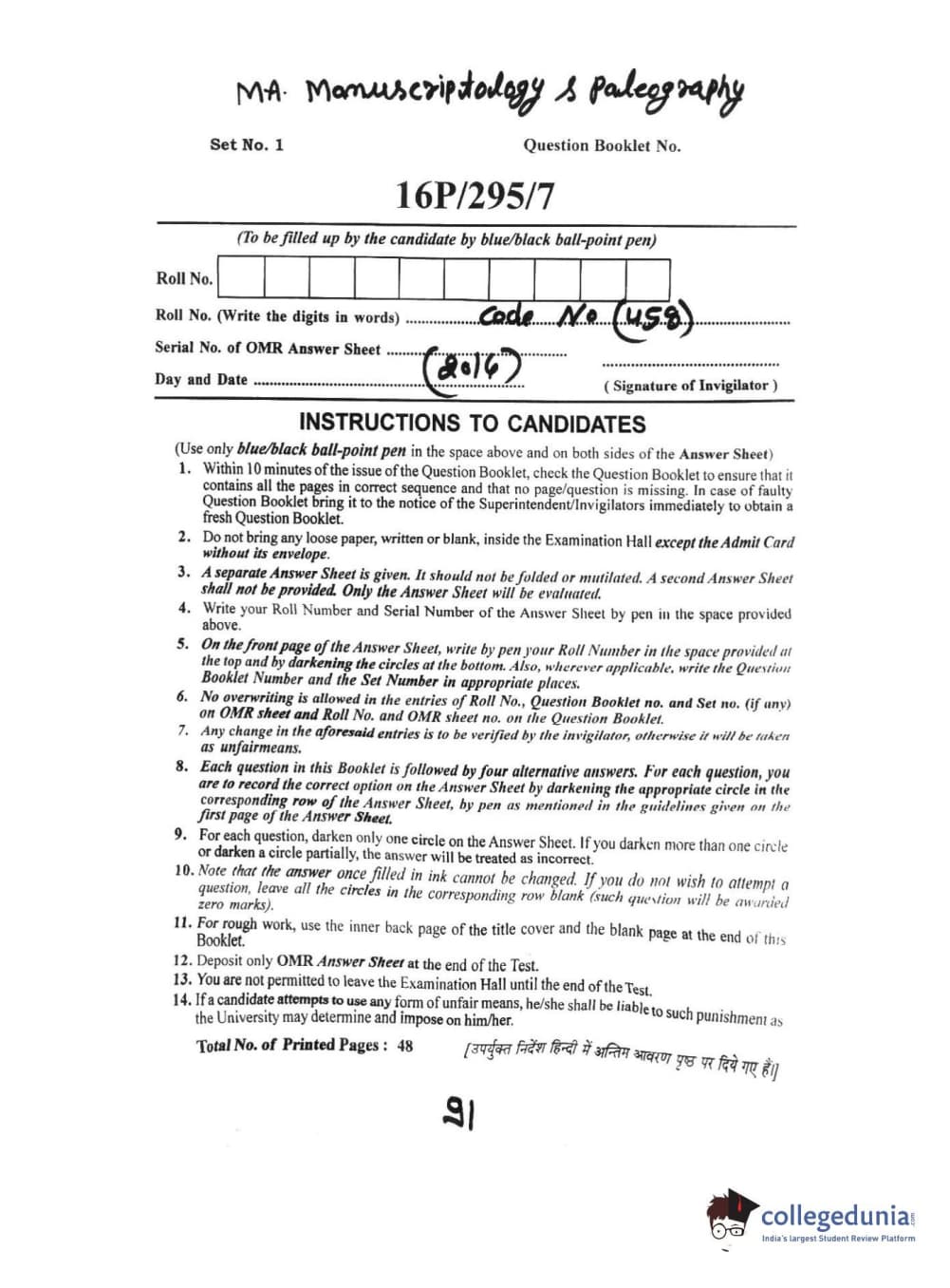 BHU PET 2016 MANUSCRIPTO & PALEOGRAPHY Question Paper with Answer Key PDF