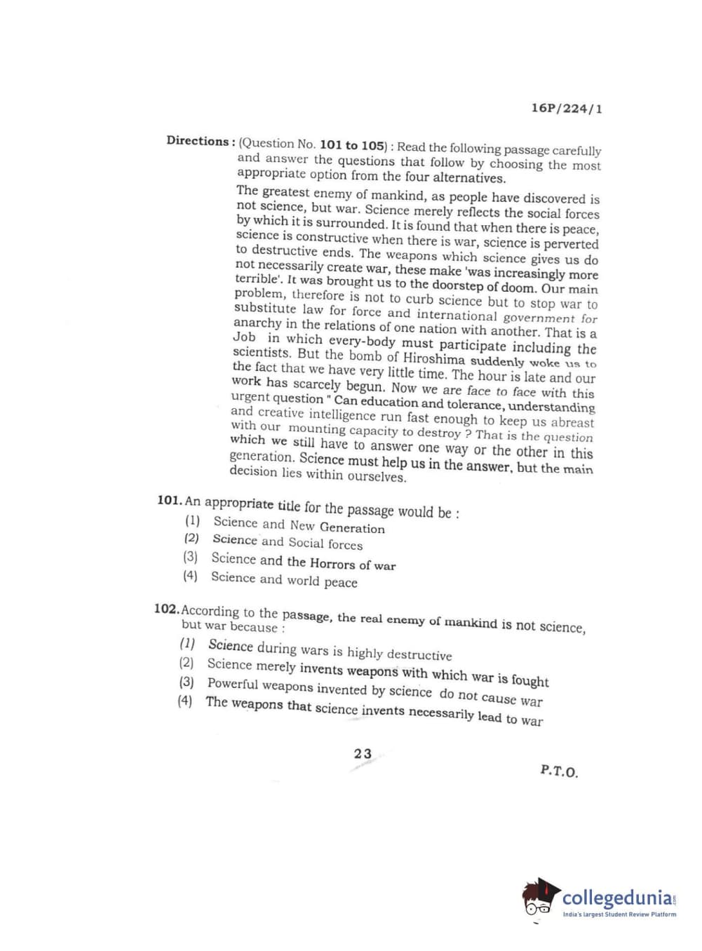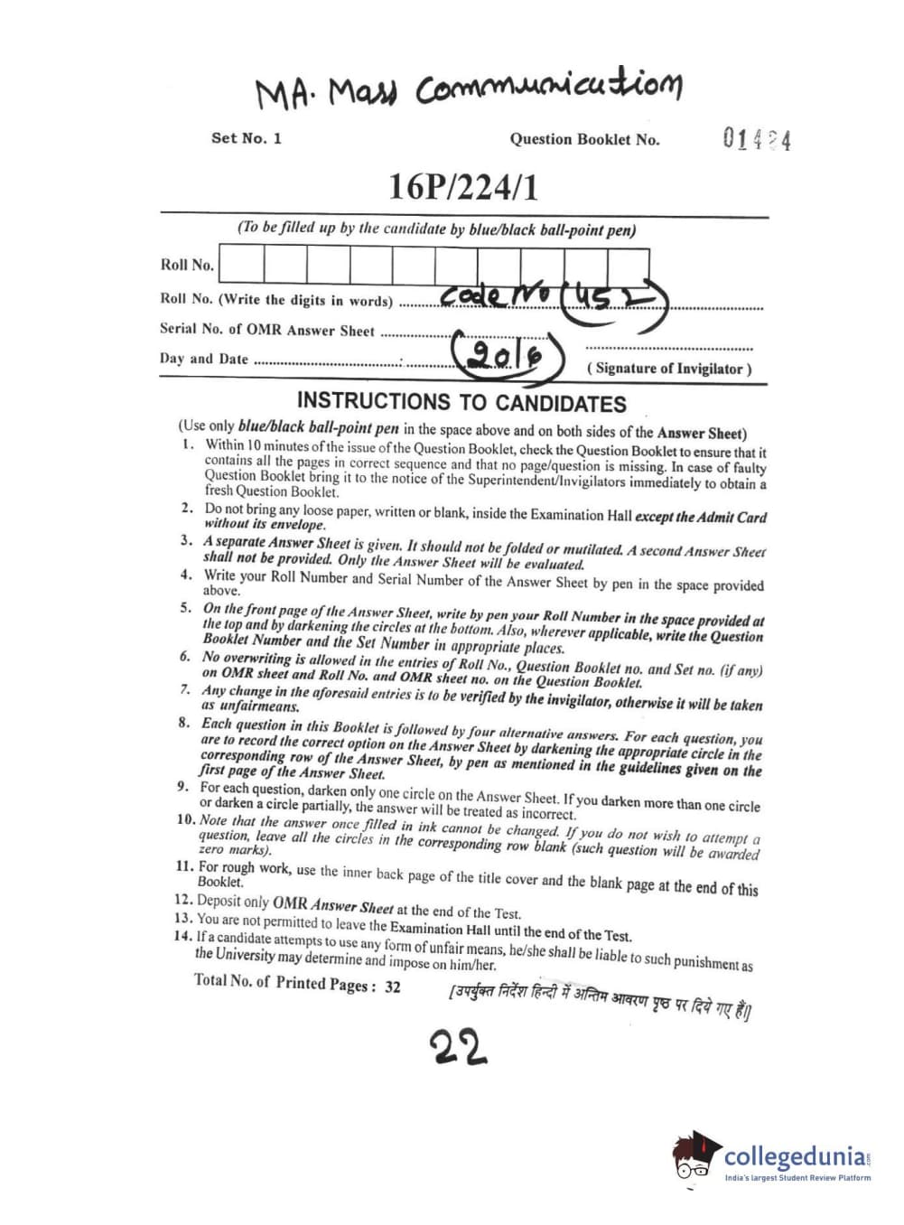 BHU PET 2016 MASS COMMUNNICATION Question paper with answer key pdf is available for download. The exam was successfully organized by Banaras Hindu University (BHU). The question paper comprised a total of 150 questions.