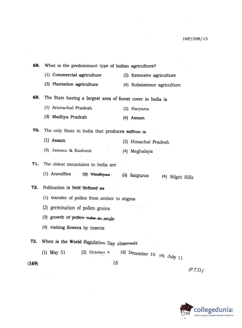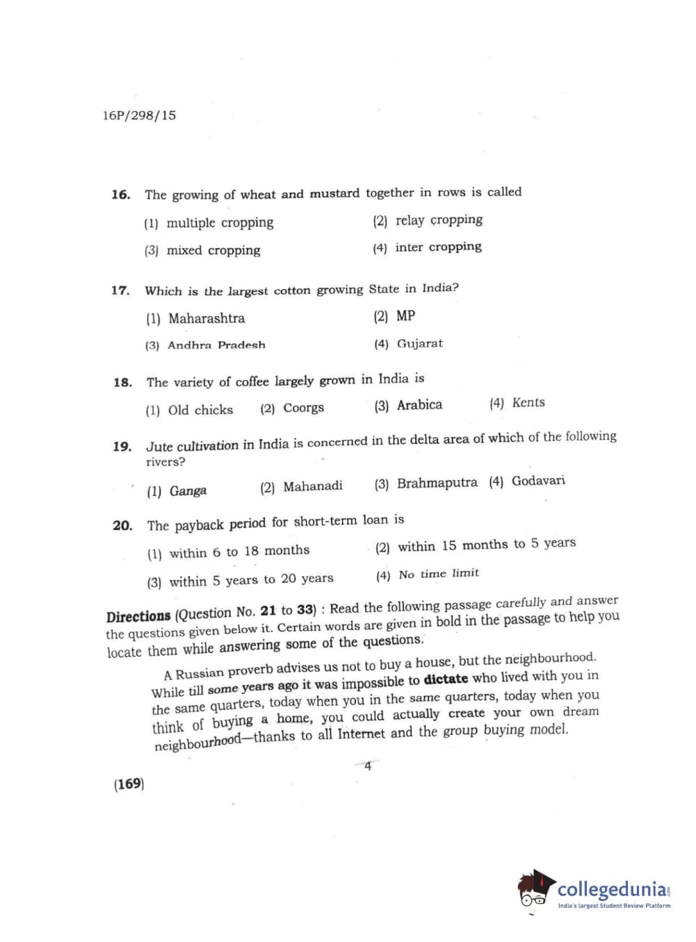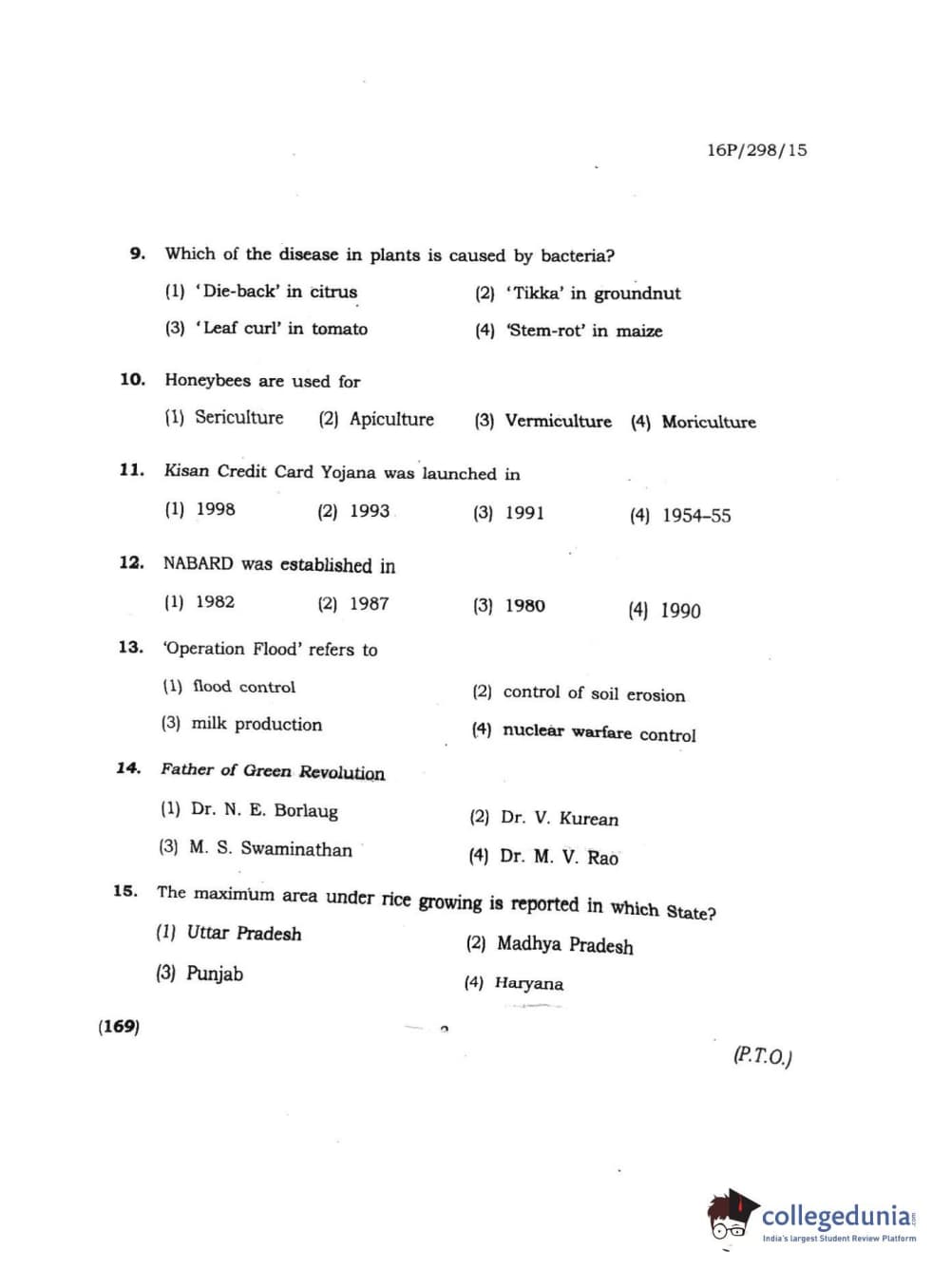 BHU PET 2016 MASTER OF AGRI BUSINESS MANAGEMENT Question Paper with Answer Key PDF