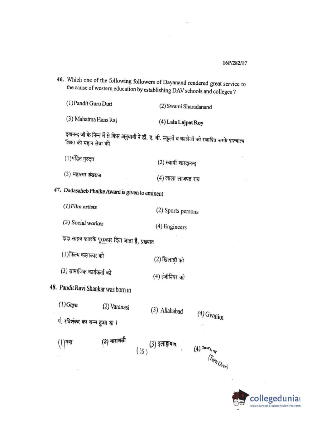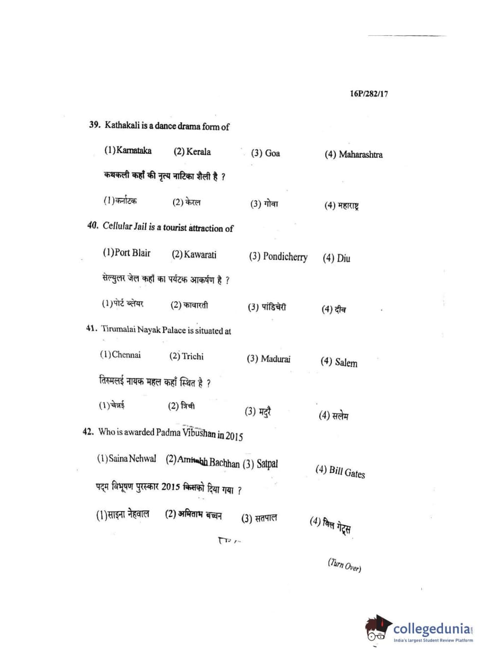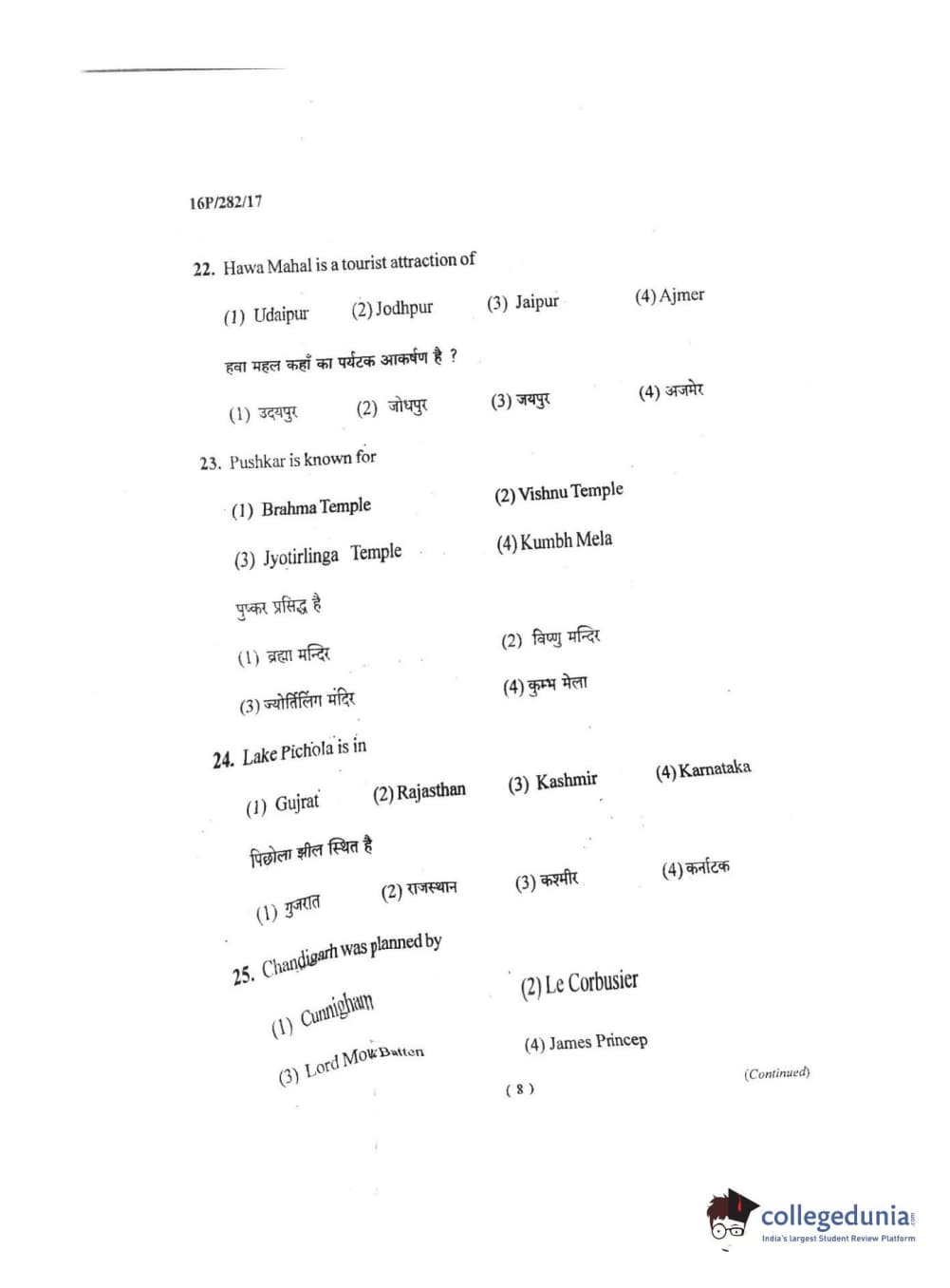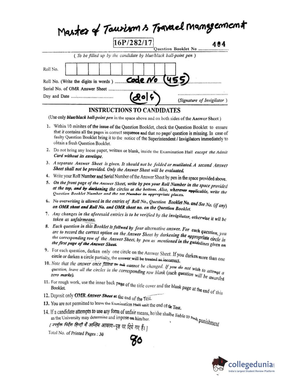 BHU PET 2016 MASTER OF TOURISM & TRAVEL MANAGEMENT Question Paper with Answer Key PDF