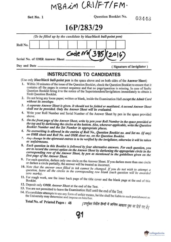 BHU PET 2016 MBA IN (R.I F.T F.M) Question paper with answer key pdf is available for download. The exam was successfully organized by Banaras Hindu University (BHU). The question paper comprised a total of 150 questions.
