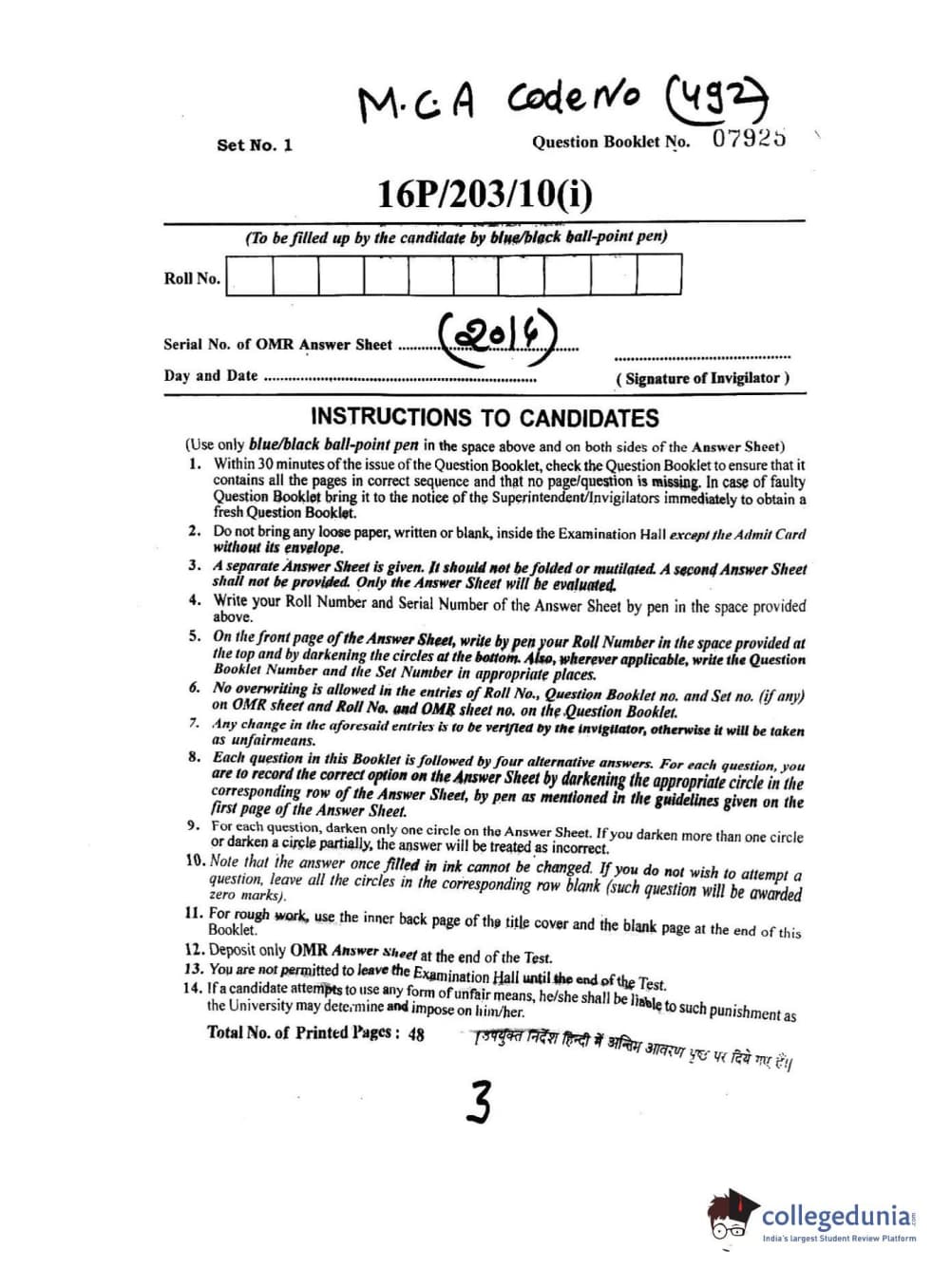 BHU PET 2016 M.C.A Question paper with answer key pdf is available for download. The exam was successfully organized by Banaras Hindu University (BHU). The question paper comprised a total of 150 questions.