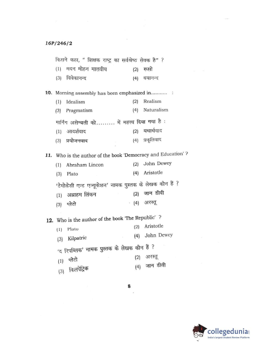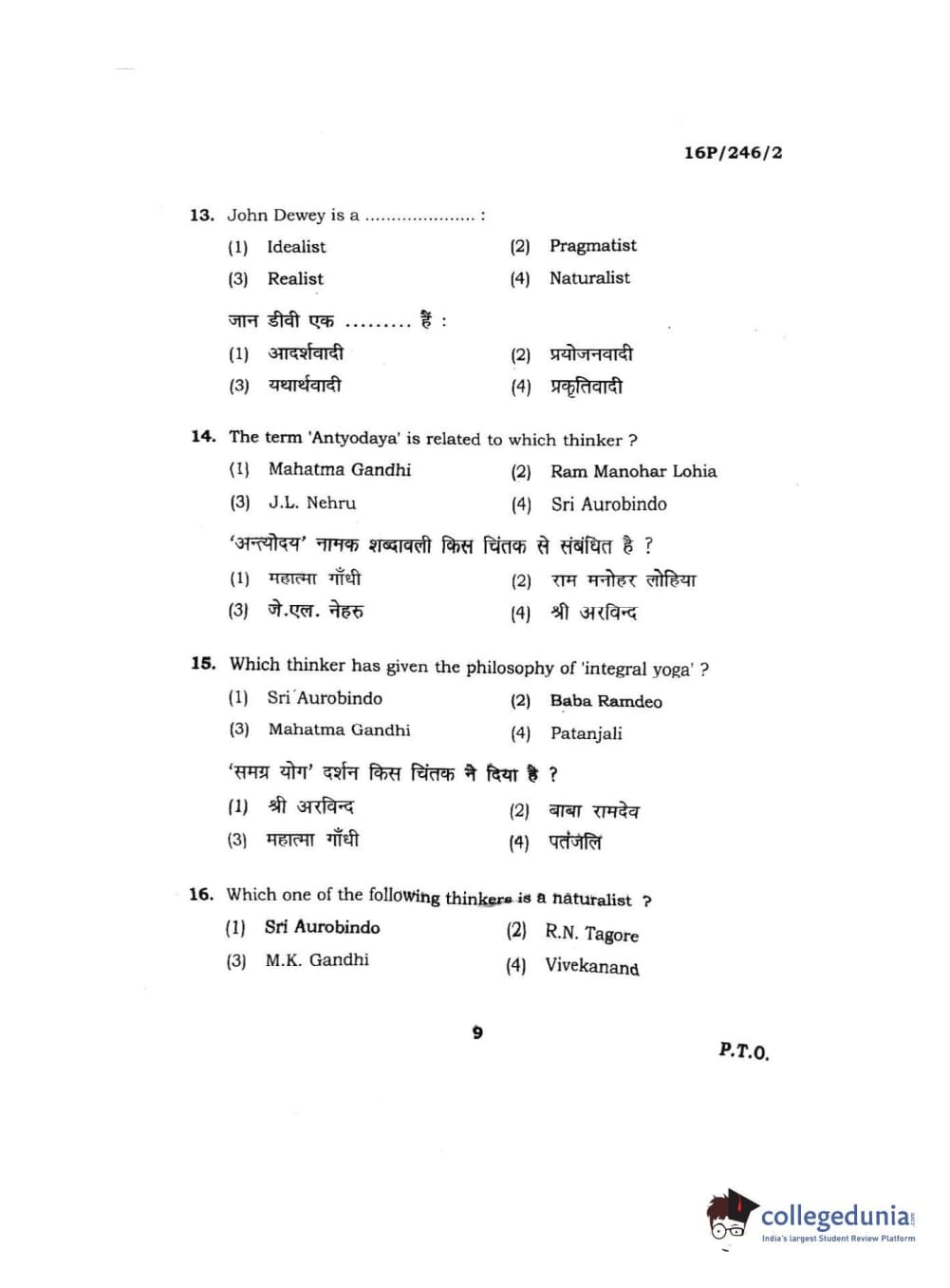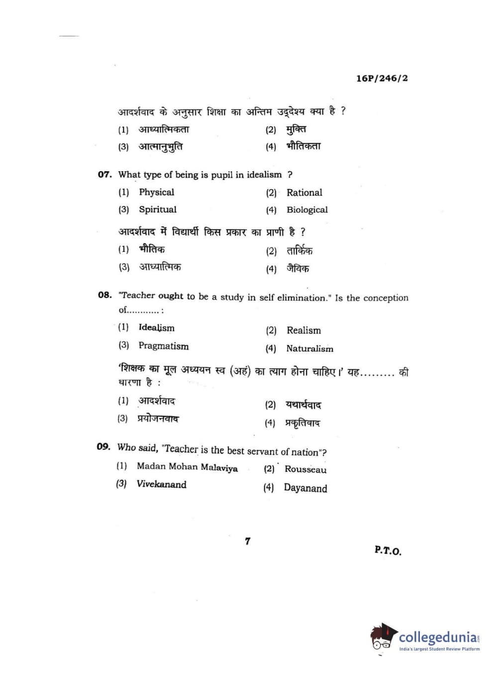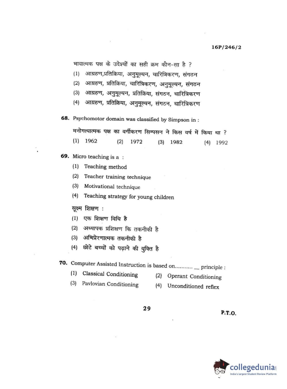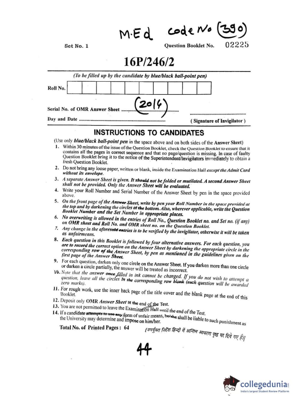 BHU PET 2016 M.ED Question Paper with Answer Key PDFs