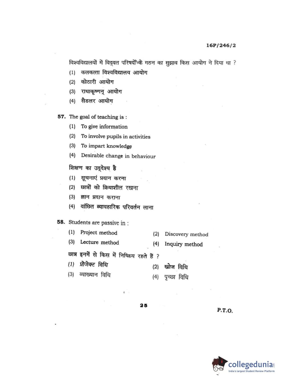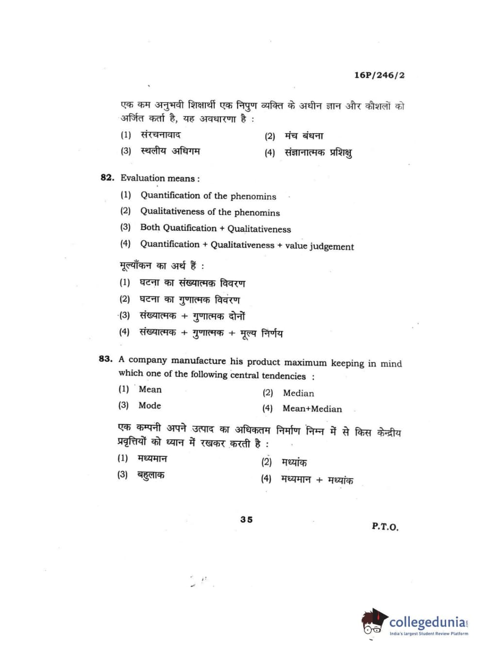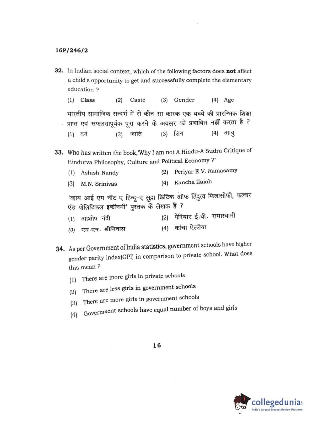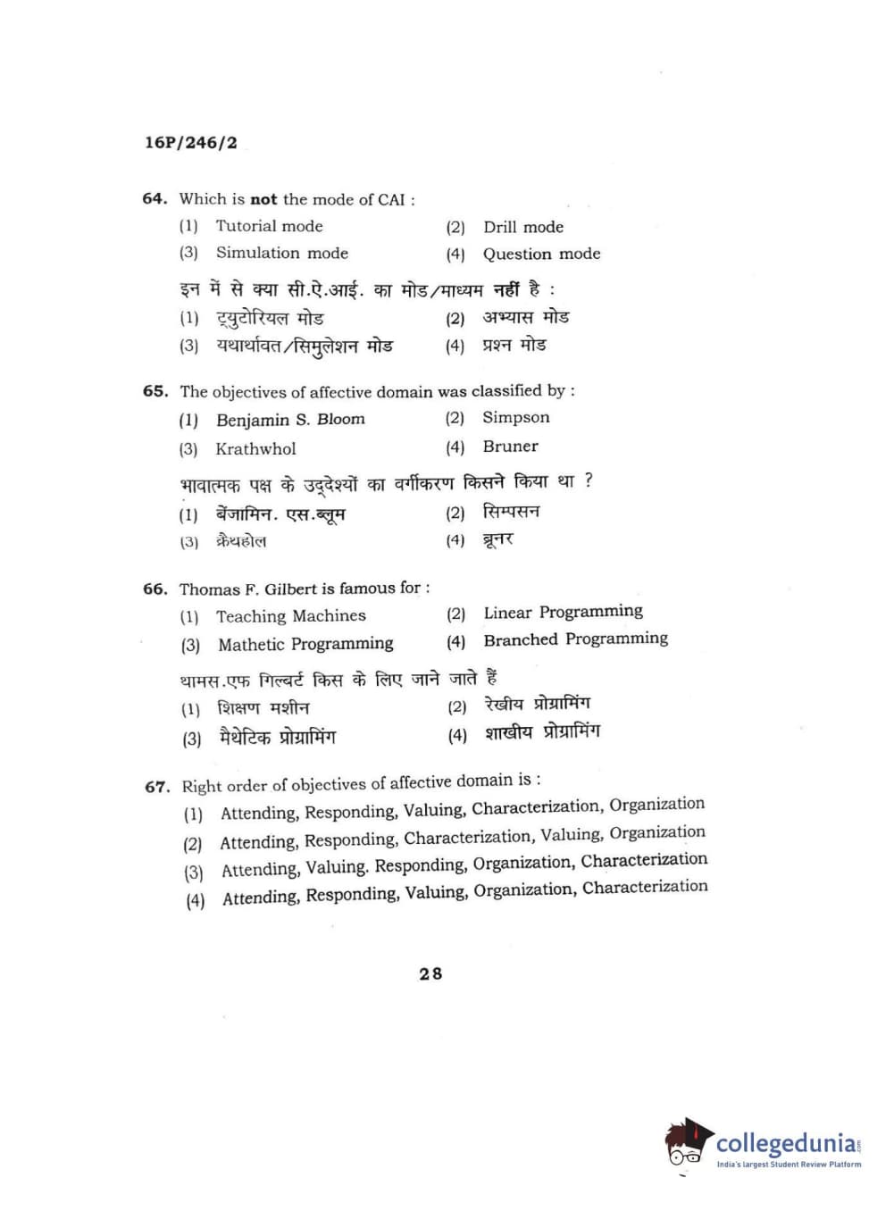 BHU PET 2016 M.ED Question Paper with Answer Key PDFs