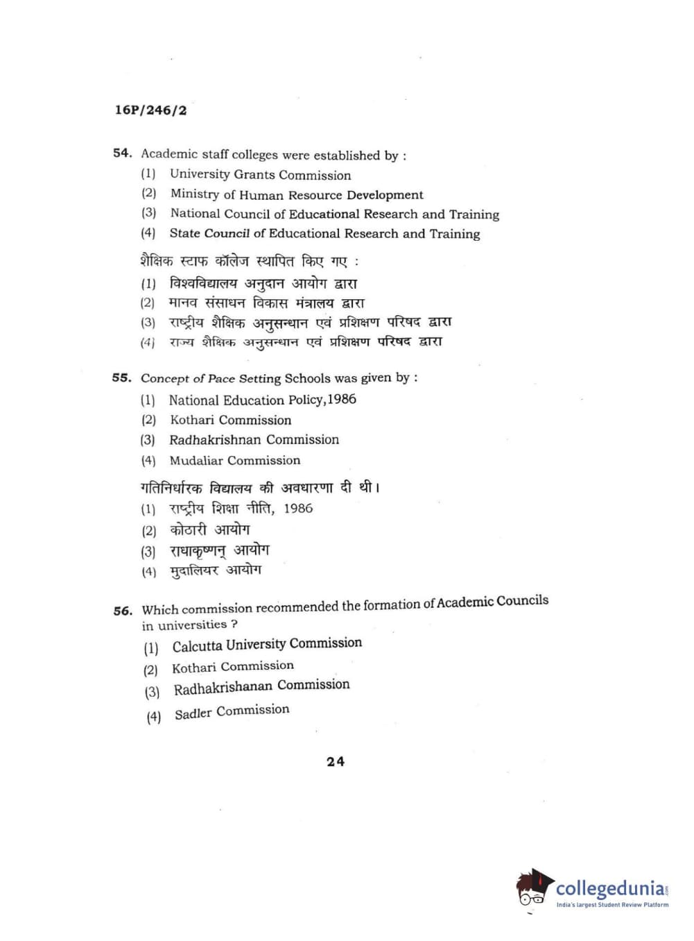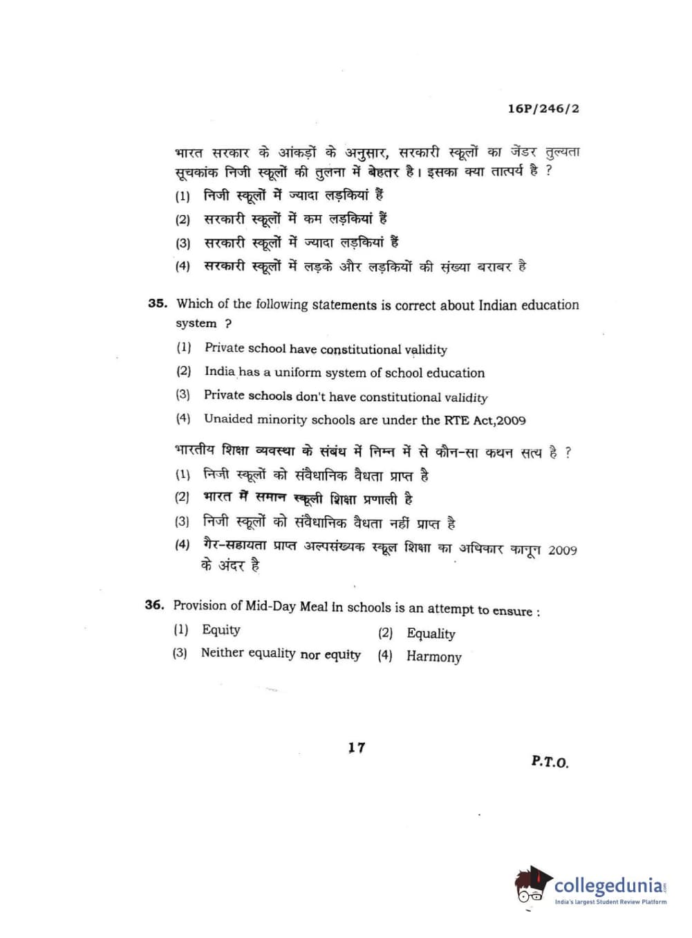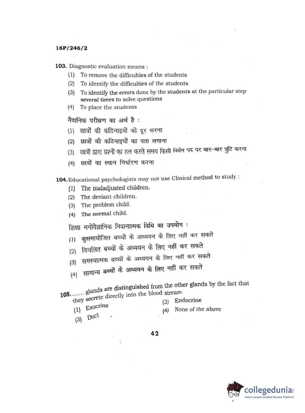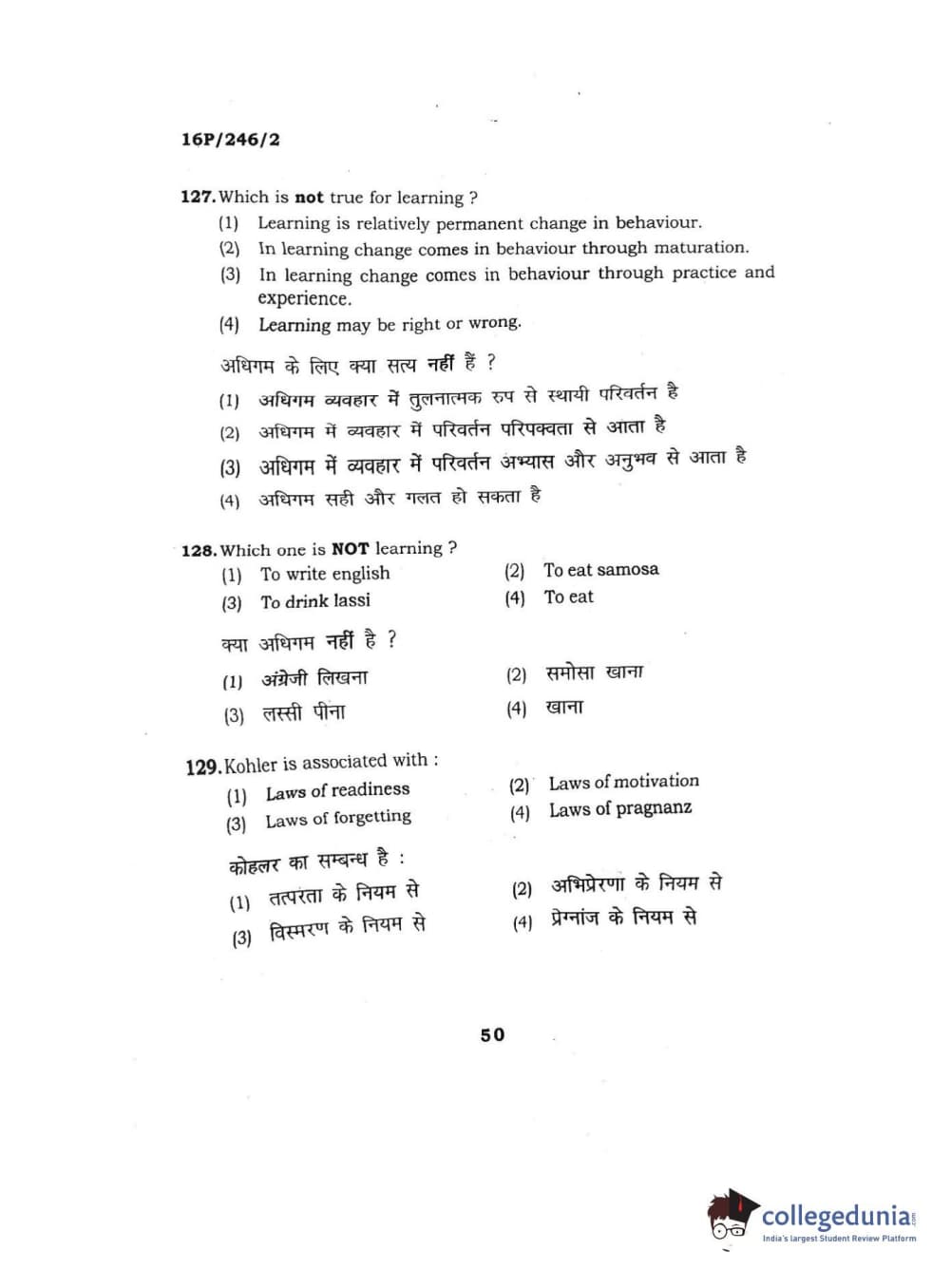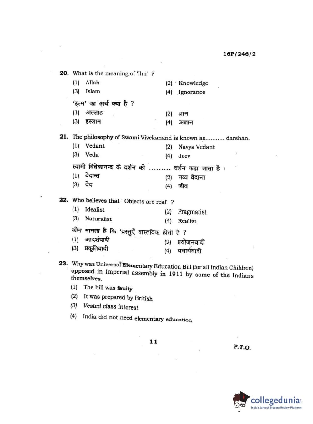 BHU PET 2016 M.ED Question Paper with Answer Key PDFs