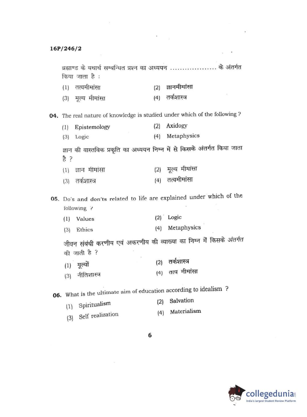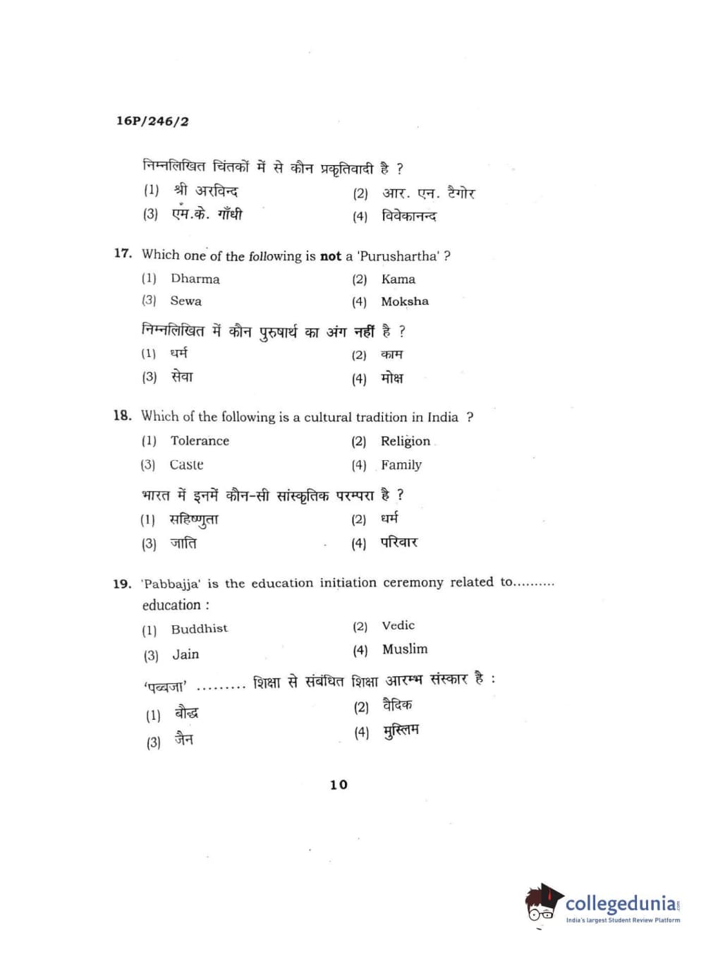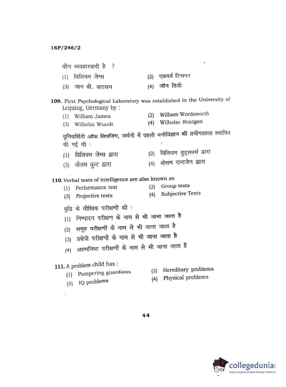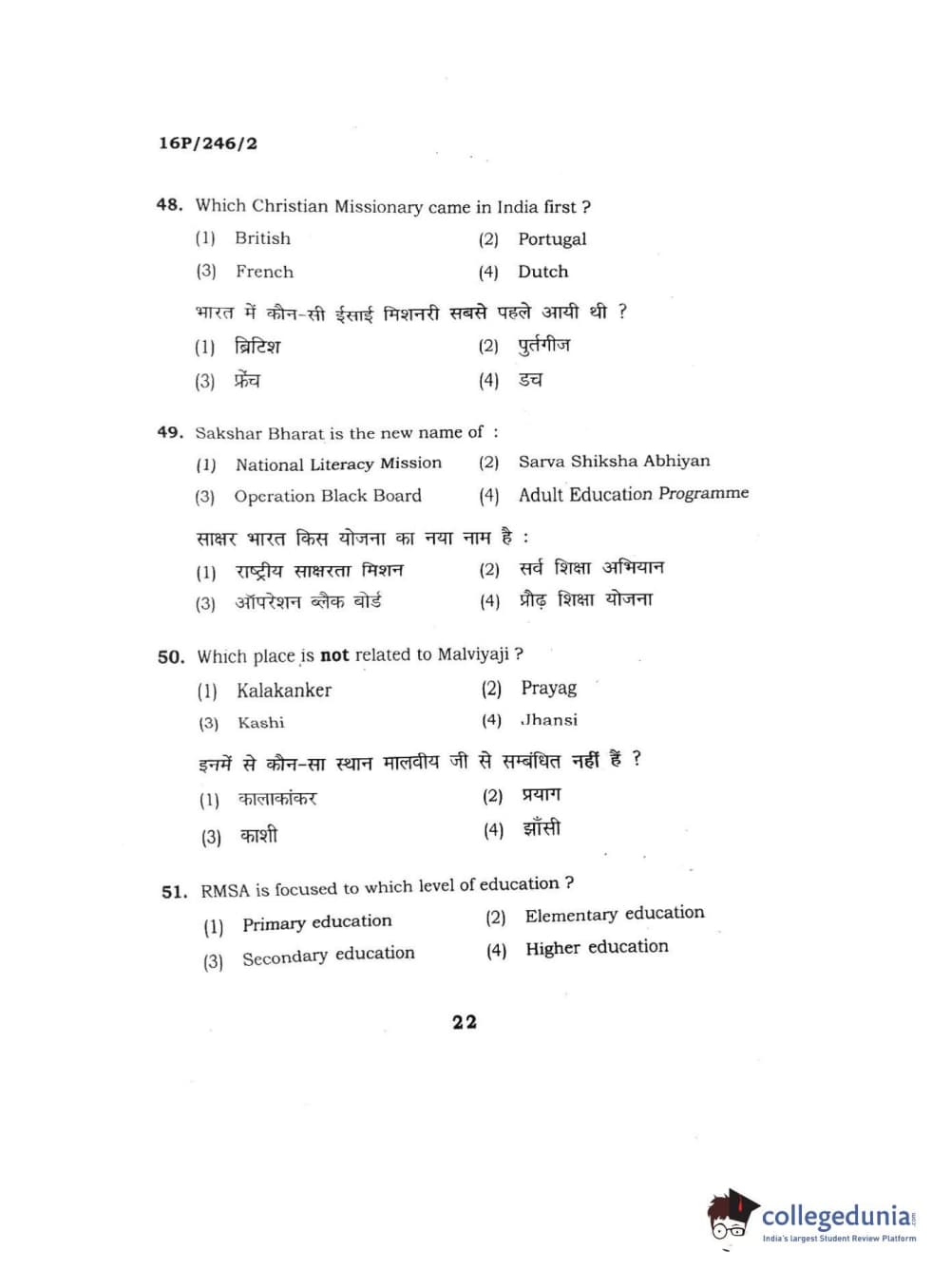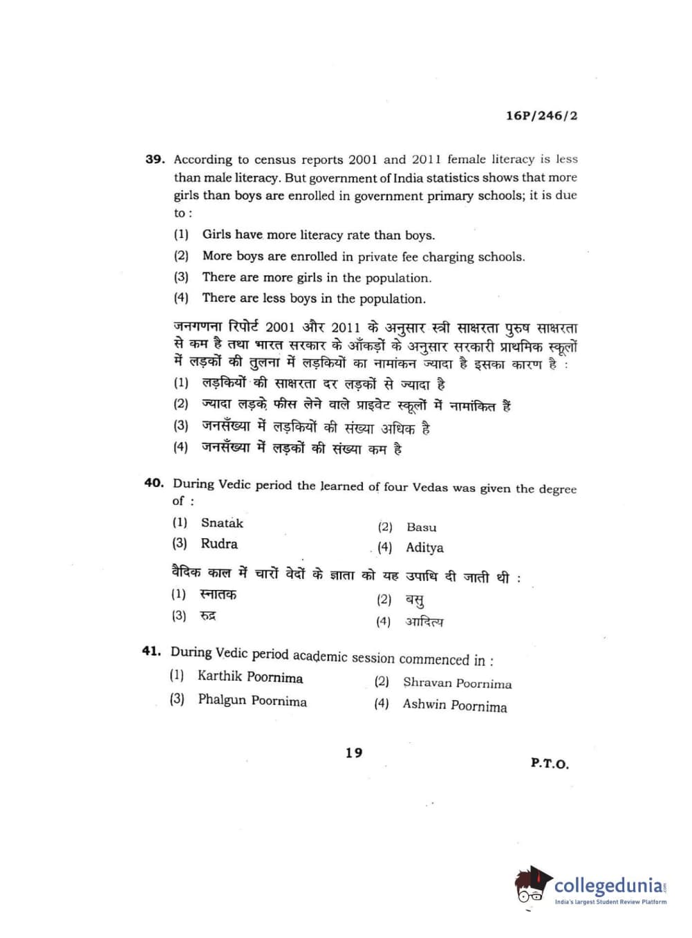 BHU PET 2016 M.ED Question Paper with Answer Key PDFs