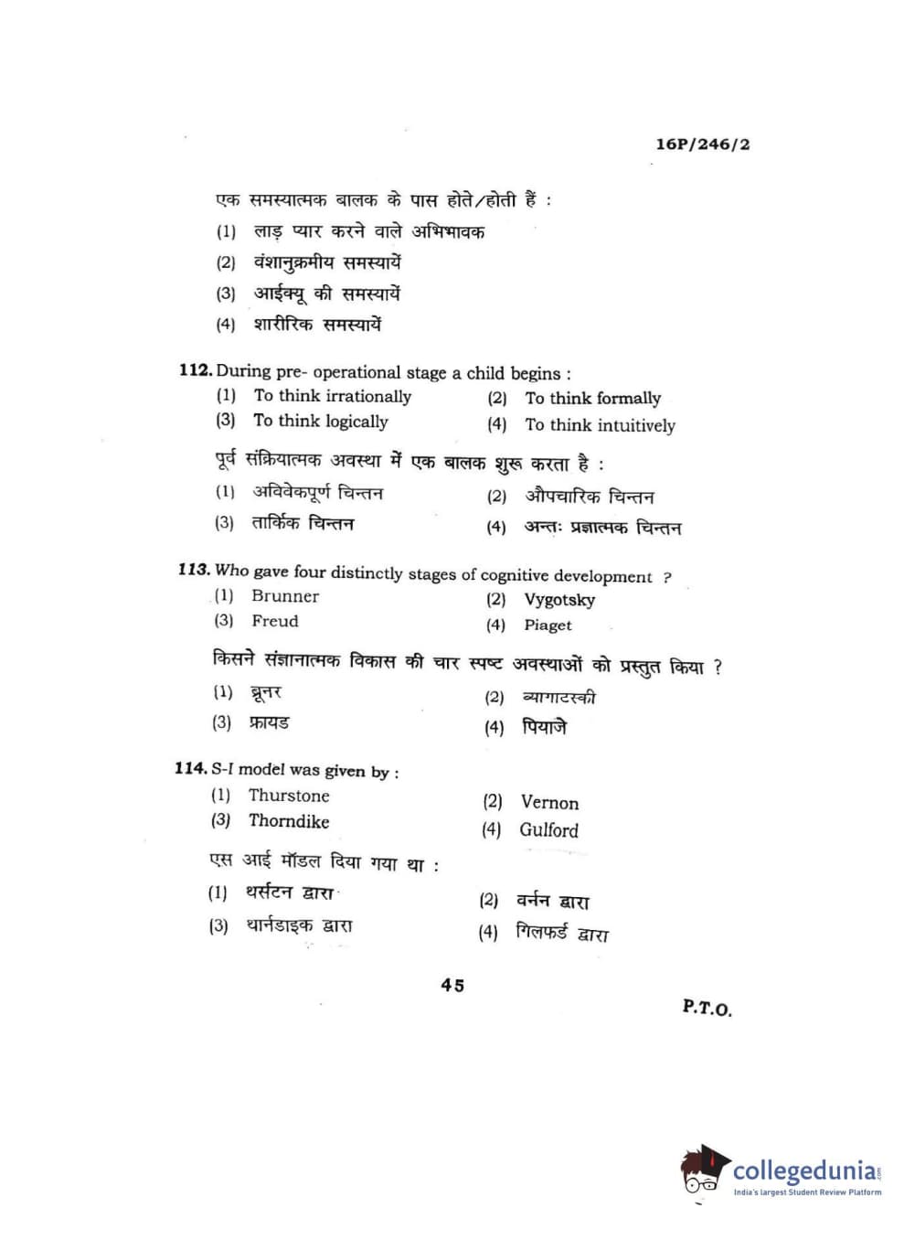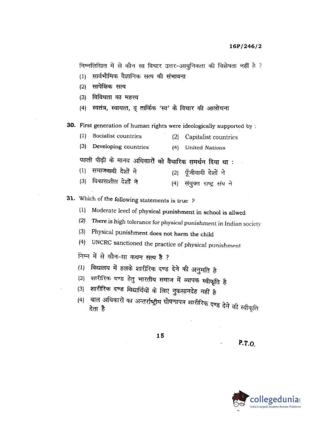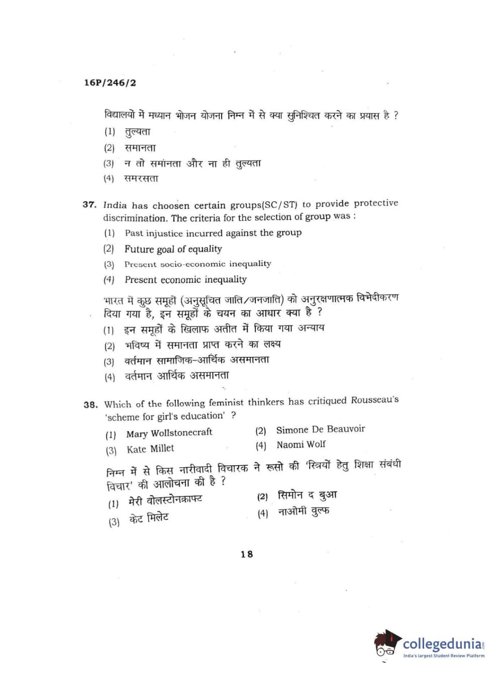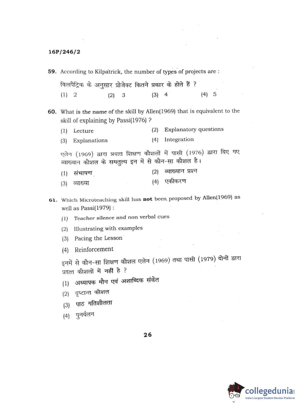BHU PET 2016 M.ED Question Paper with Answer Key PDFs