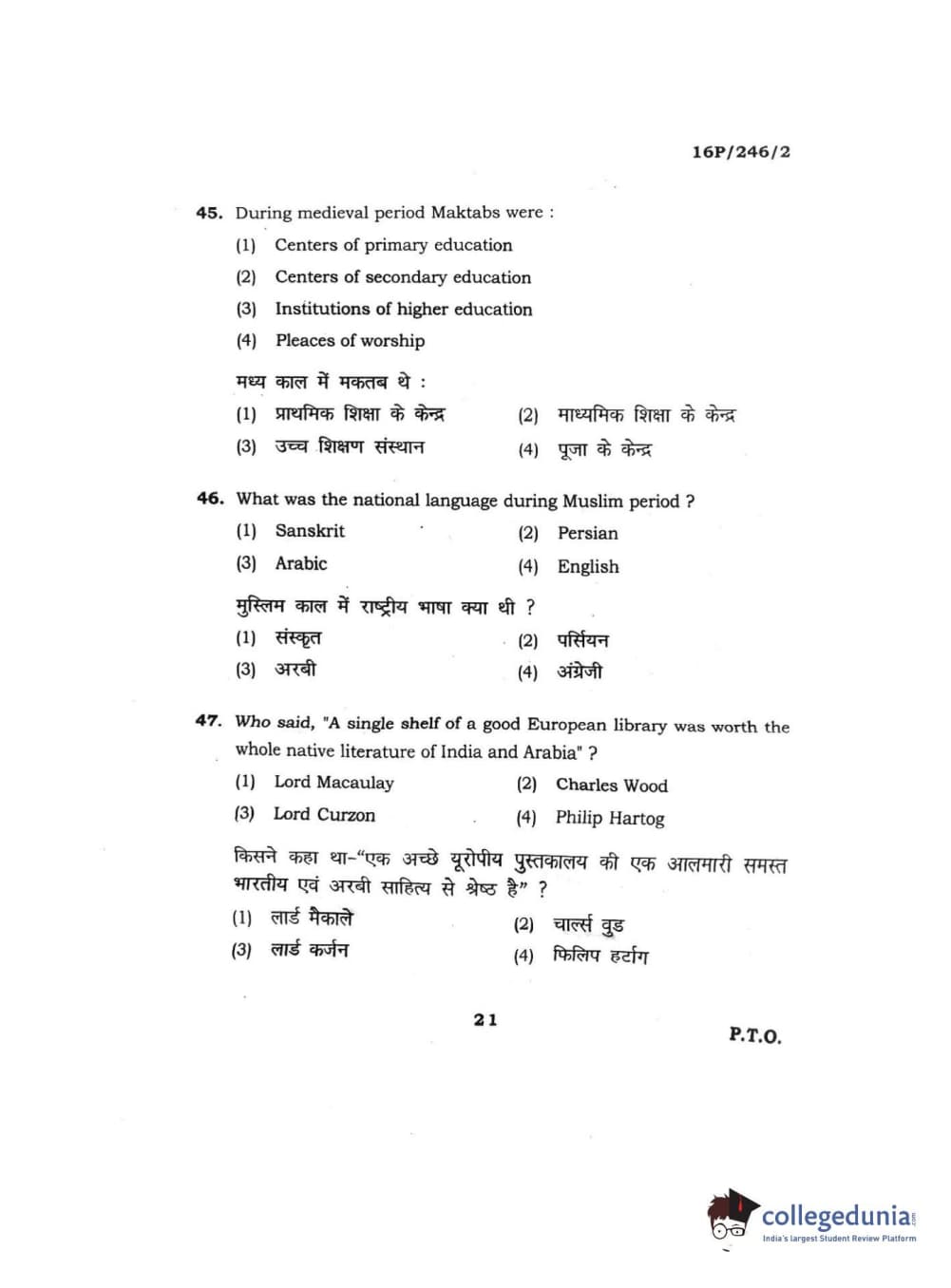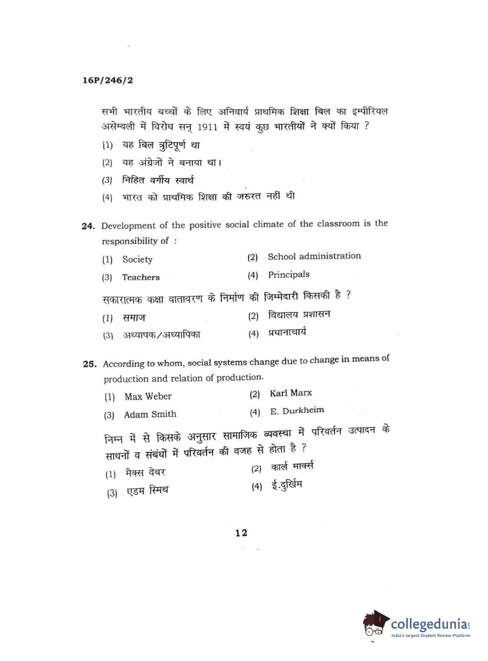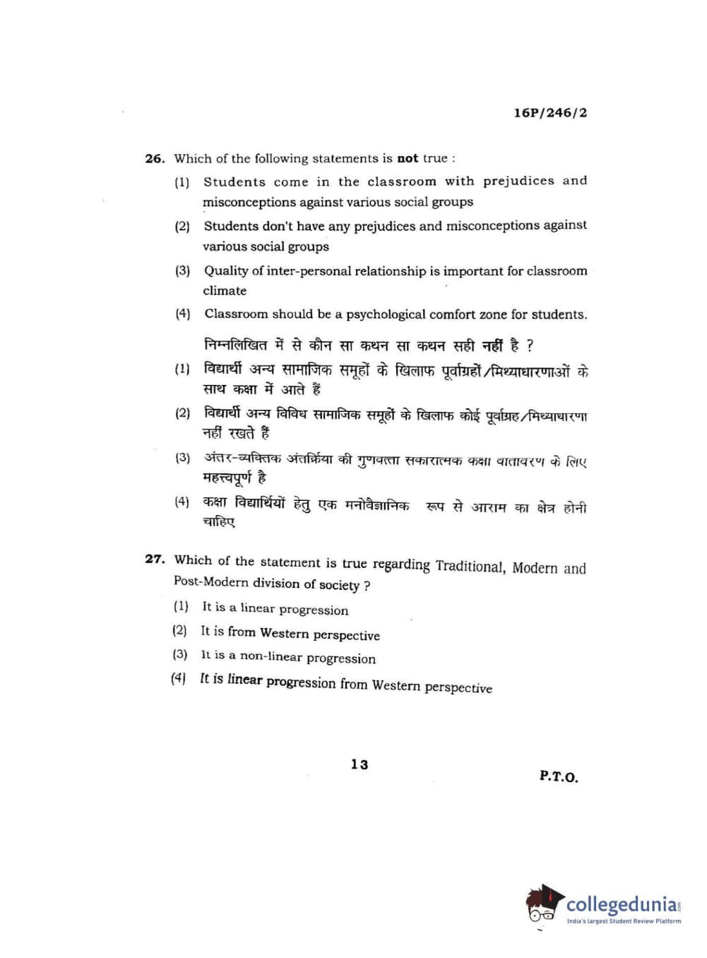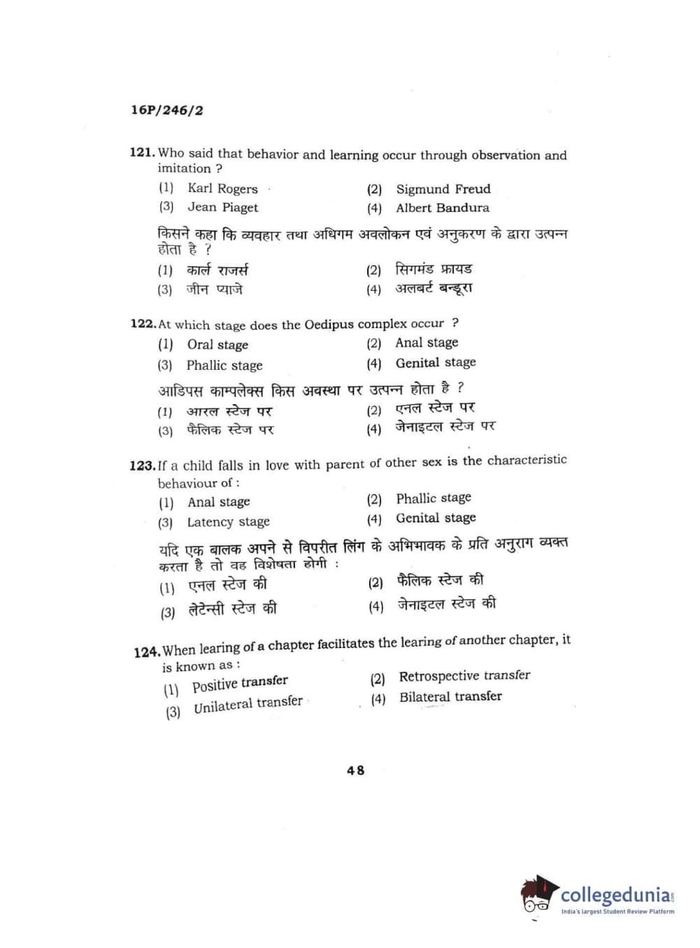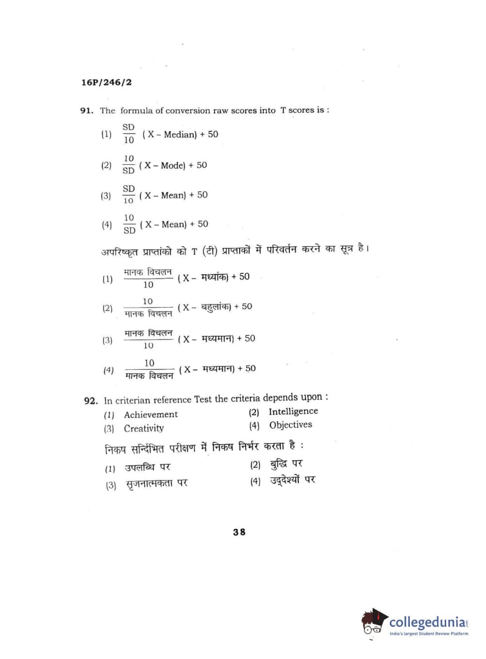 BHU PET 2016 M.ED Question Paper with Answer Key PDFs