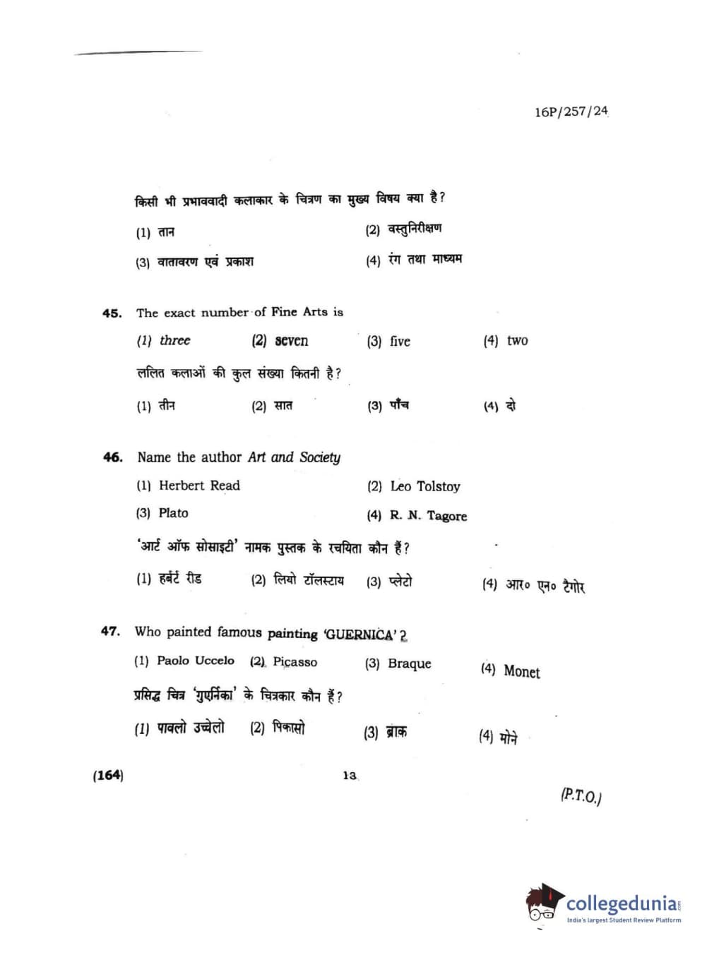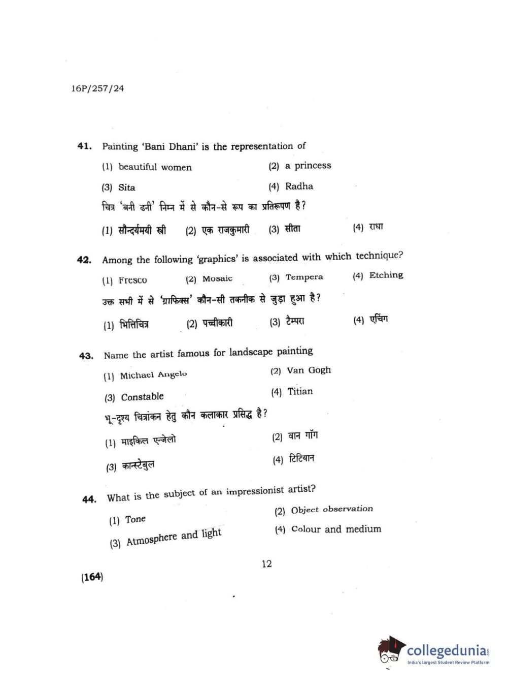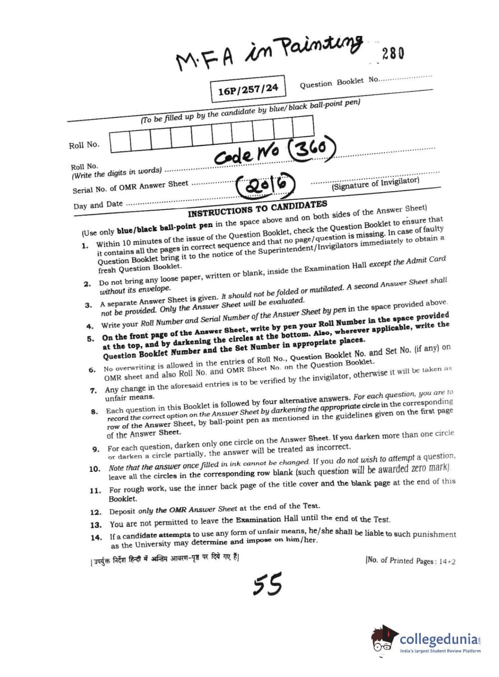 BHU PET 2016 M.F.A IN PAINTING Question paper with answer key pdf is available for download. The exam was successfully organized by Banaras Hindu University (BHU). The question paper comprised a total of 50 questions.