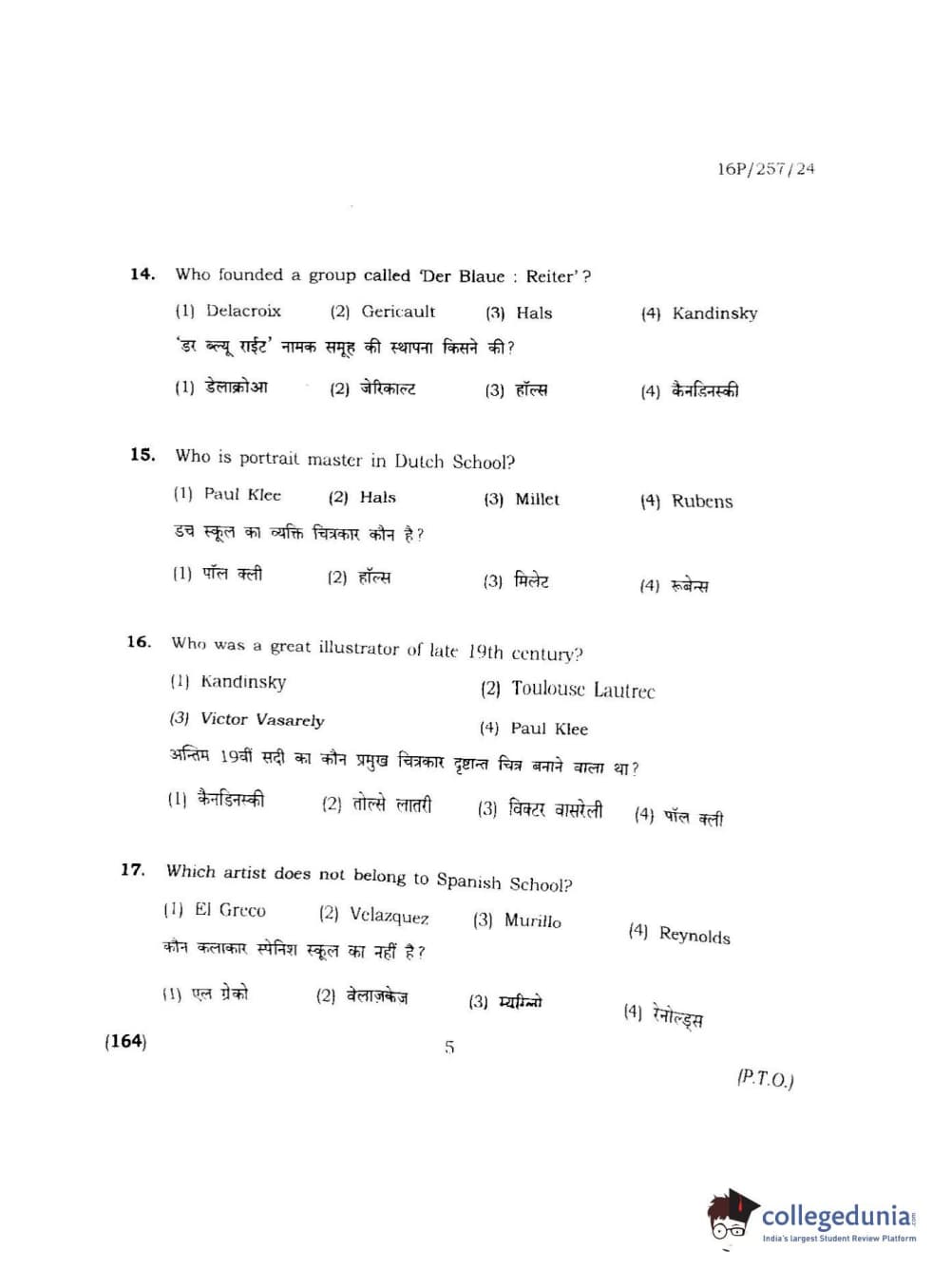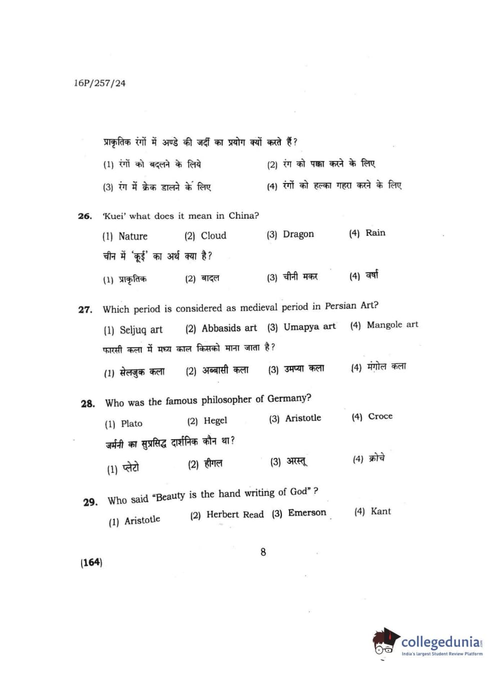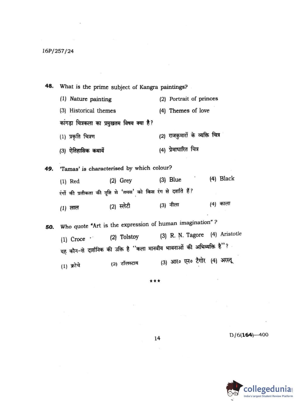BHU PET 2016 M.F.A IN PAINTING Question paper with answer key pdf is available for download. The exam was successfully organized by Banaras Hindu University (BHU). The question paper comprised a total of 50 questions.