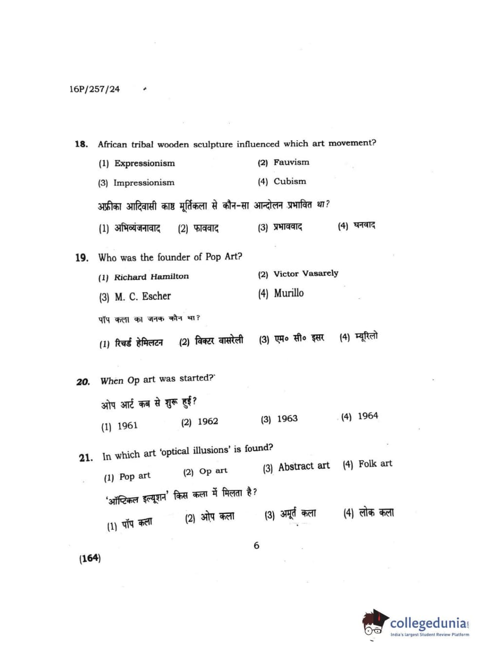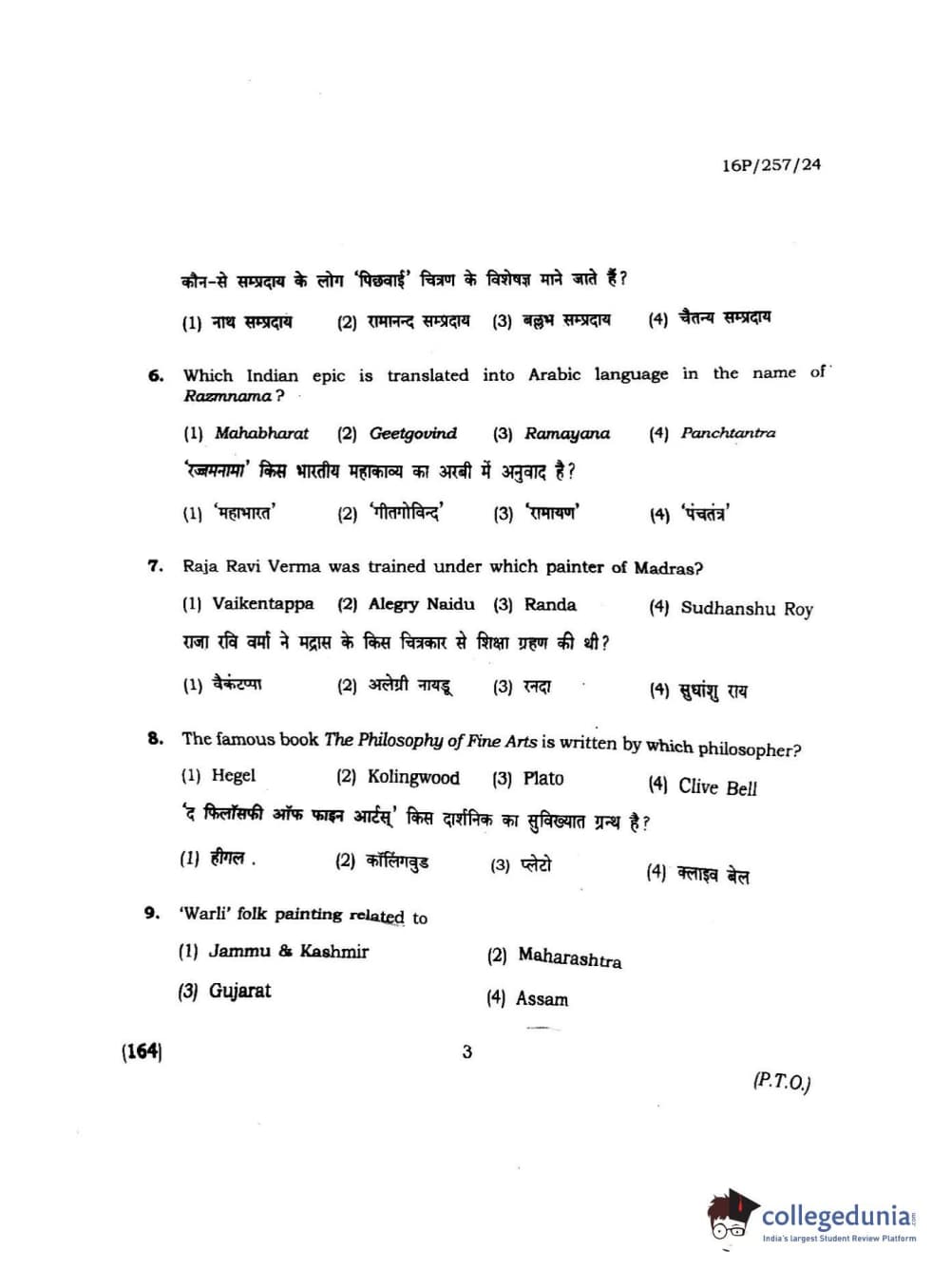 BHU PET 2016 M.F.A IN PAINTING Question Paper with Answer Key PDFs