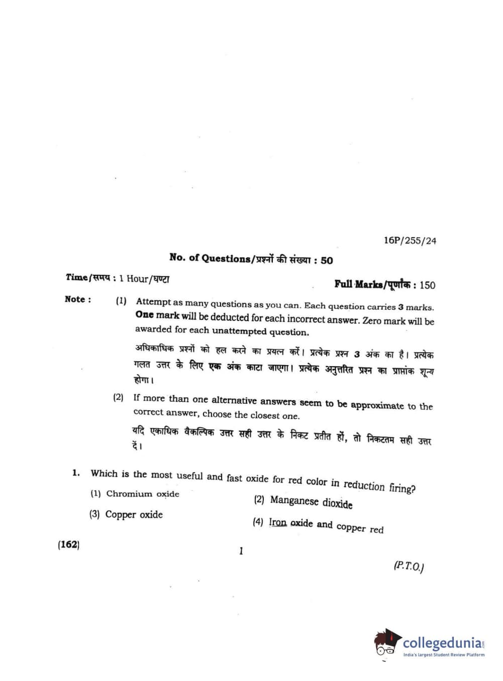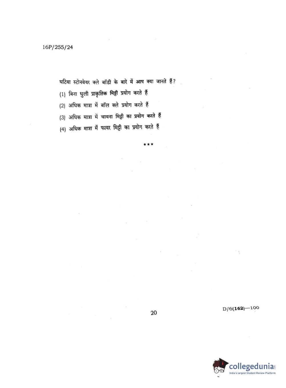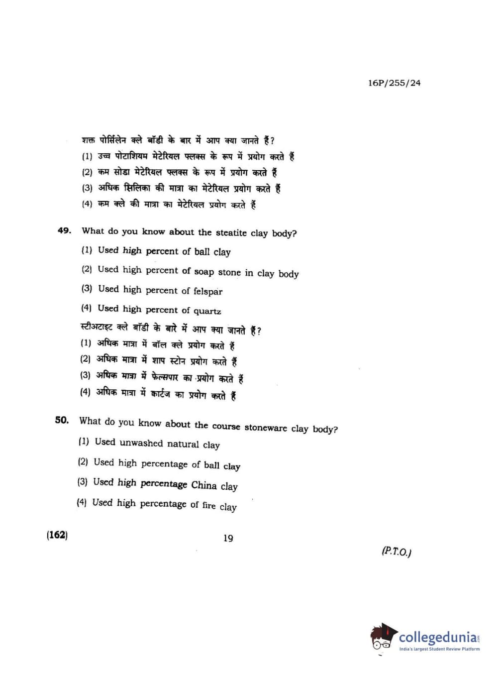 BHU PET 2016 M.F.A. IN POTTERY & CERAMIC Question paper with answer key pdf is available for download. The exam was successfully organized by Banaras Hindu University (BHU). The question paper comprised a total of 50 questions.