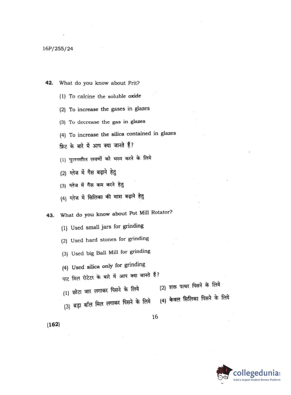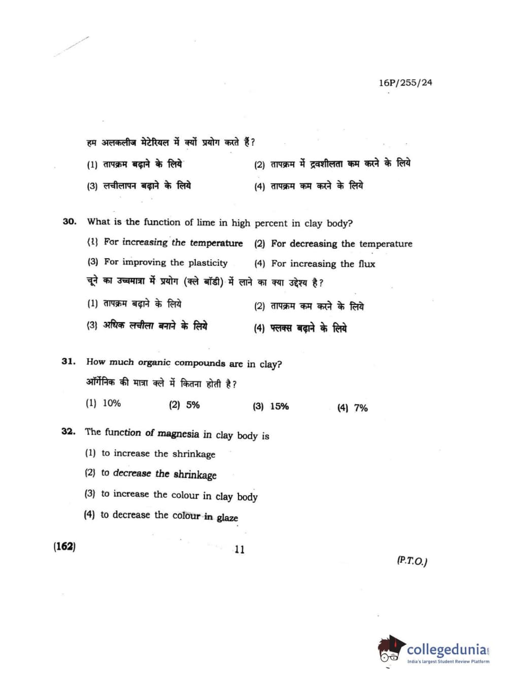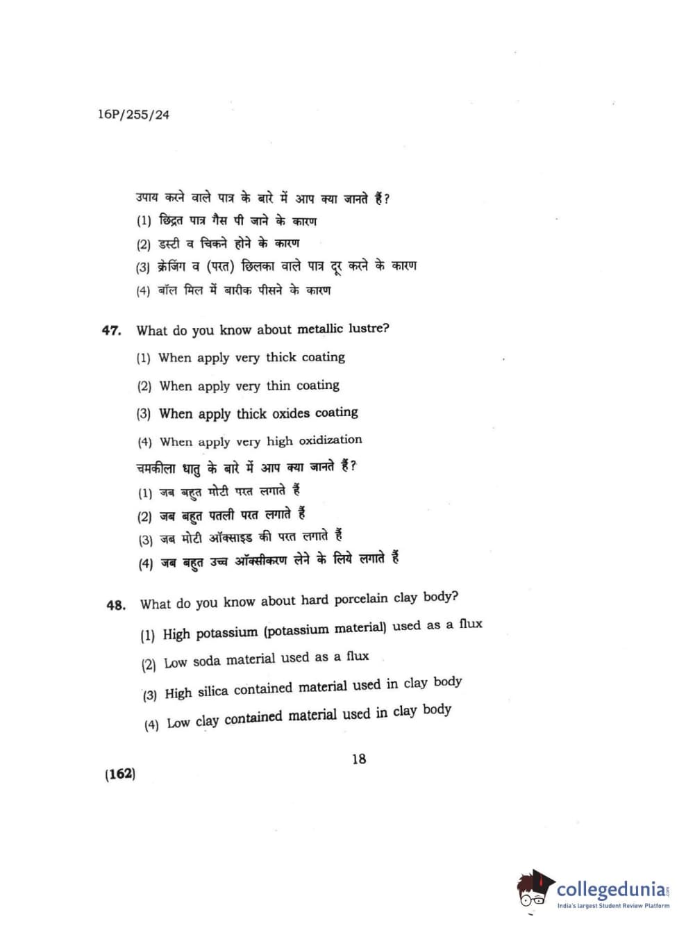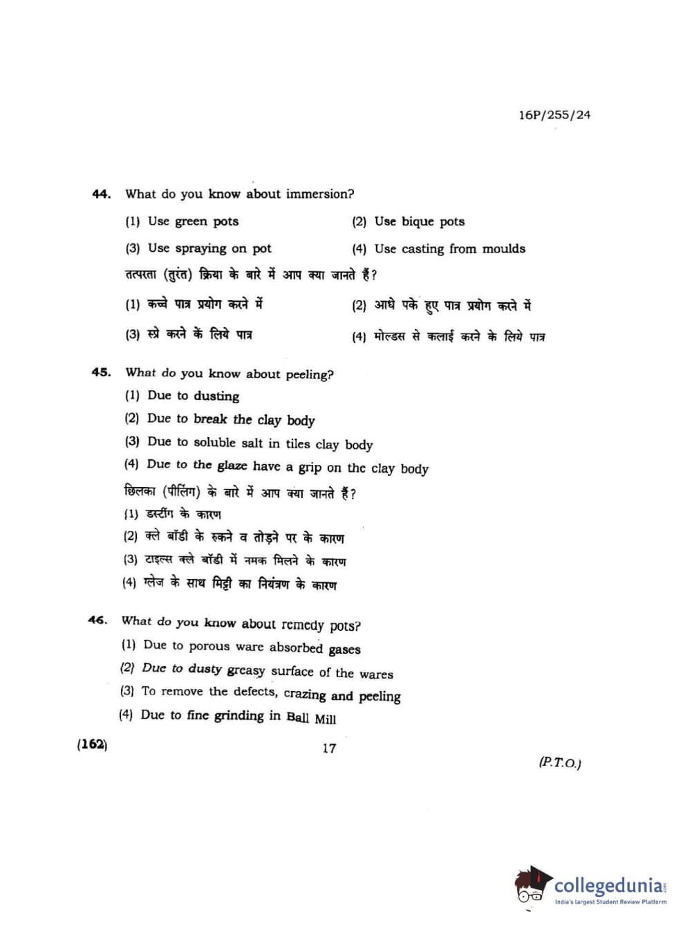 BHU PET 2016 M.F.A. IN POTTERY & CERAMIC Question paper with answer key pdf is available for download. The exam was successfully organized by Banaras Hindu University (BHU). The question paper comprised a total of 50 questions.