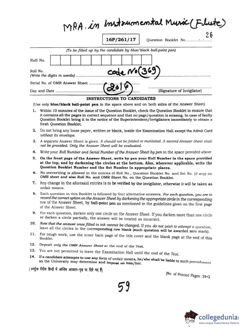 BHU PET 2016 M.PA. IN INSTRUMENTAL MUSIC (FLUTE) Question paper with answer key pdf is available for download. The exam was successfully organized by Banaras Hindu University (BHU). The question paper comprised a total of 100 questions.