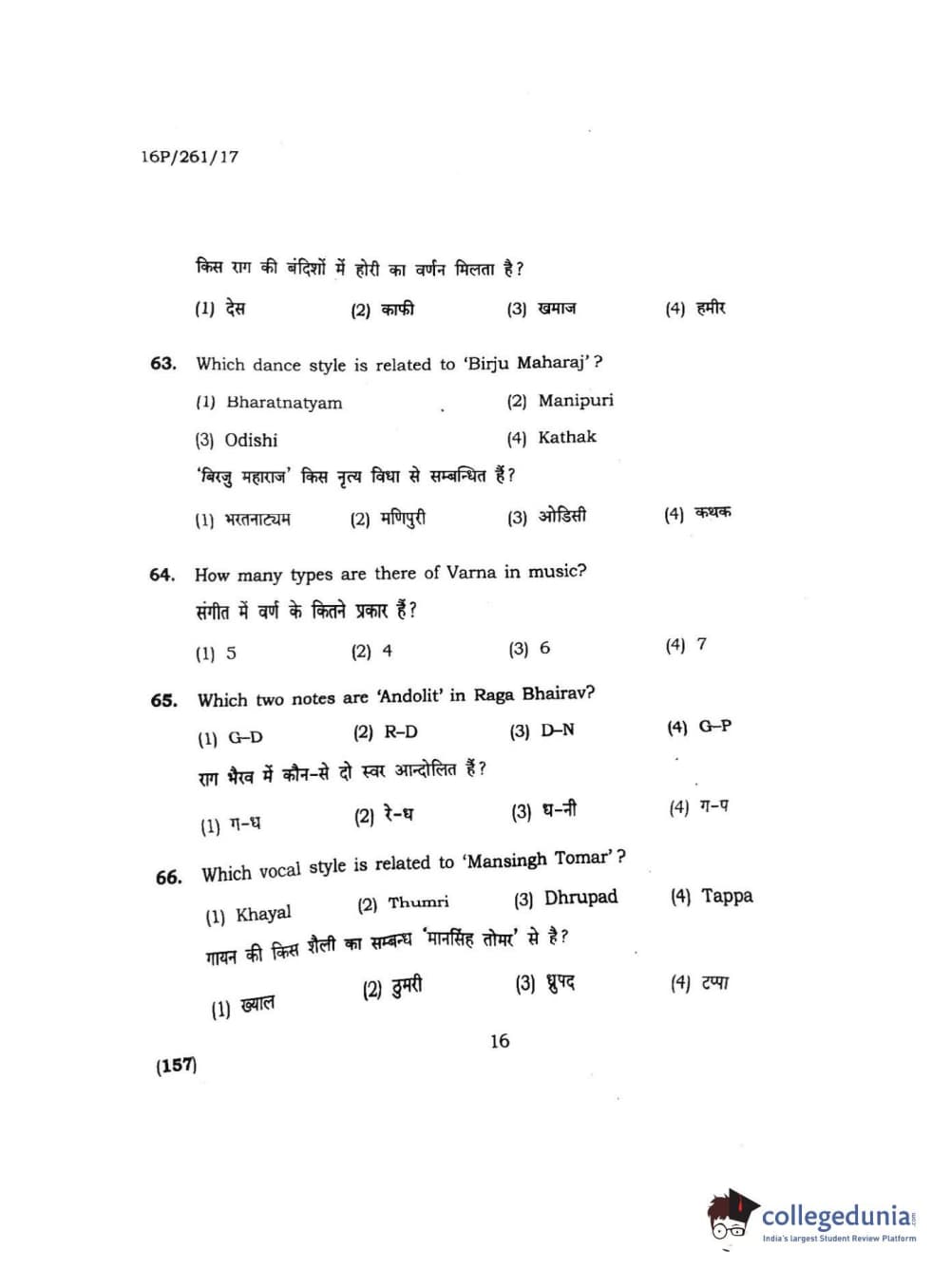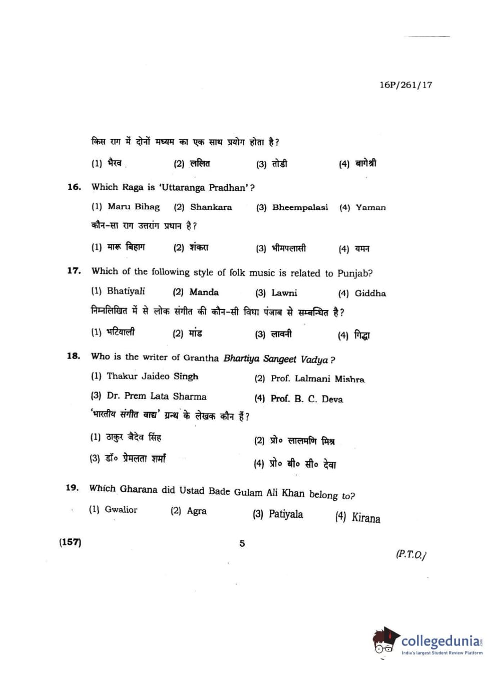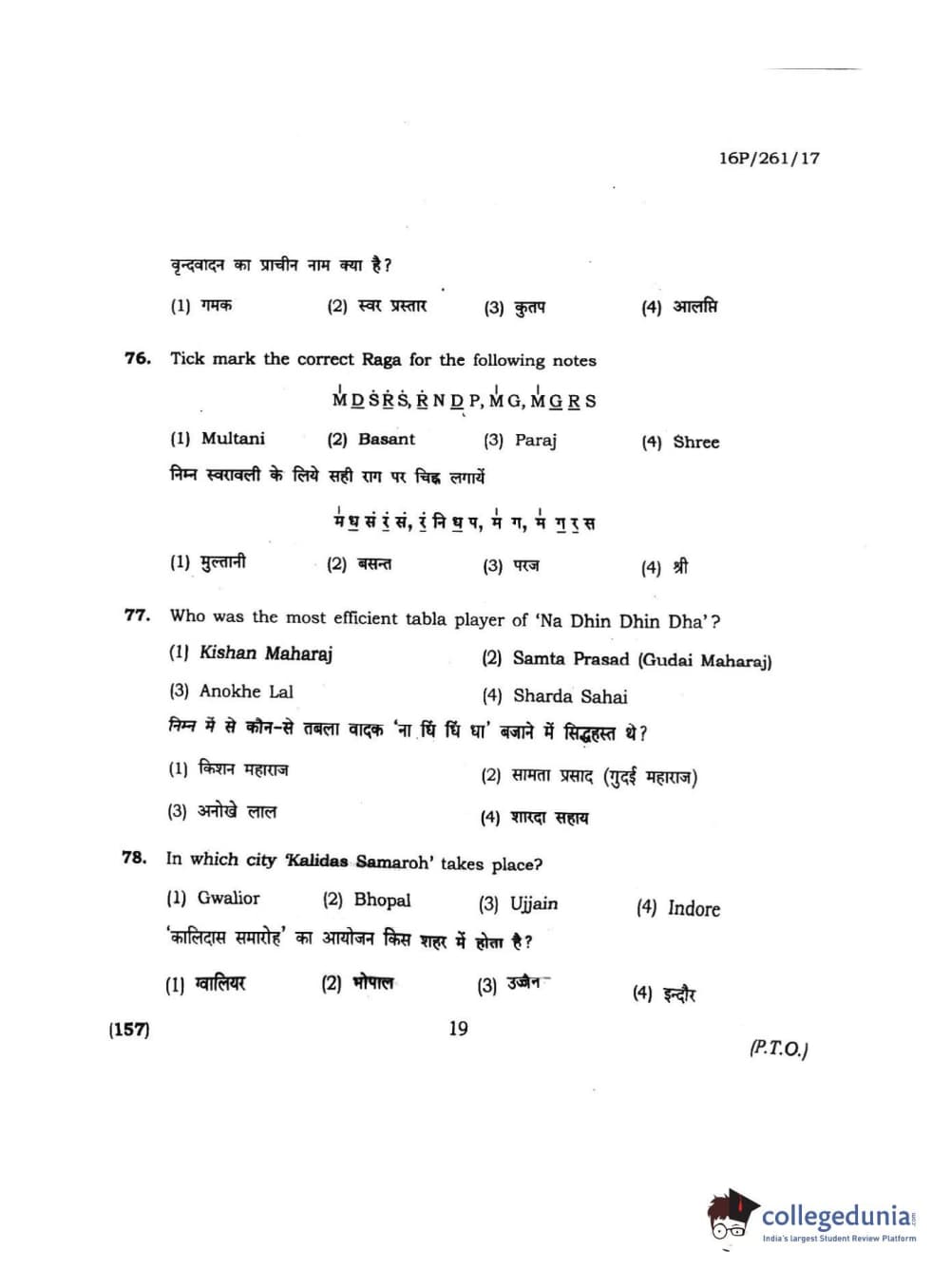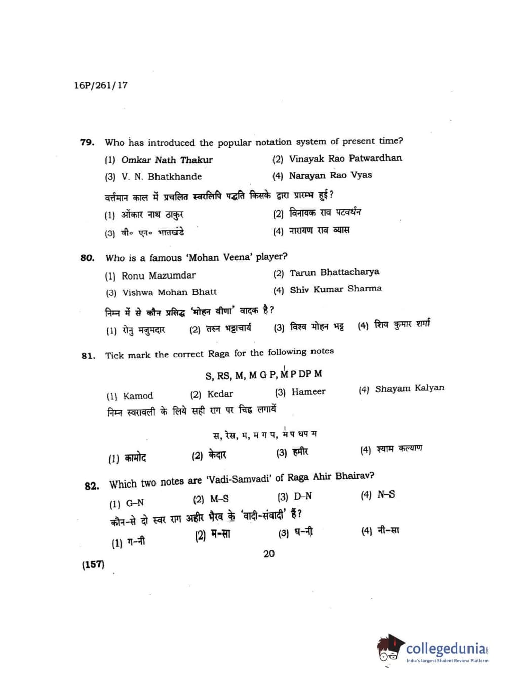 BHU PET 2016 M.PA. IN INSTRUMENTAL MUSIC (FLUTE) Question Paper with Answer Key PDFs