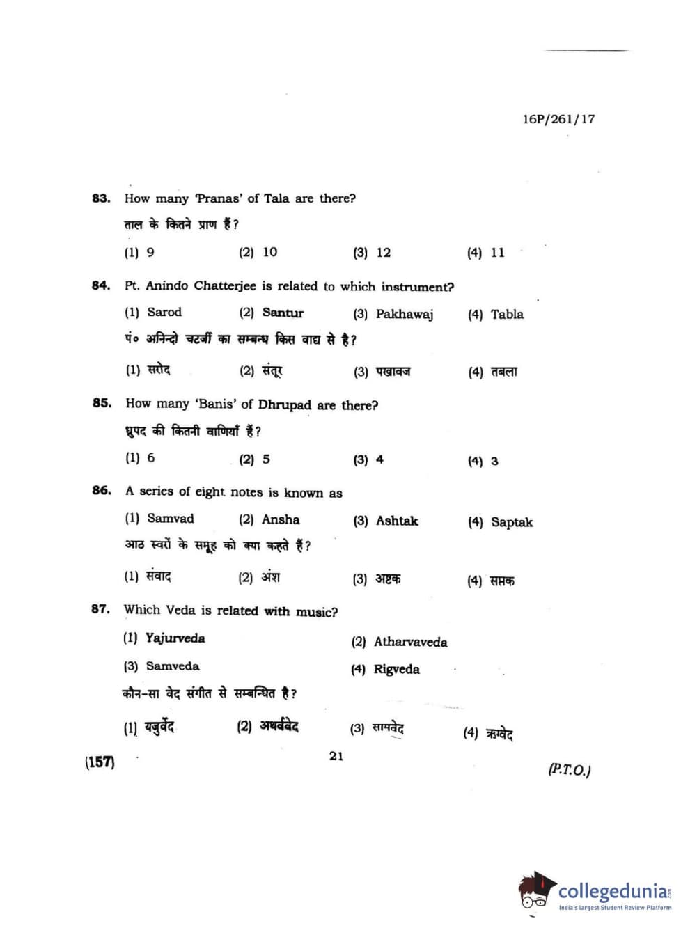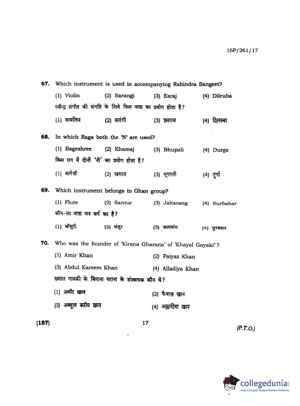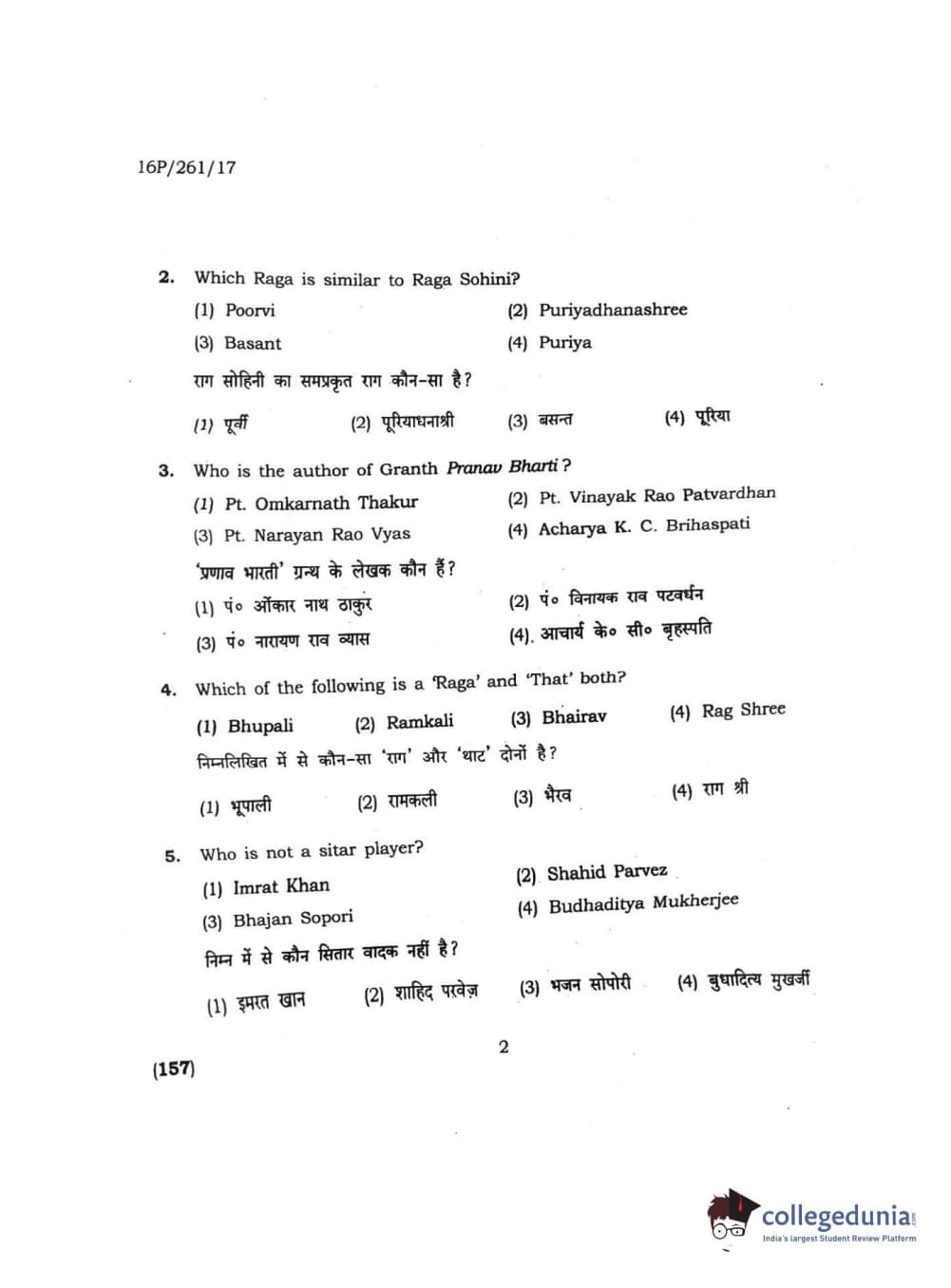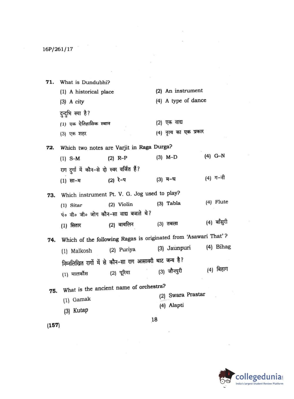 BHU PET 2016 M.PA. IN INSTRUMENTAL MUSIC (FLUTE) Question Paper with Answer Key PDFs