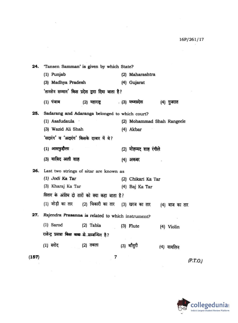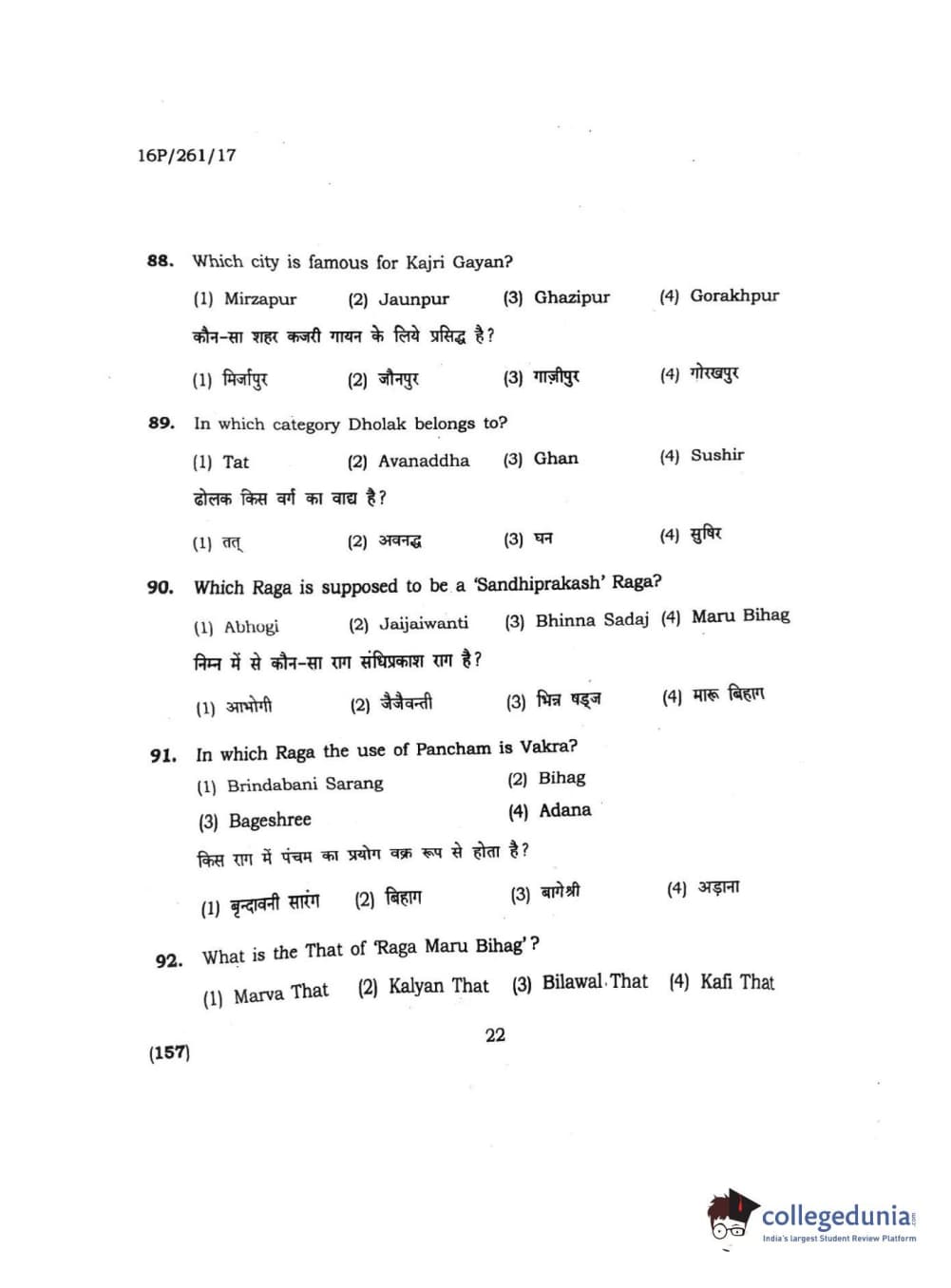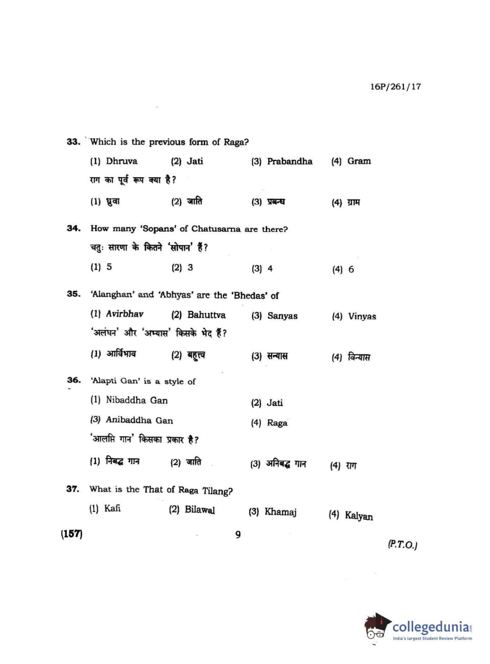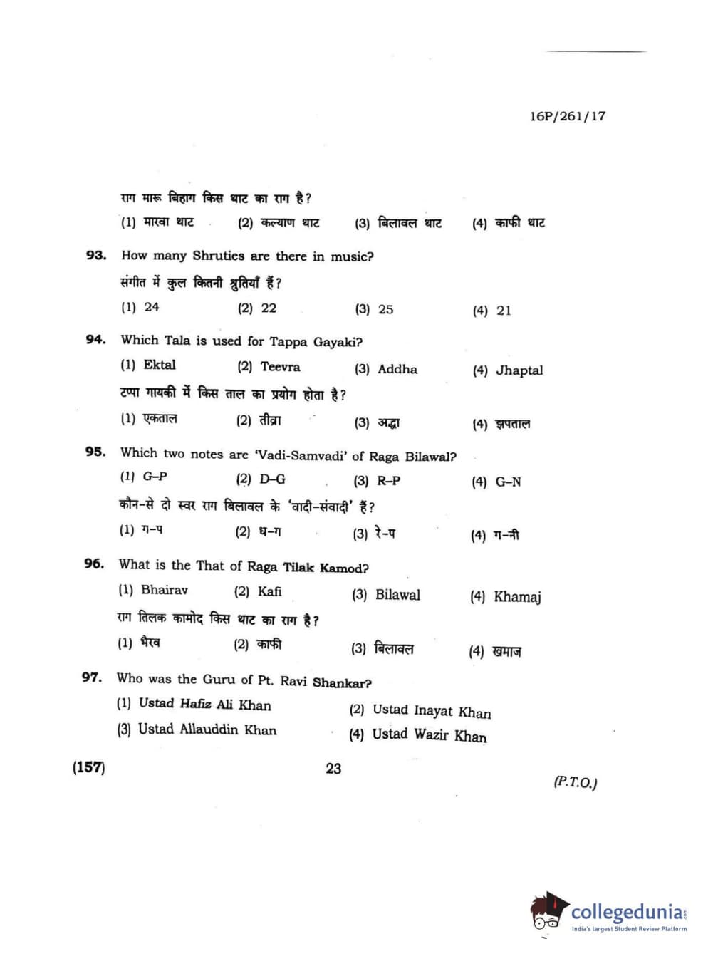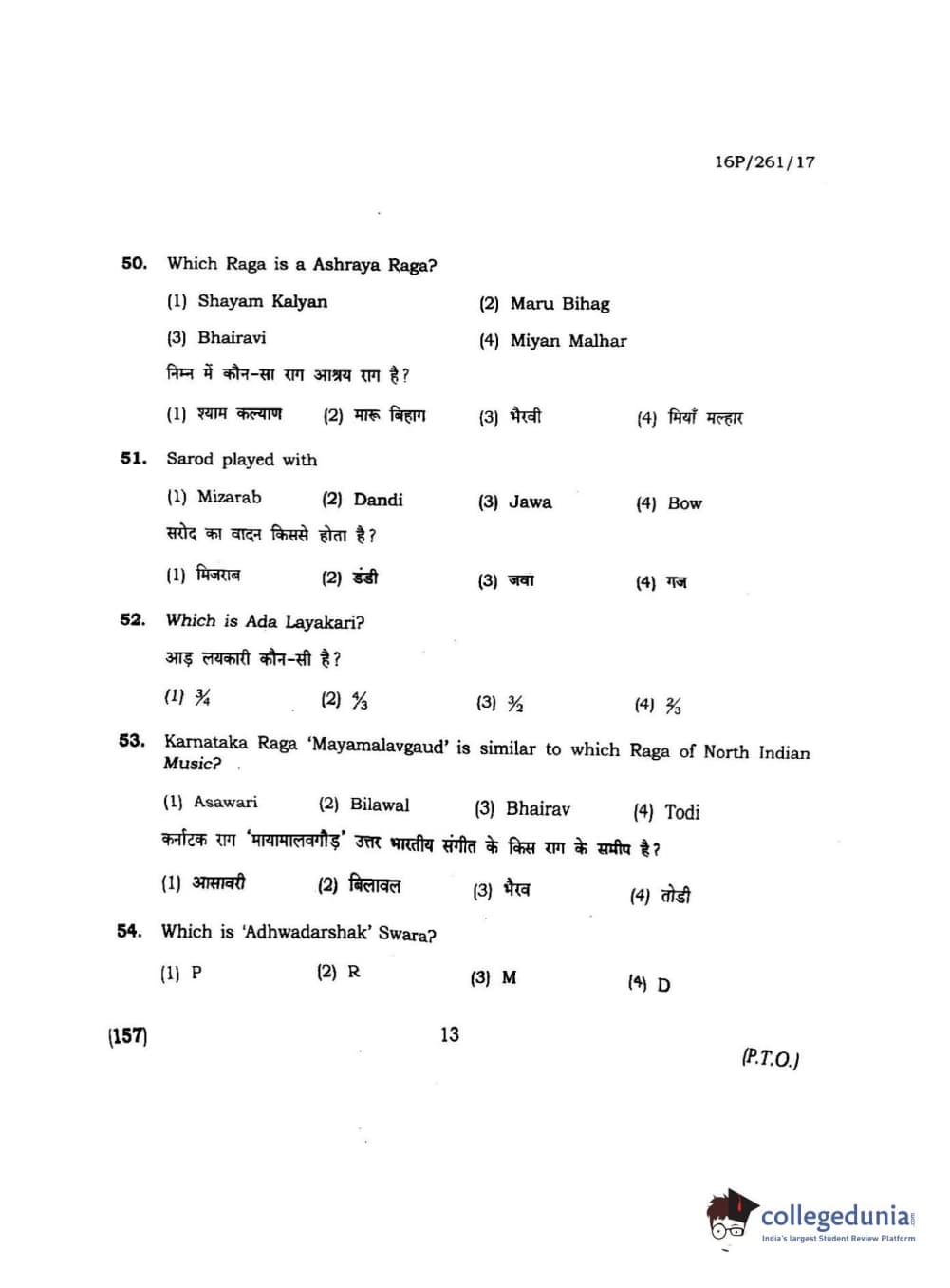 BHU PET 2016 M.PA. IN INSTRUMENTAL MUSIC (FLUTE) Question Paper with Answer Key PDFs