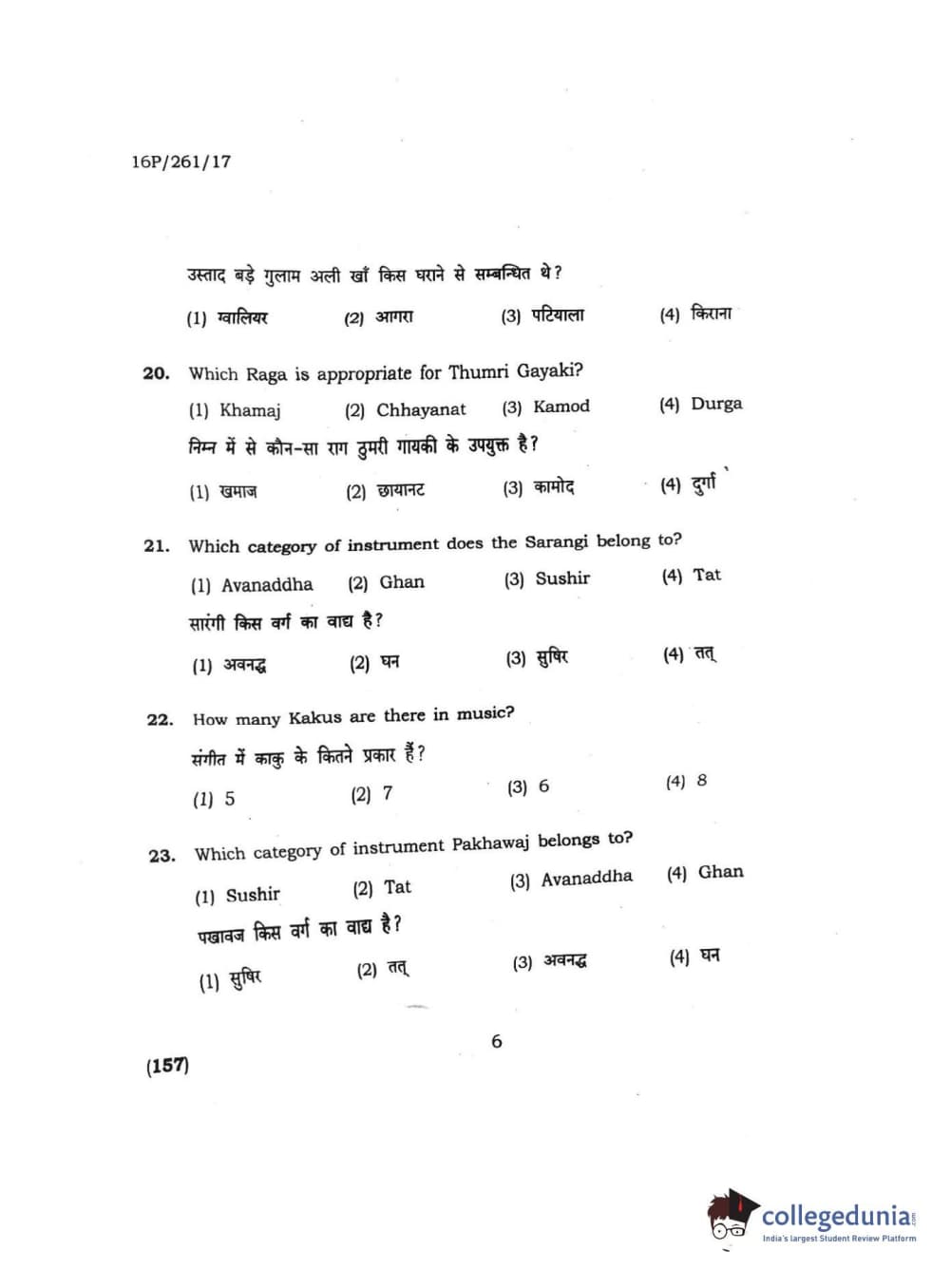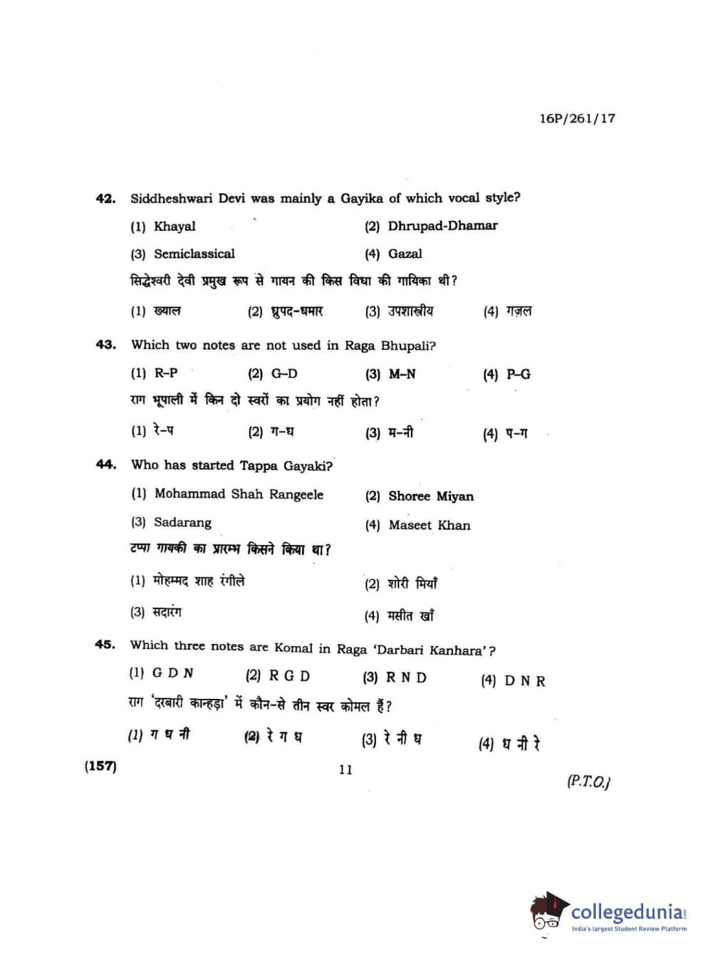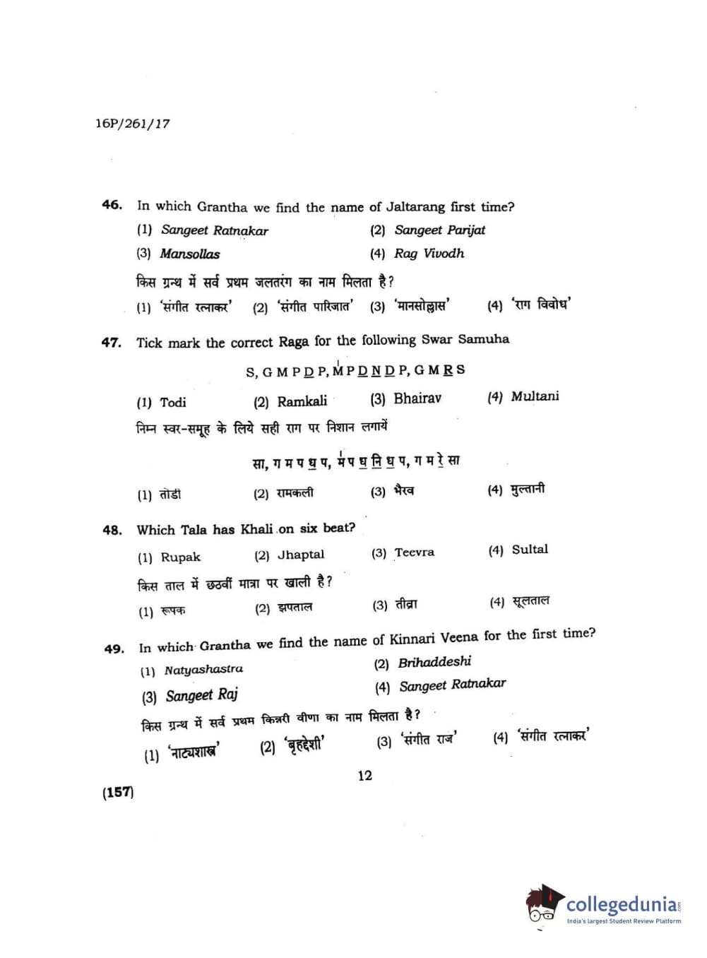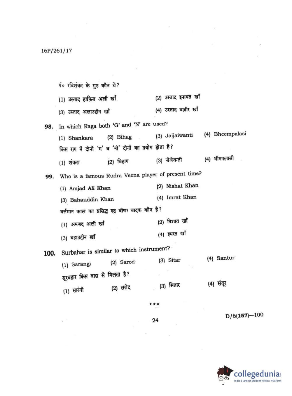 BHU PET 2016 M.PA. IN INSTRUMENTAL MUSIC (FLUTE) Question Paper with Answer Key PDFs