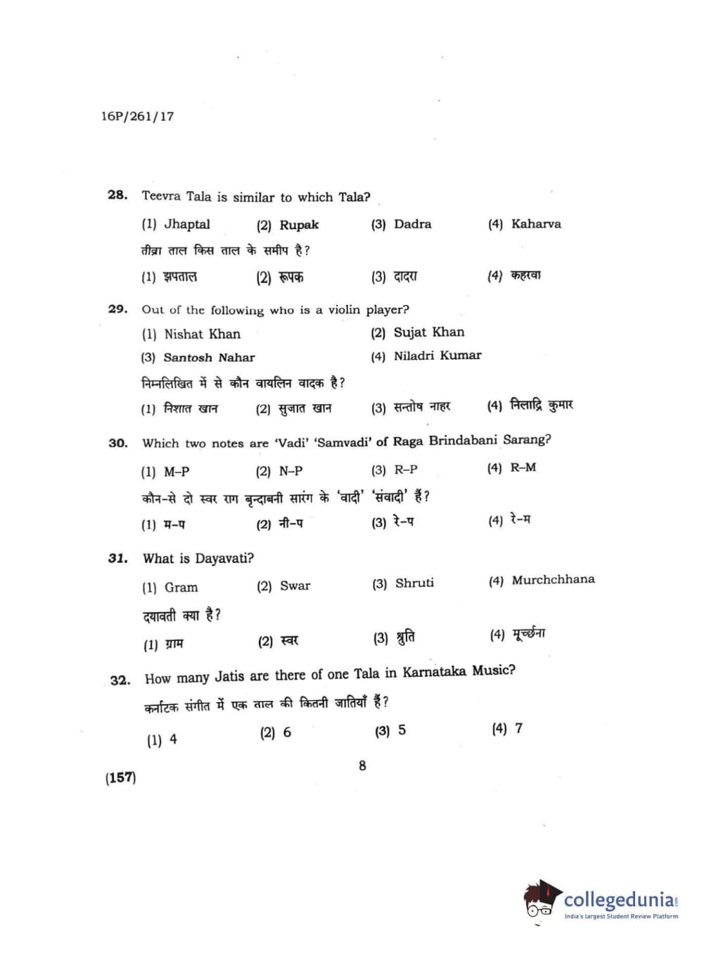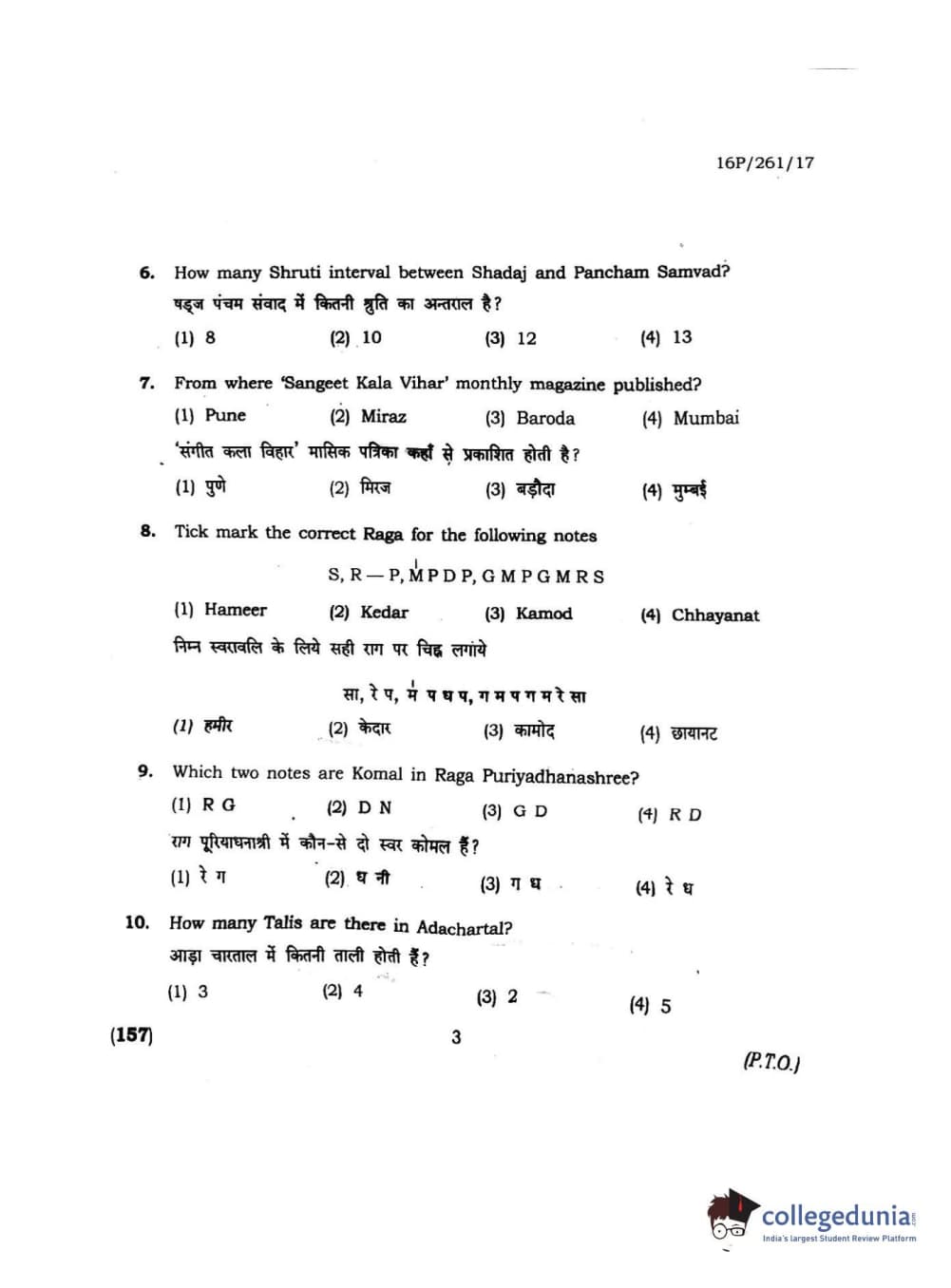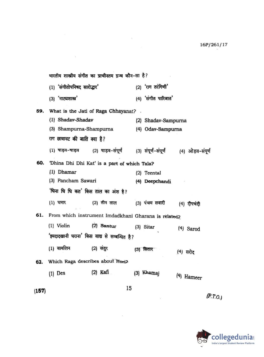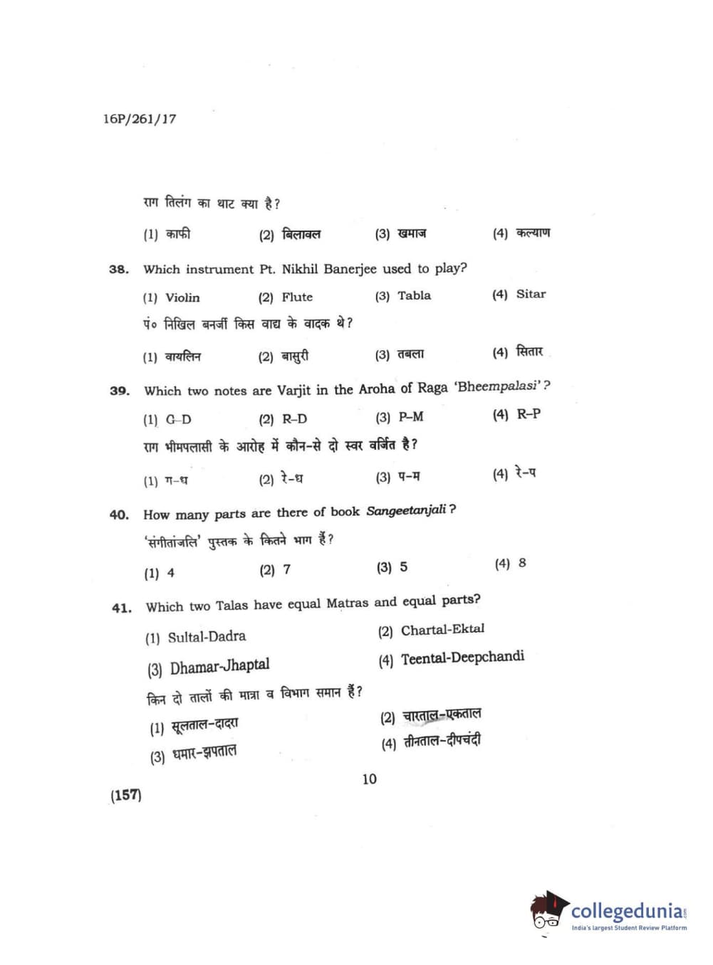BHU PET 2016 M.PA. IN INSTRUMENTAL MUSIC (FLUTE) Question Paper with Answer Key PDFs