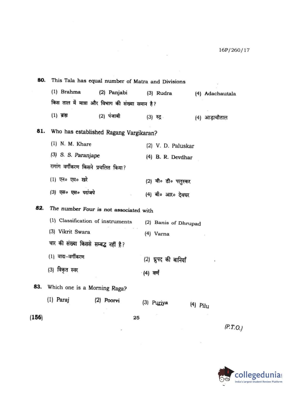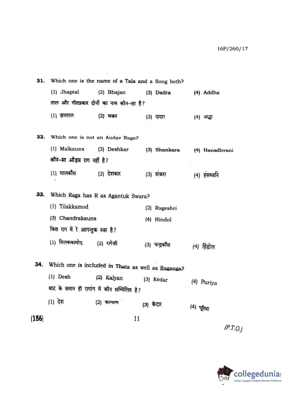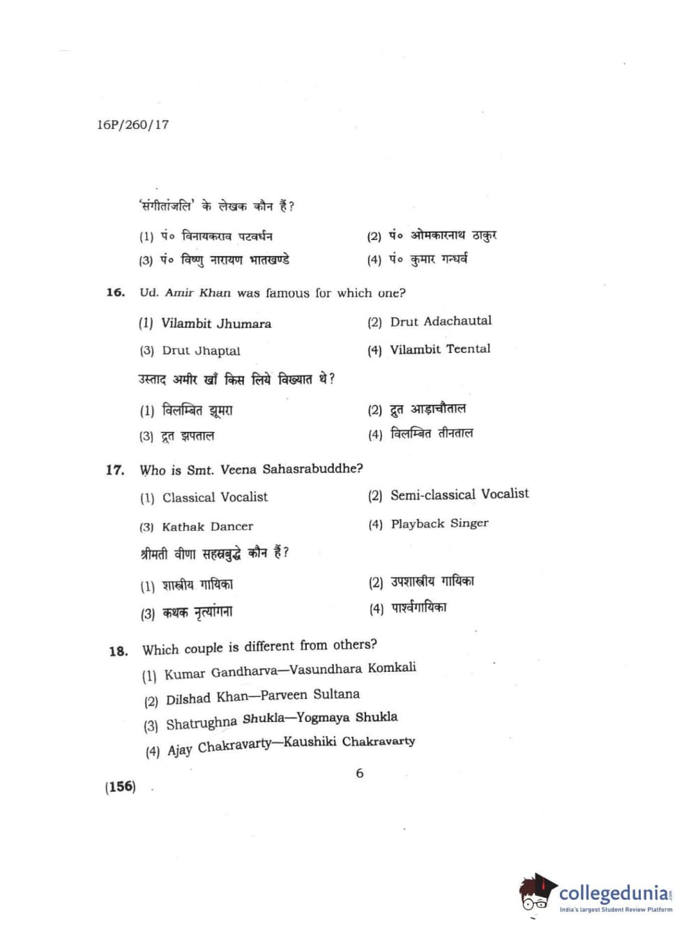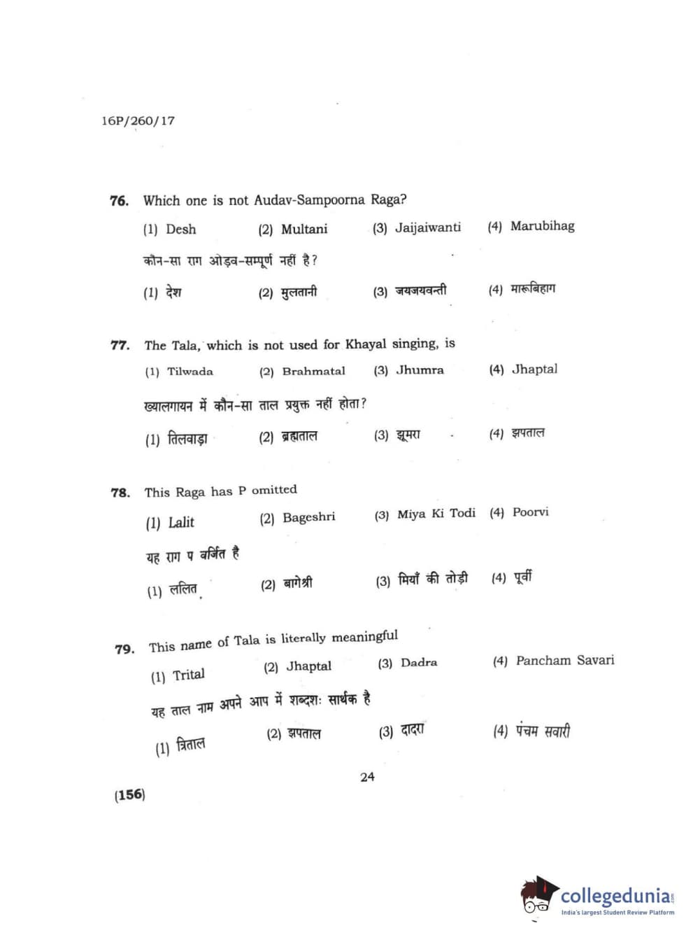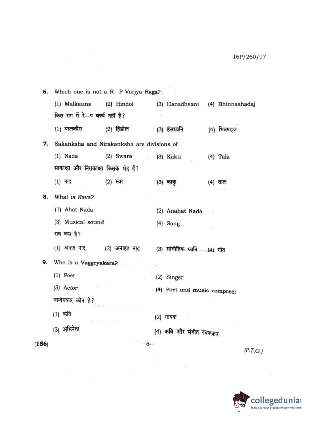 BHU PET 2016 M.PA. IN VOCAL Question Paper with Answer Key PDFs