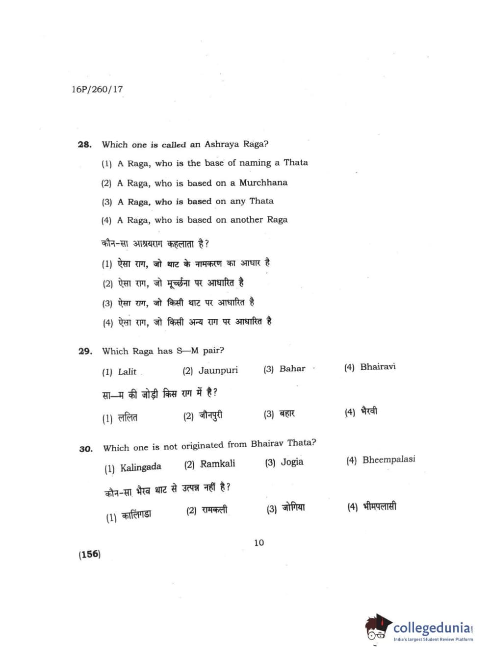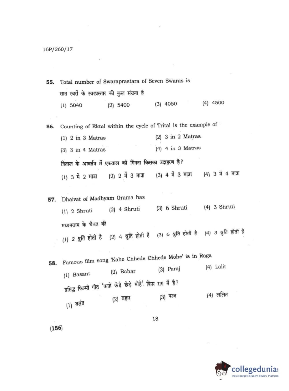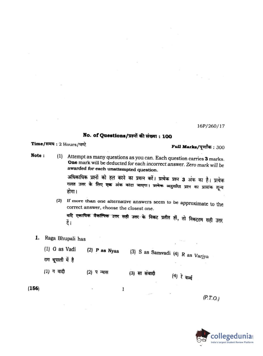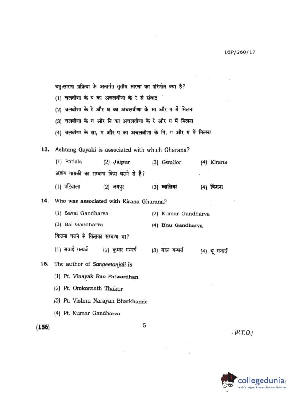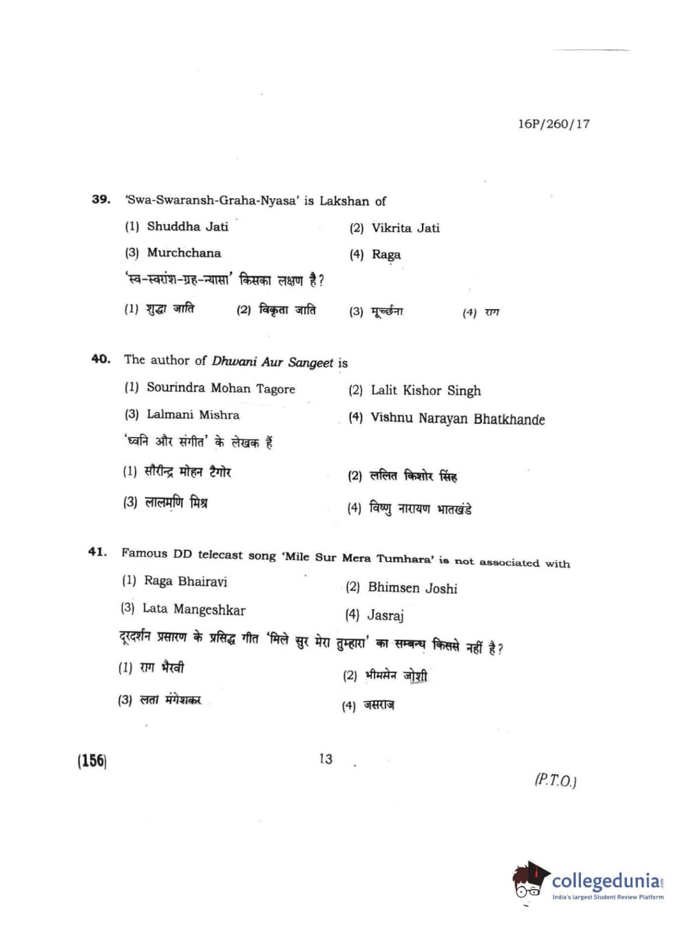 BHU PET 2016 M.PA. IN VOCAL Question Paper with Answer Key PDFs