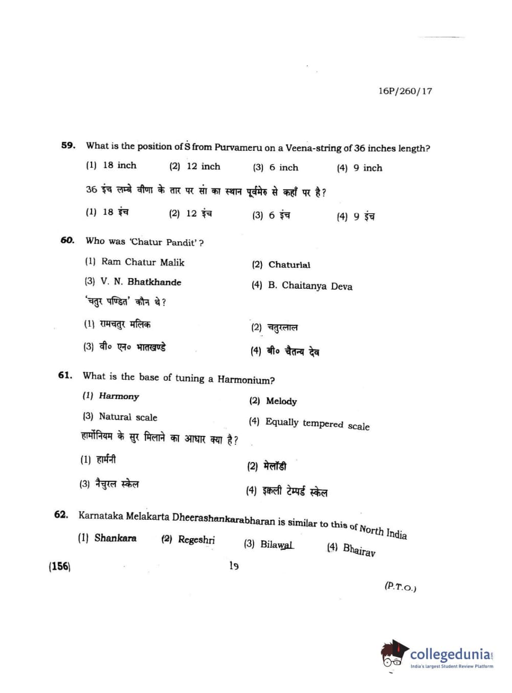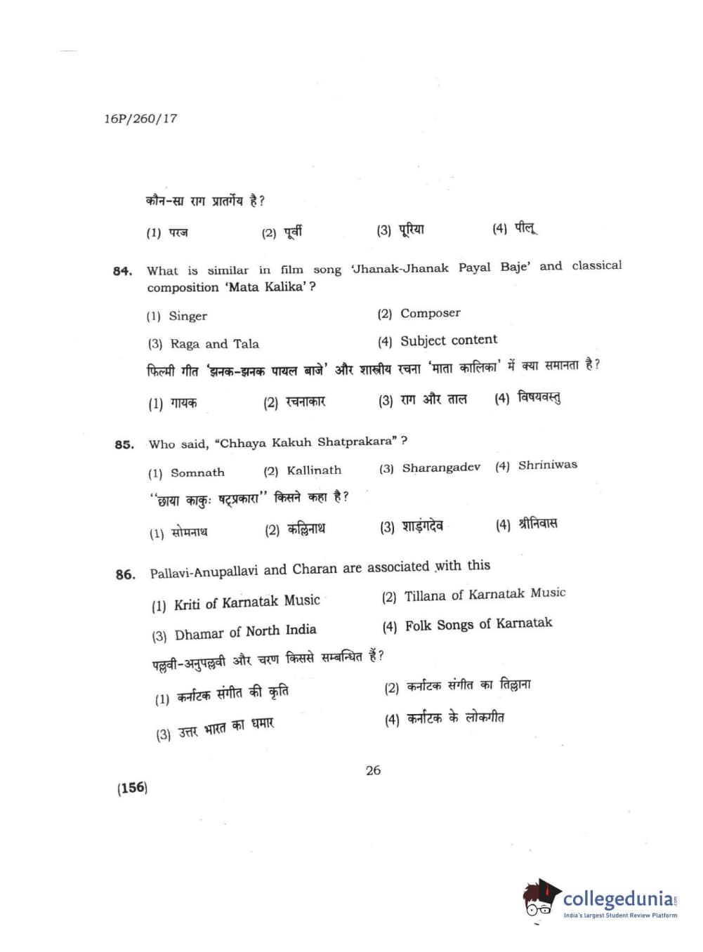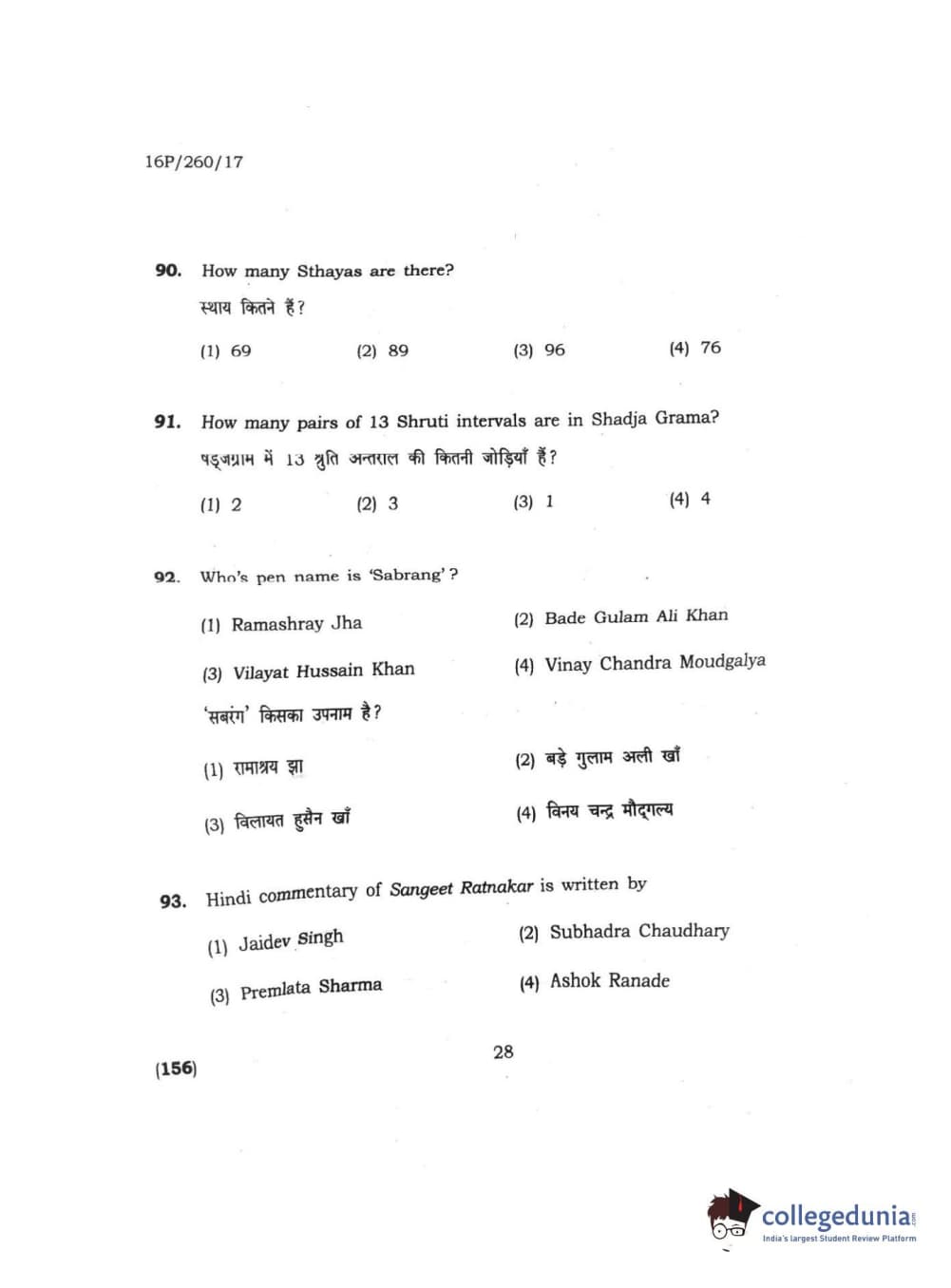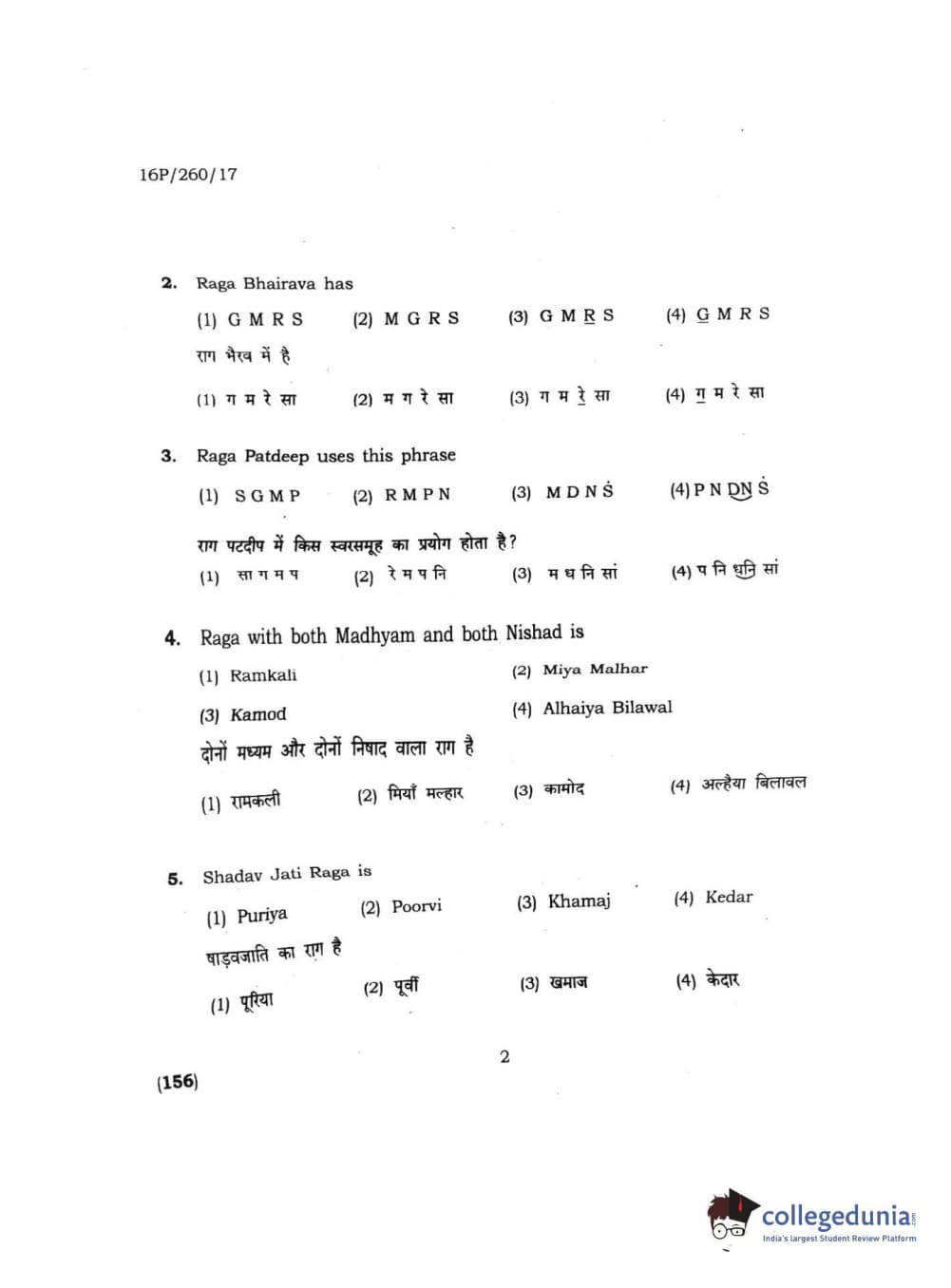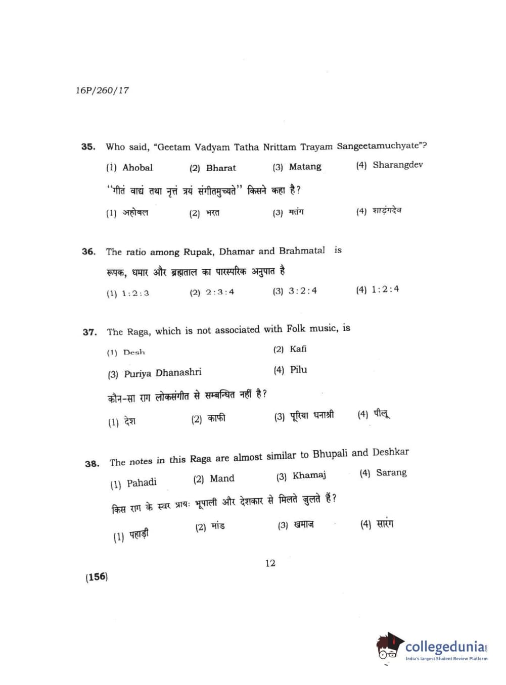 BHU PET 2016 M.PA. IN VOCAL Question Paper with Answer Key PDFs