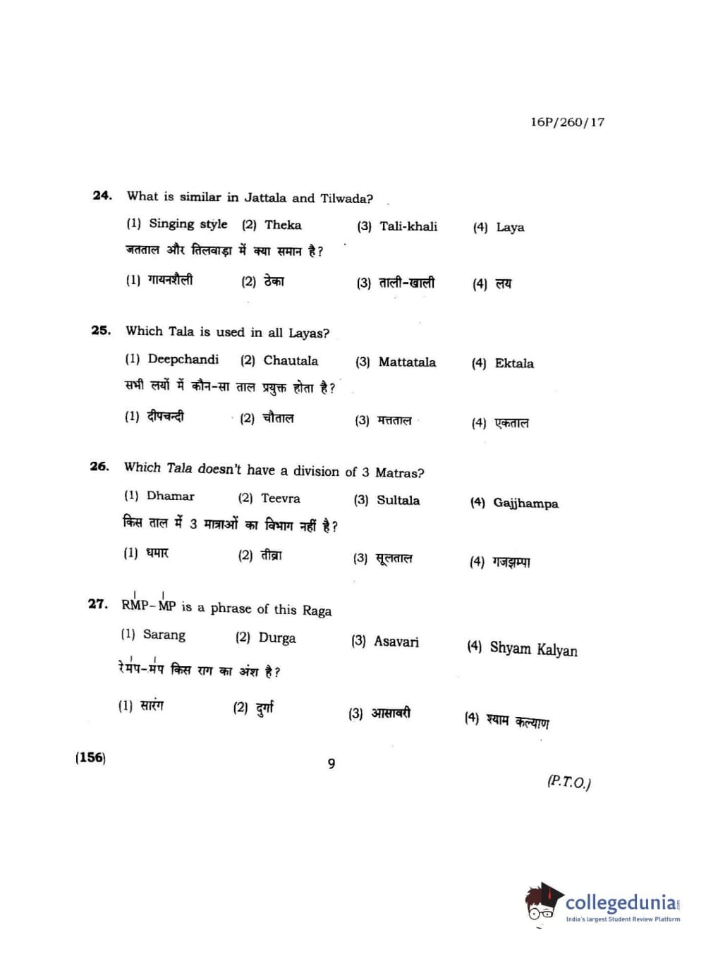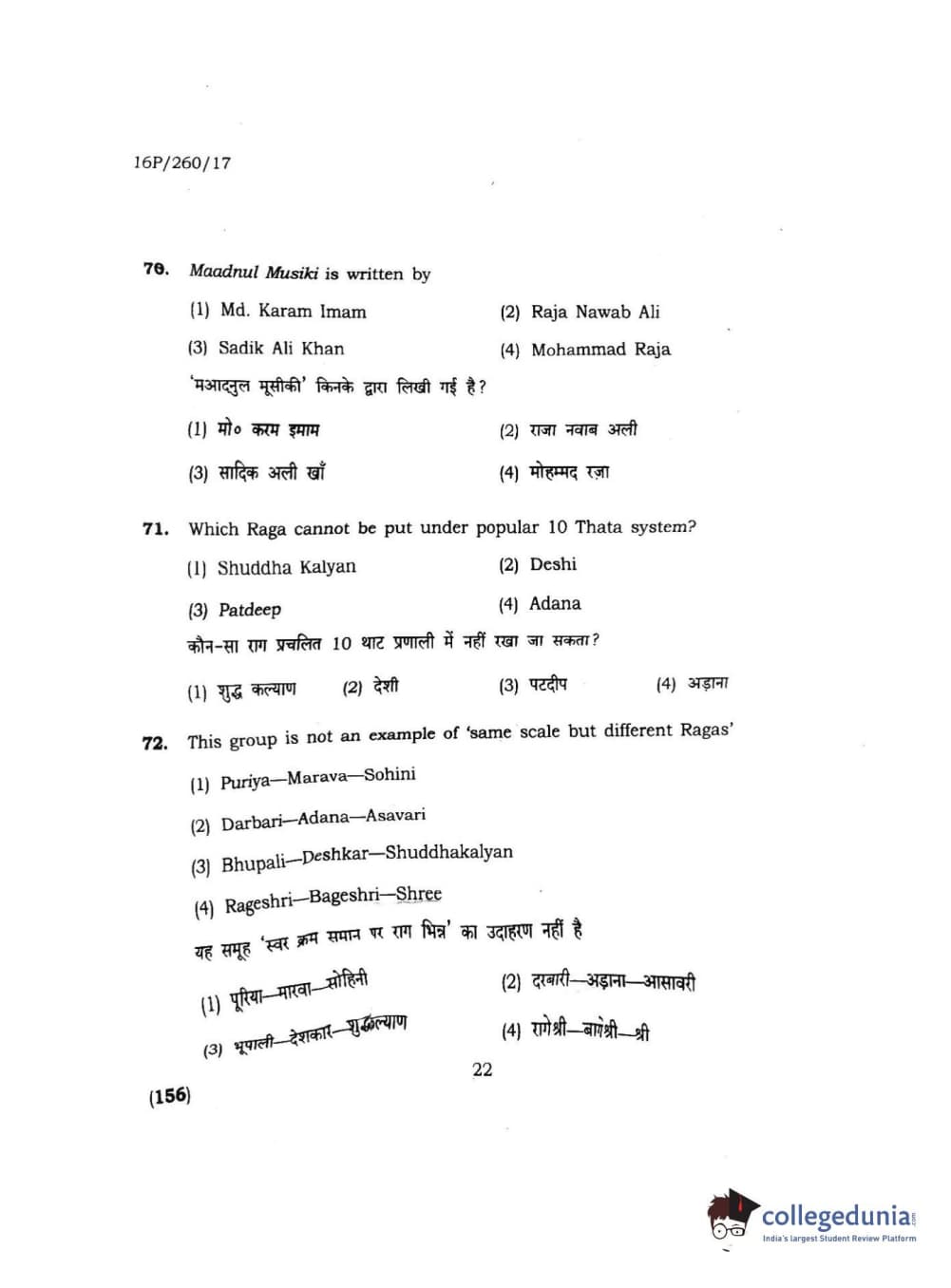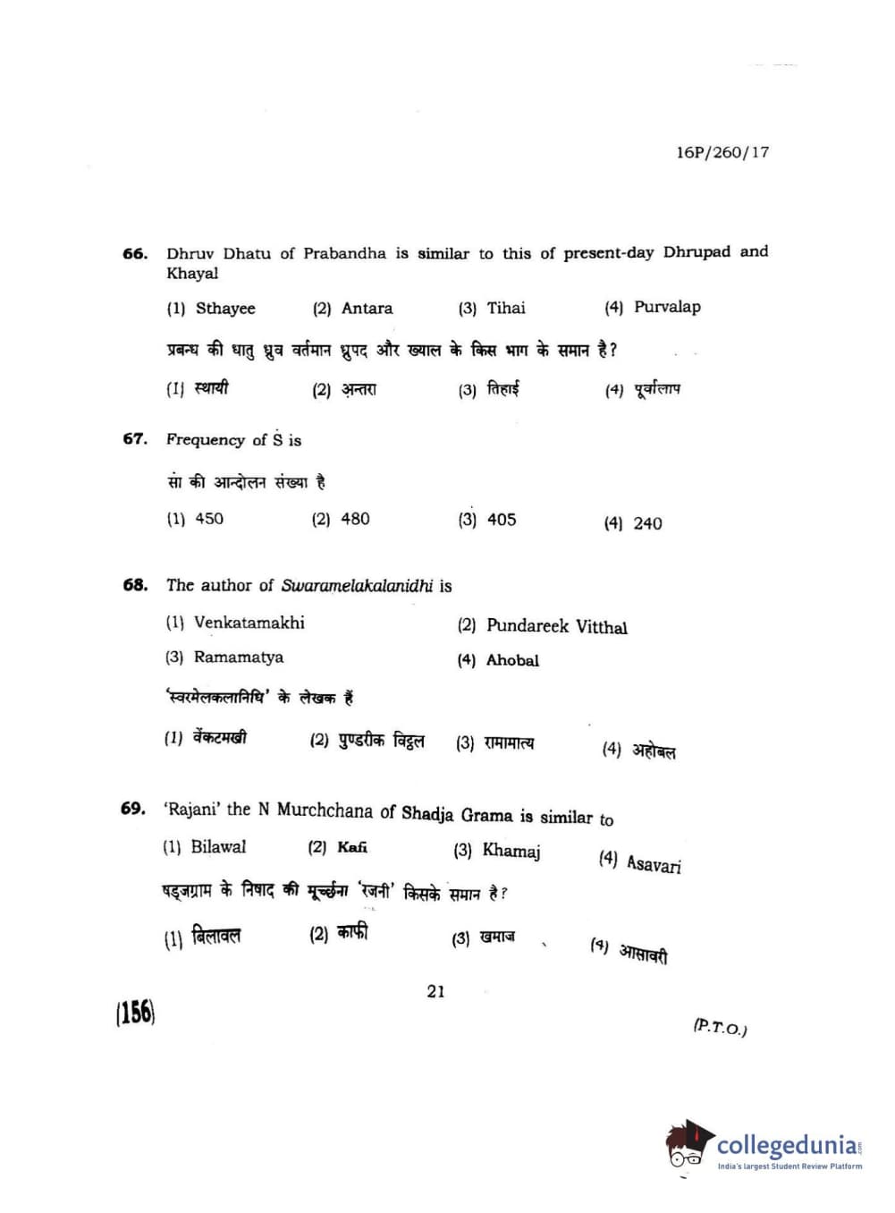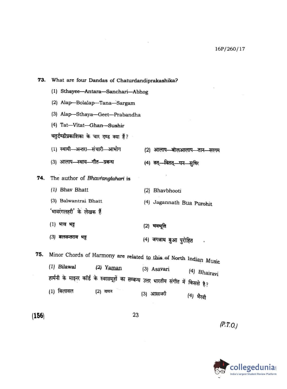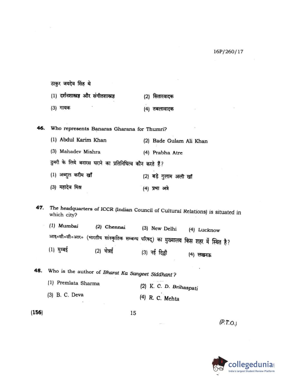 BHU PET 2016 M.PA. IN VOCAL Question Paper with Answer Key PDFs