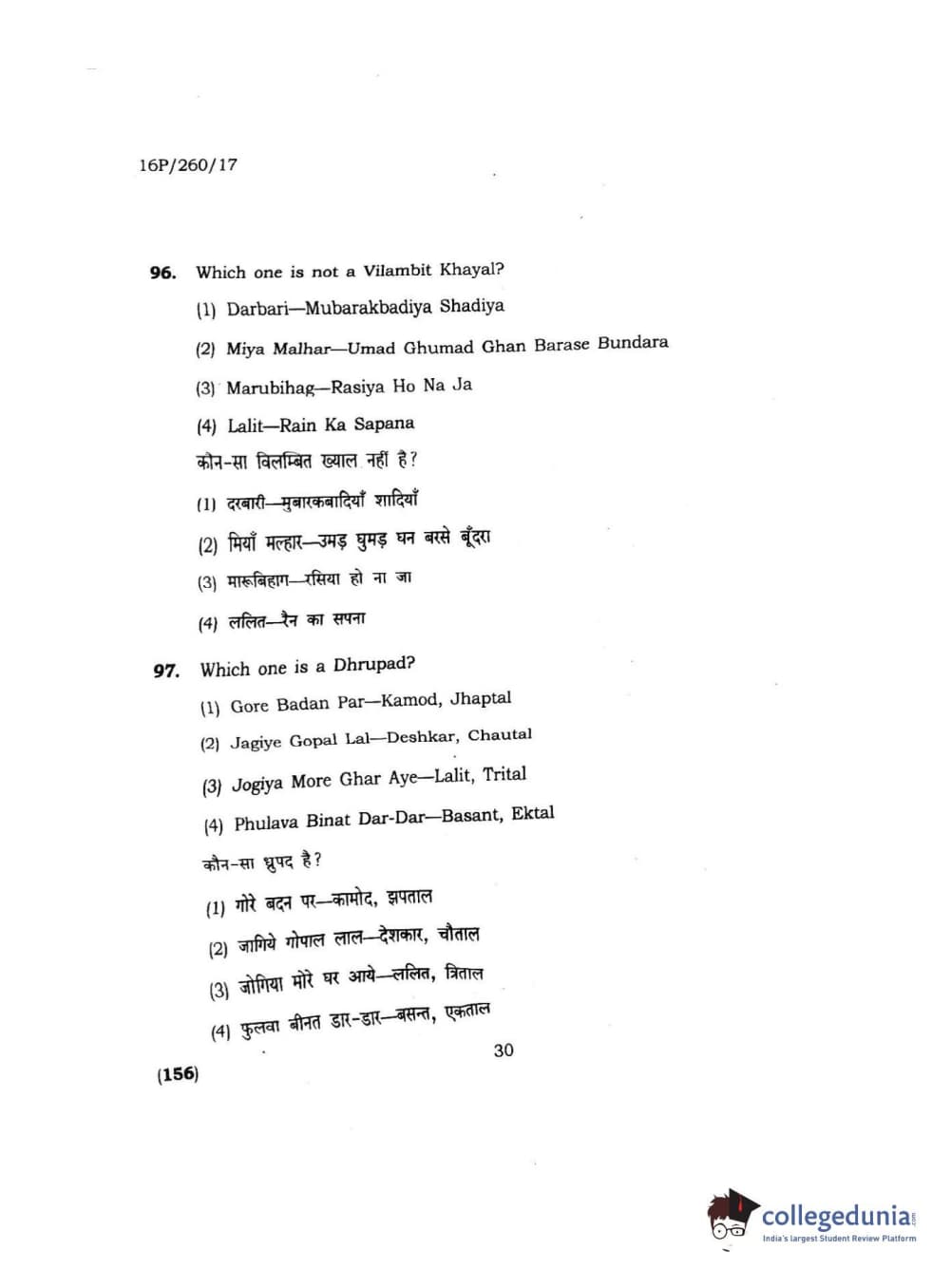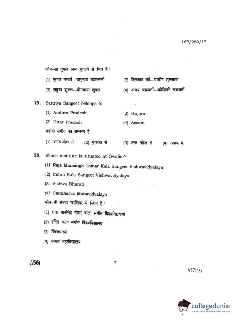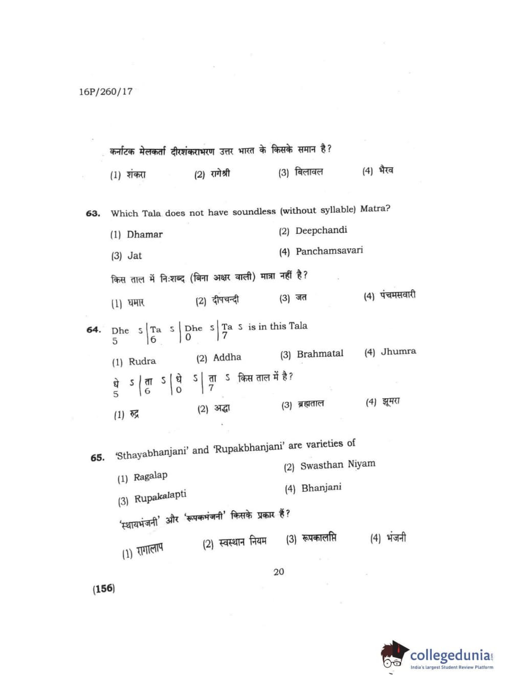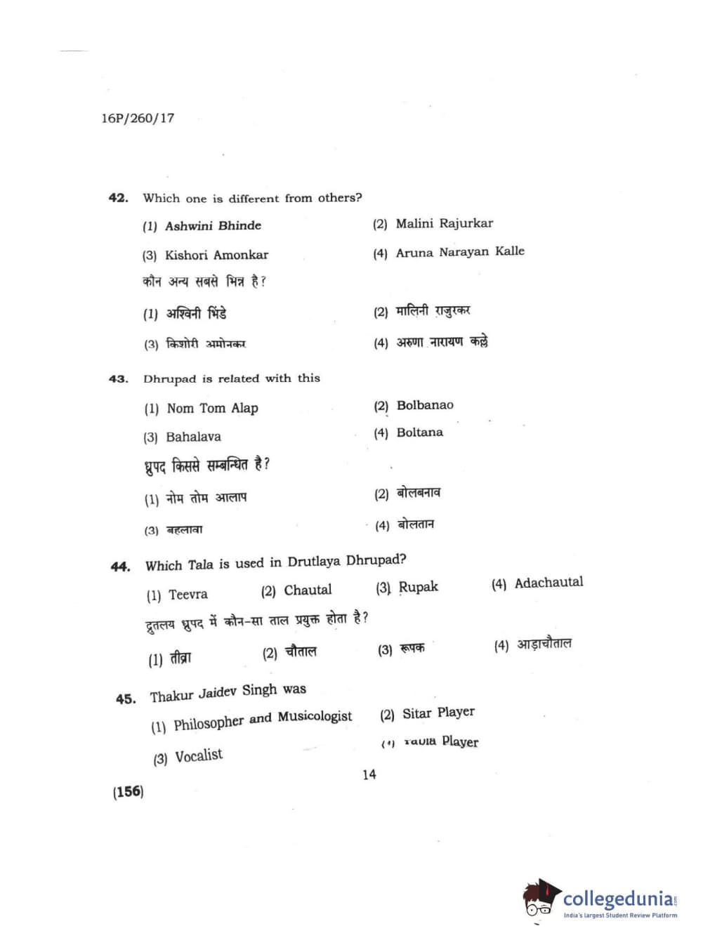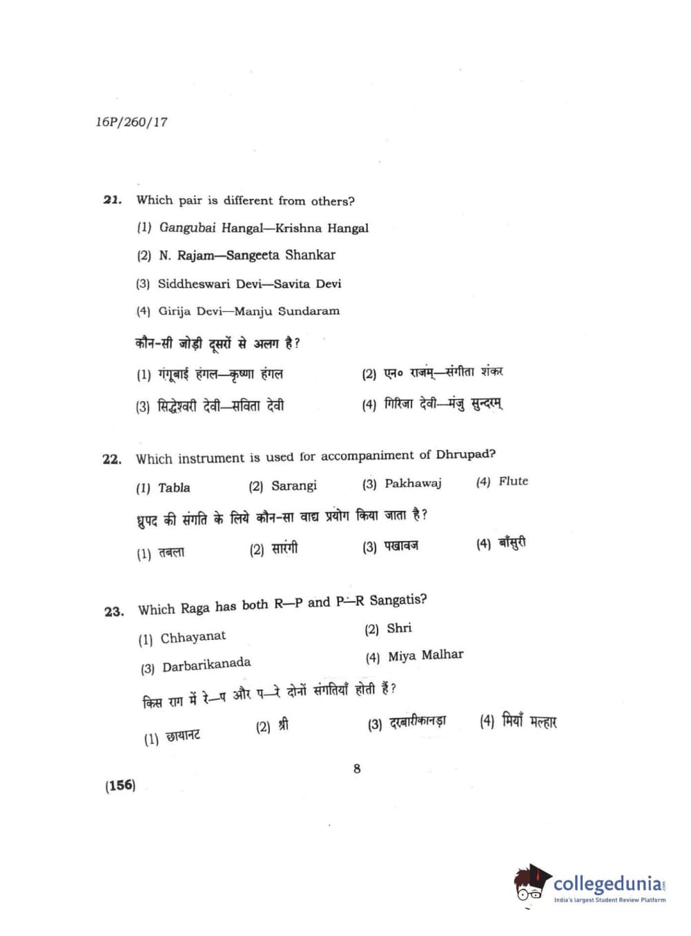 BHU PET 2016 M.PA. IN VOCAL Question Paper with Answer Key PDFs