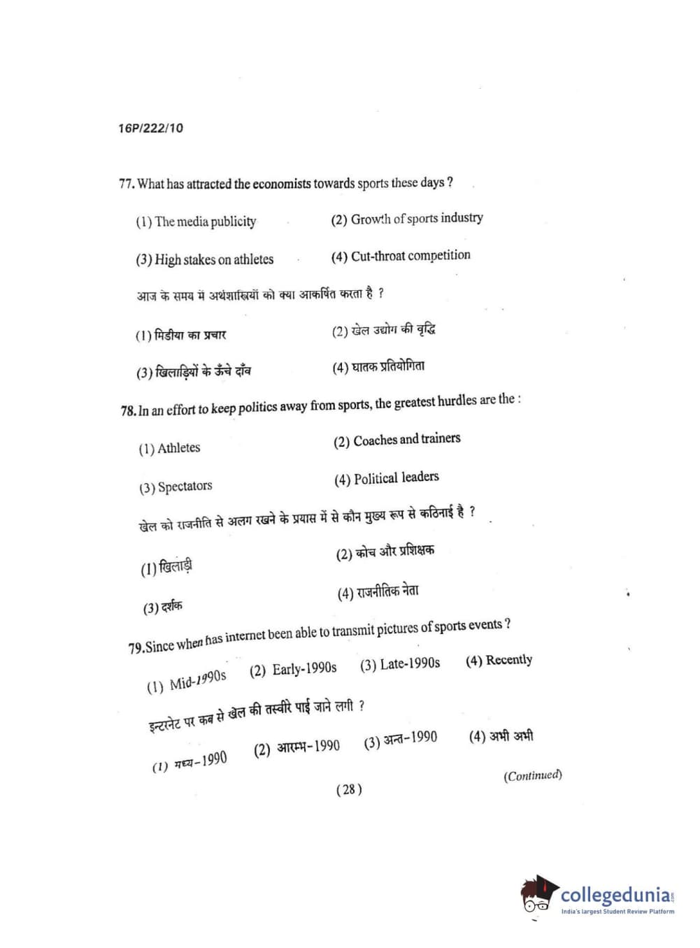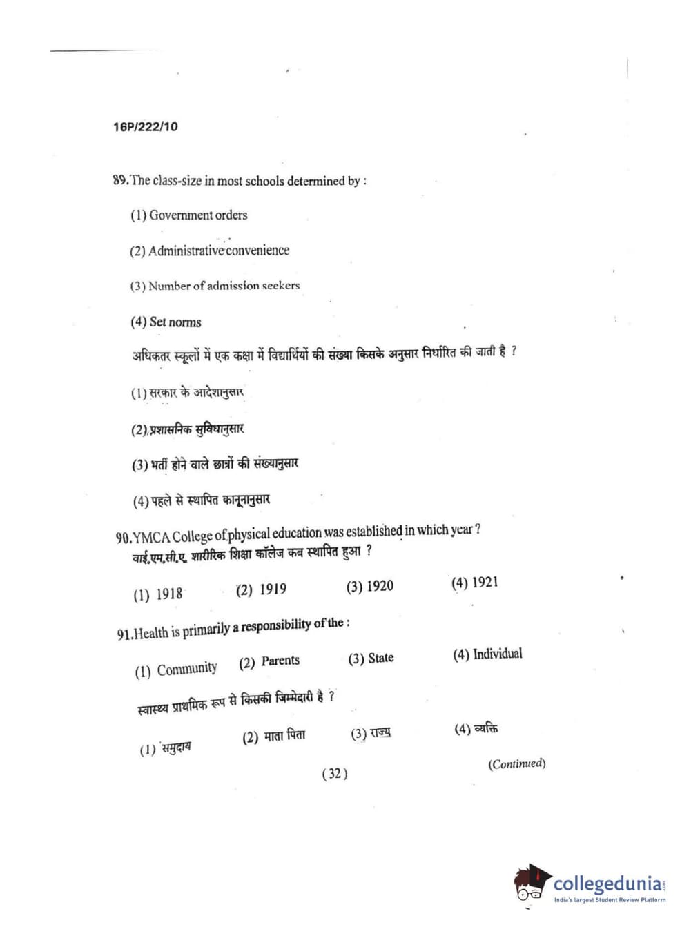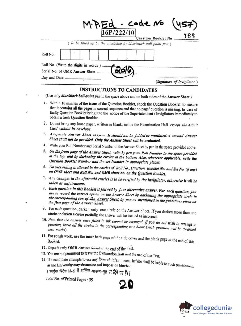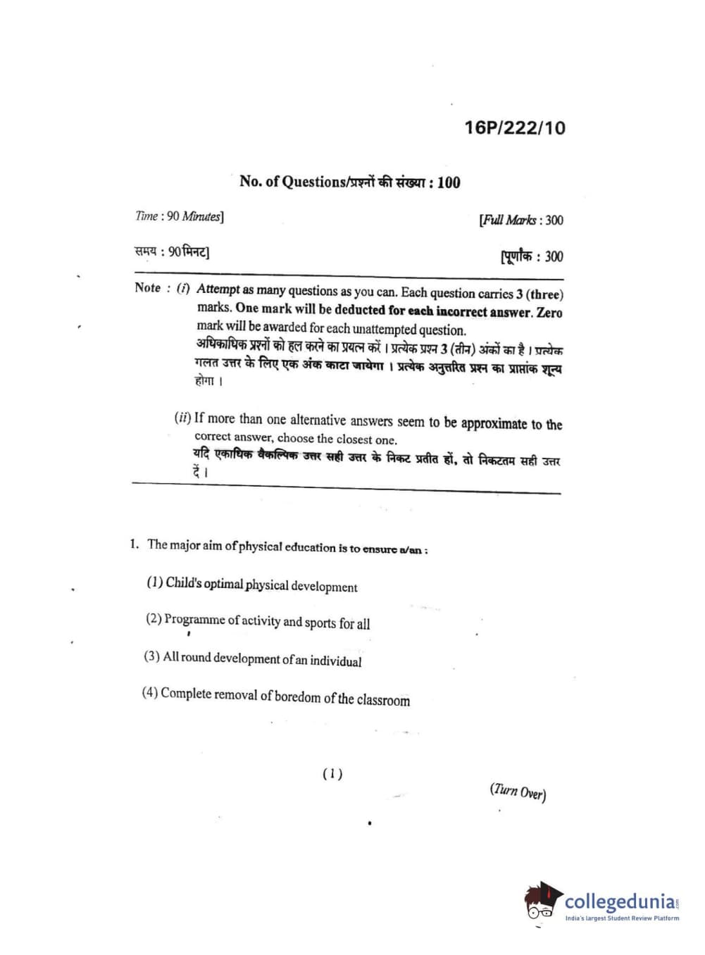 BHU PET 2016 M.P.ED Question paper with answer key pdf is available for download. The exam was successfully organized by Banaras Hindu University (BHU). The question paper comprised a total of 100 questions.