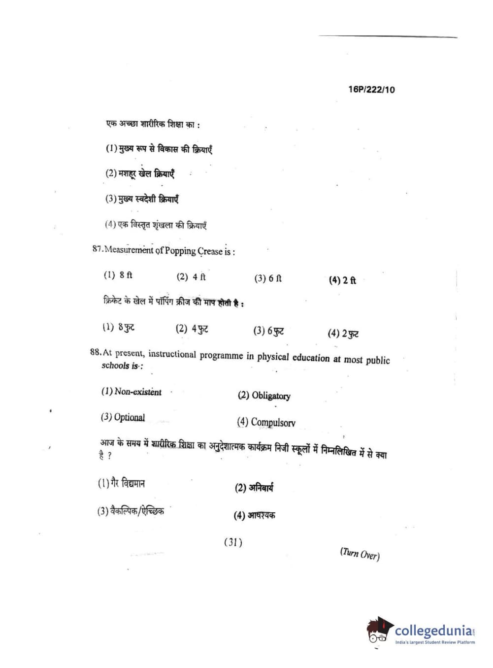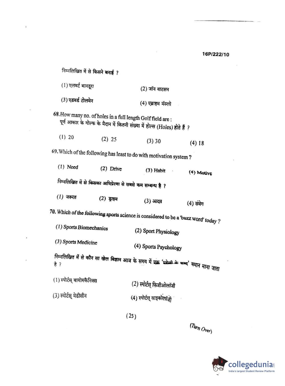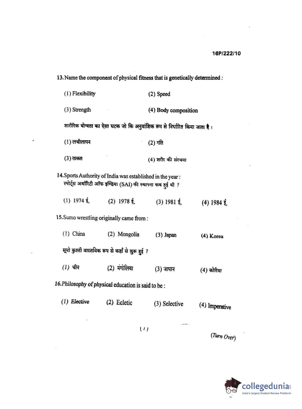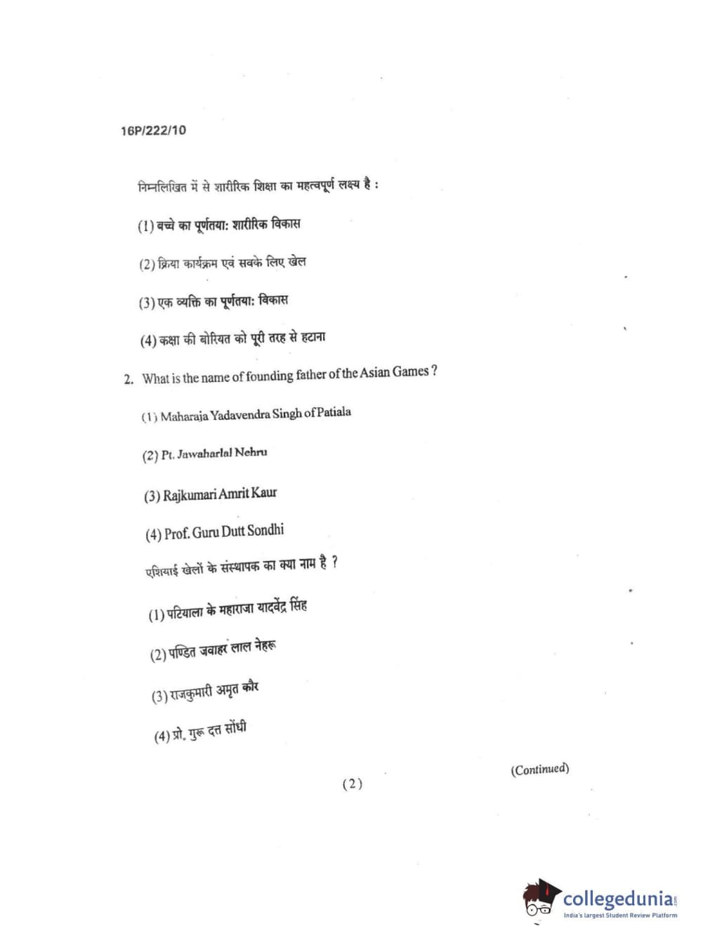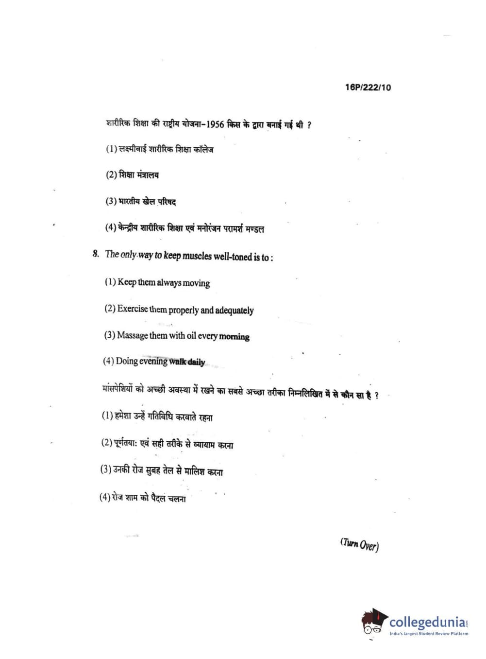 BHU PET 2016 M.P.ED Question Paper with Answer Key PDFs