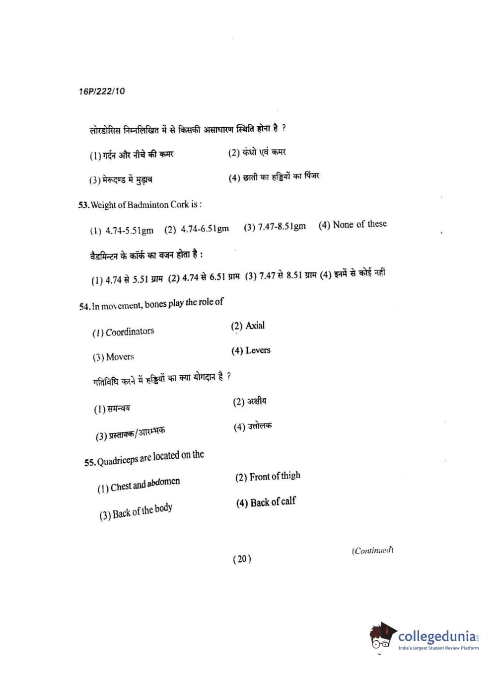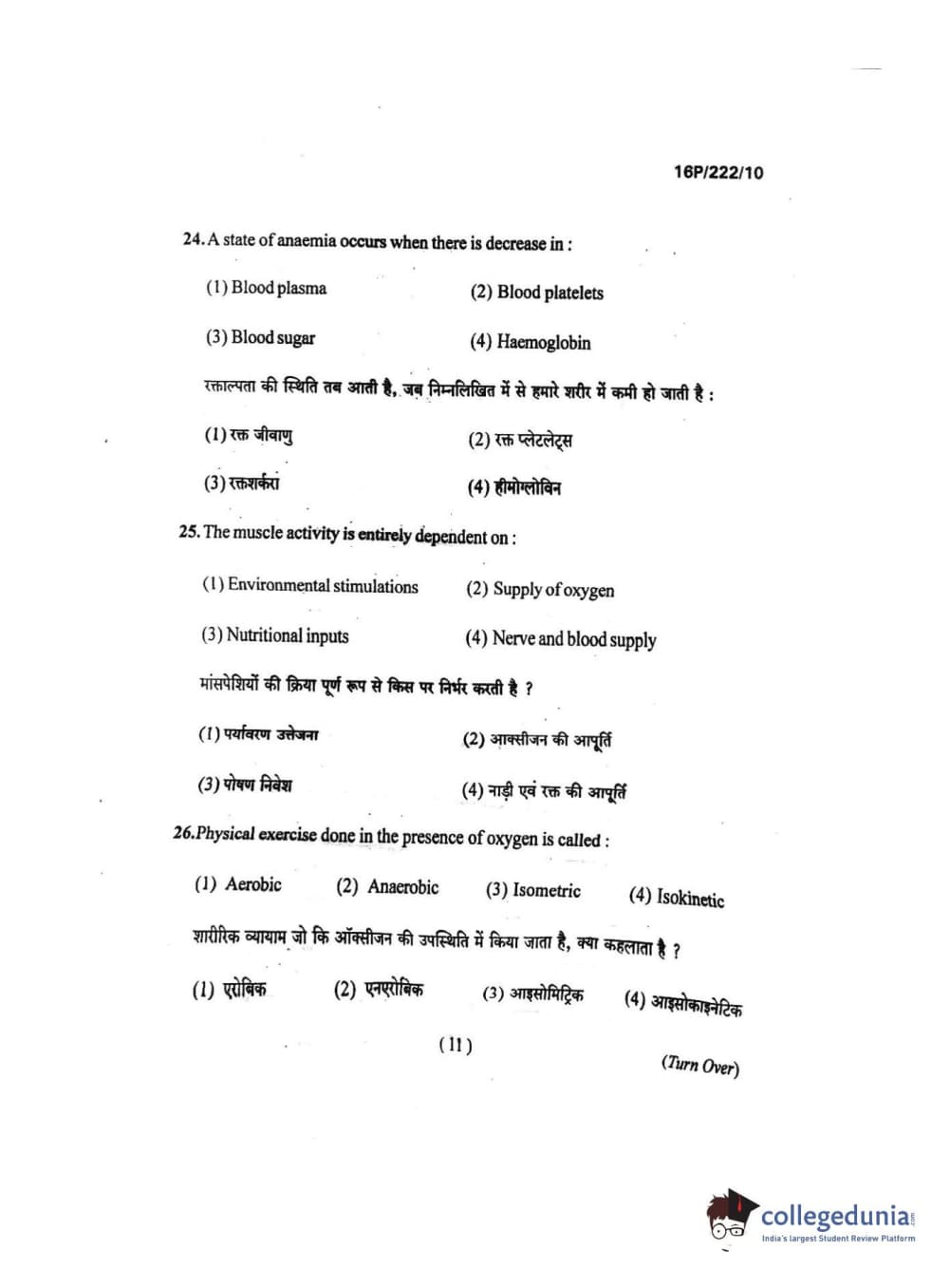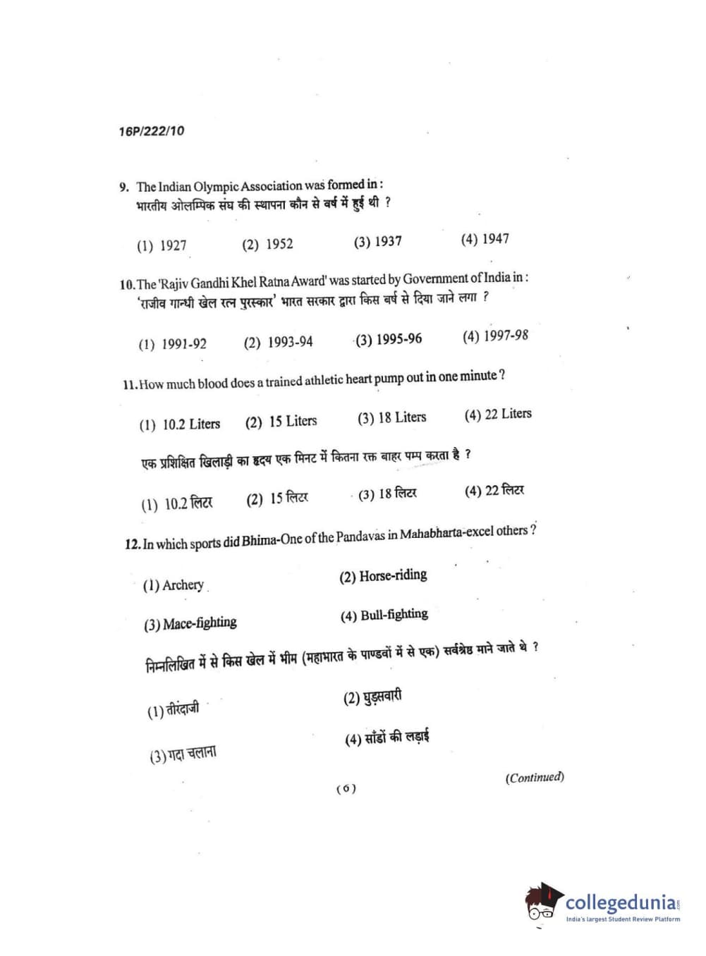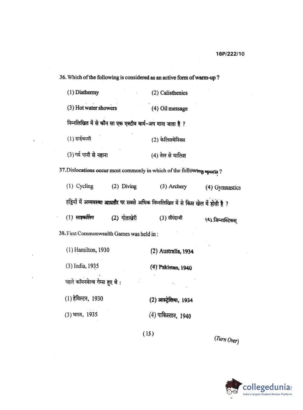 BHU PET 2016 M.P.ED Question Paper with Answer Key PDFs