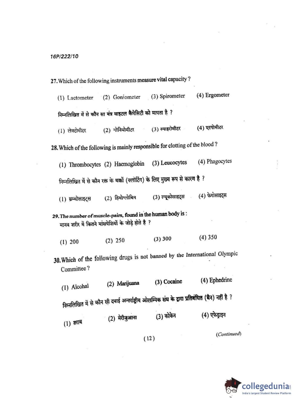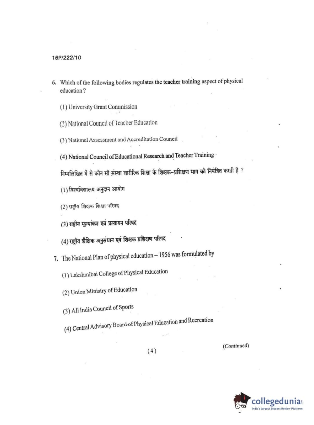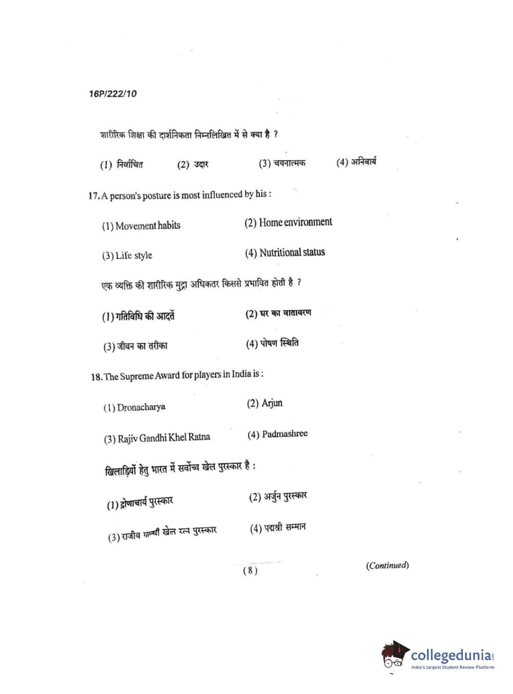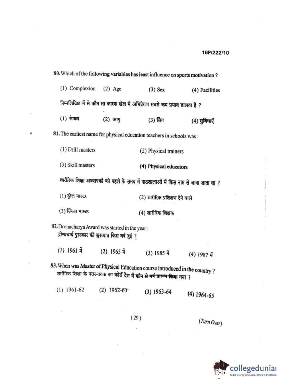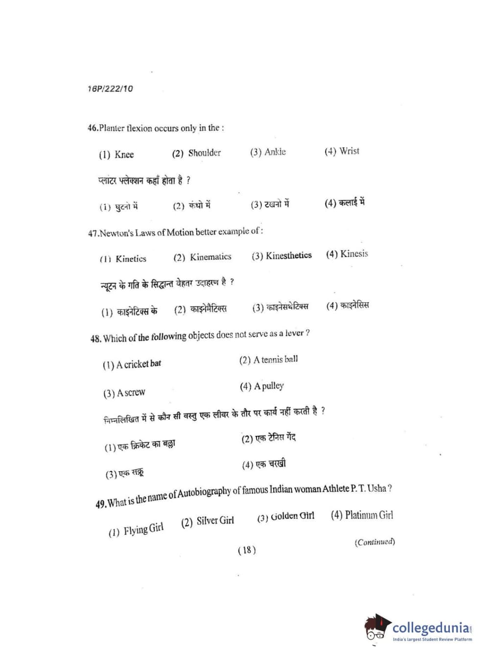 BHU PET 2016 M.P.ED Question Paper with Answer Key PDFs