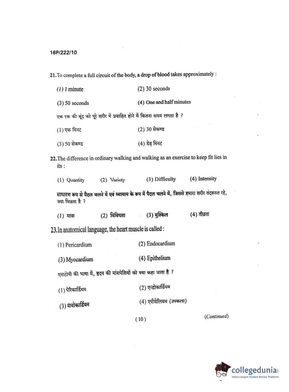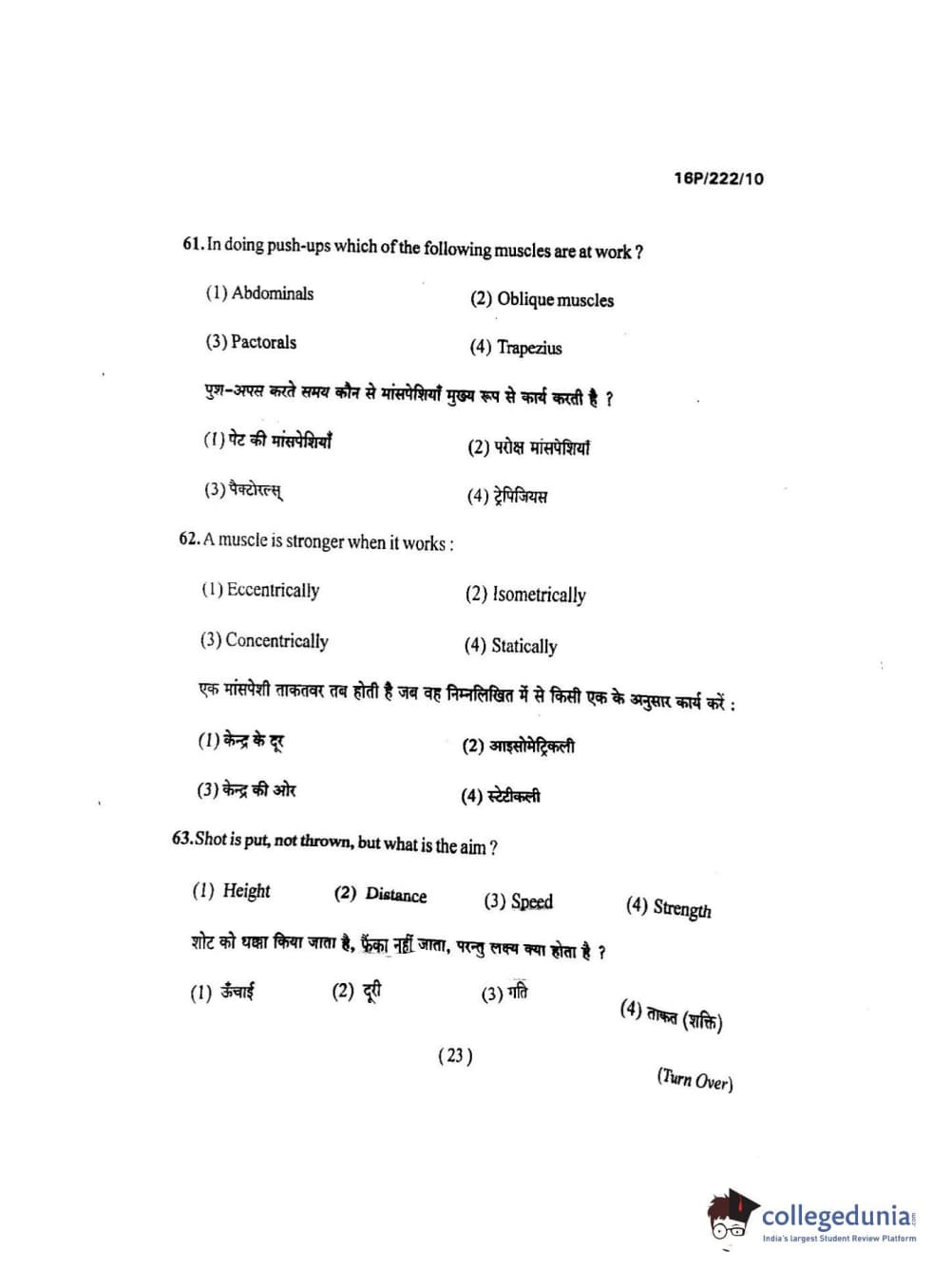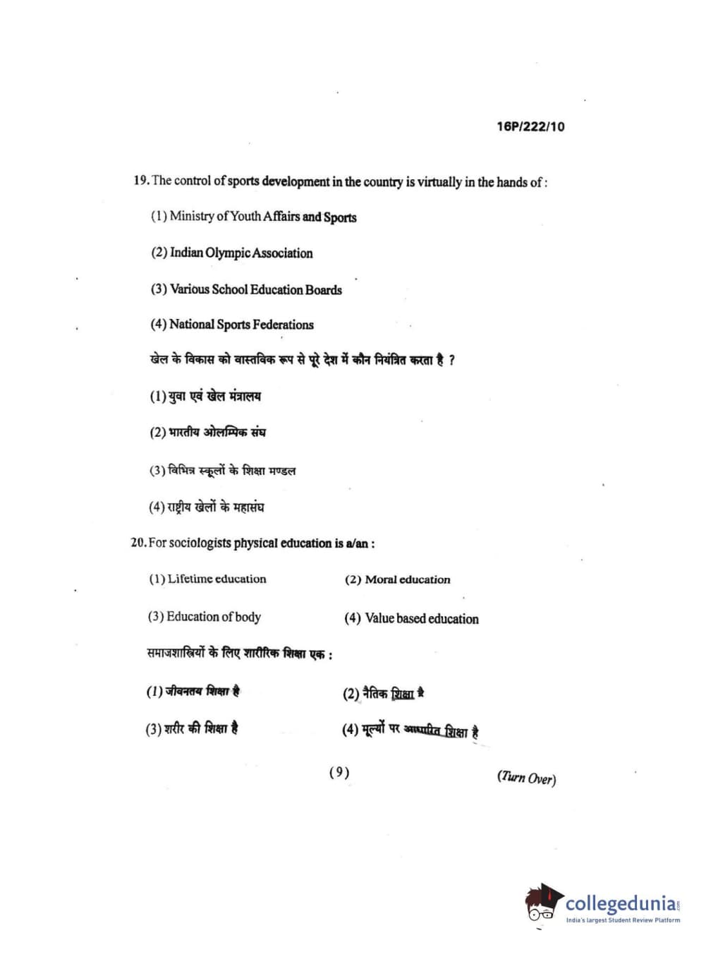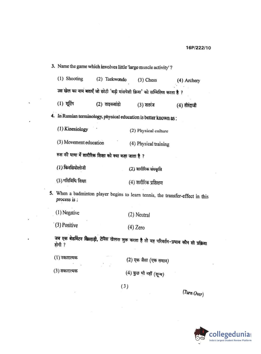BHU PET 2016 M.P.ED Question Paper with Answer Key PDFs