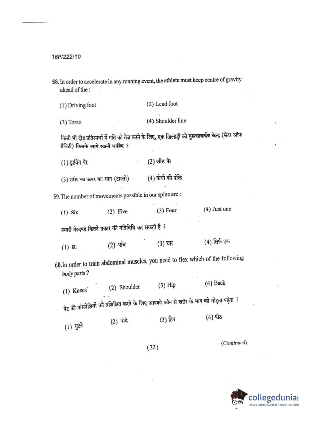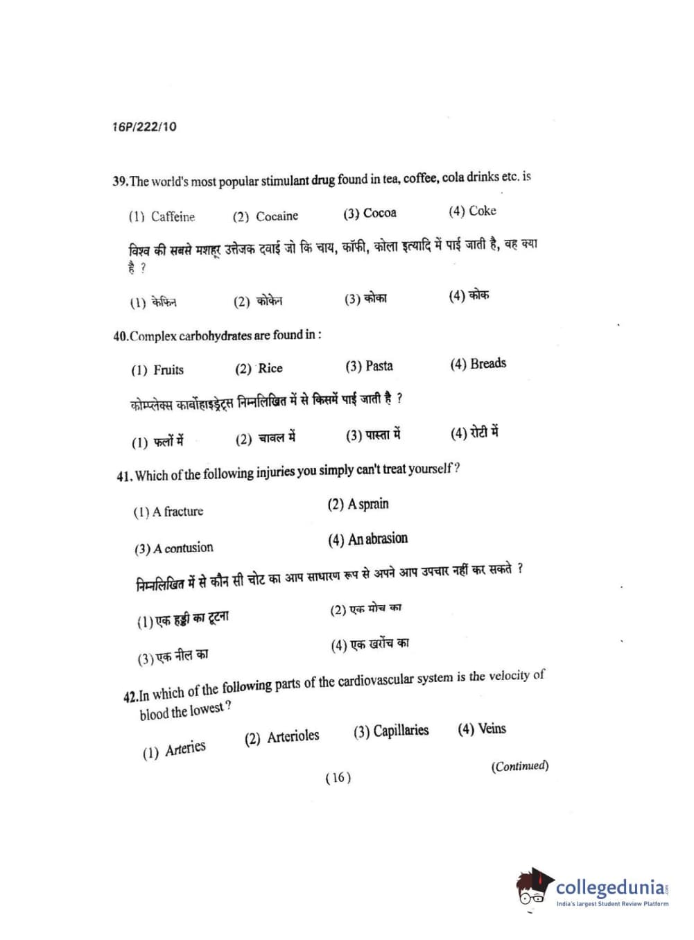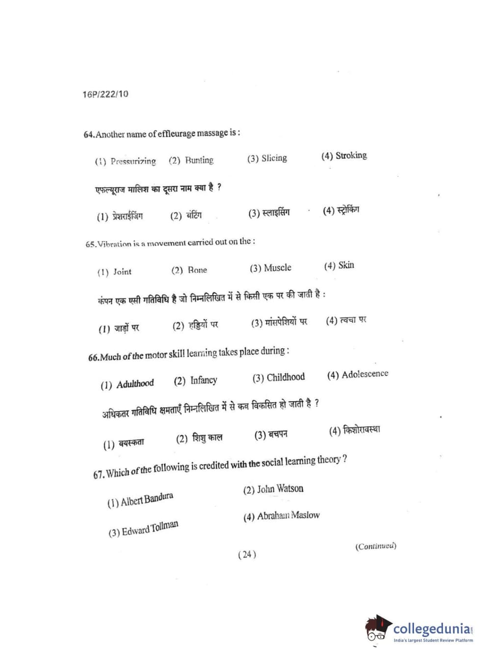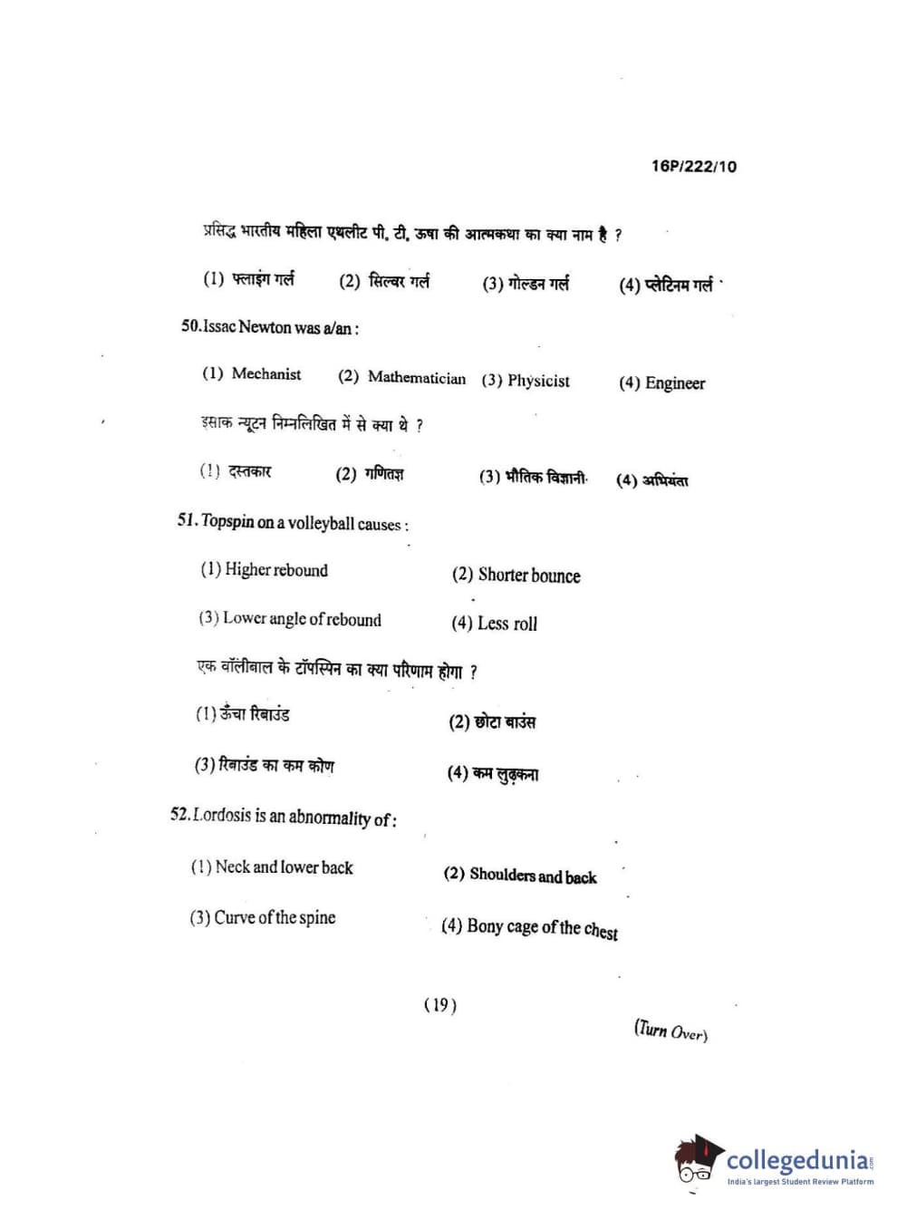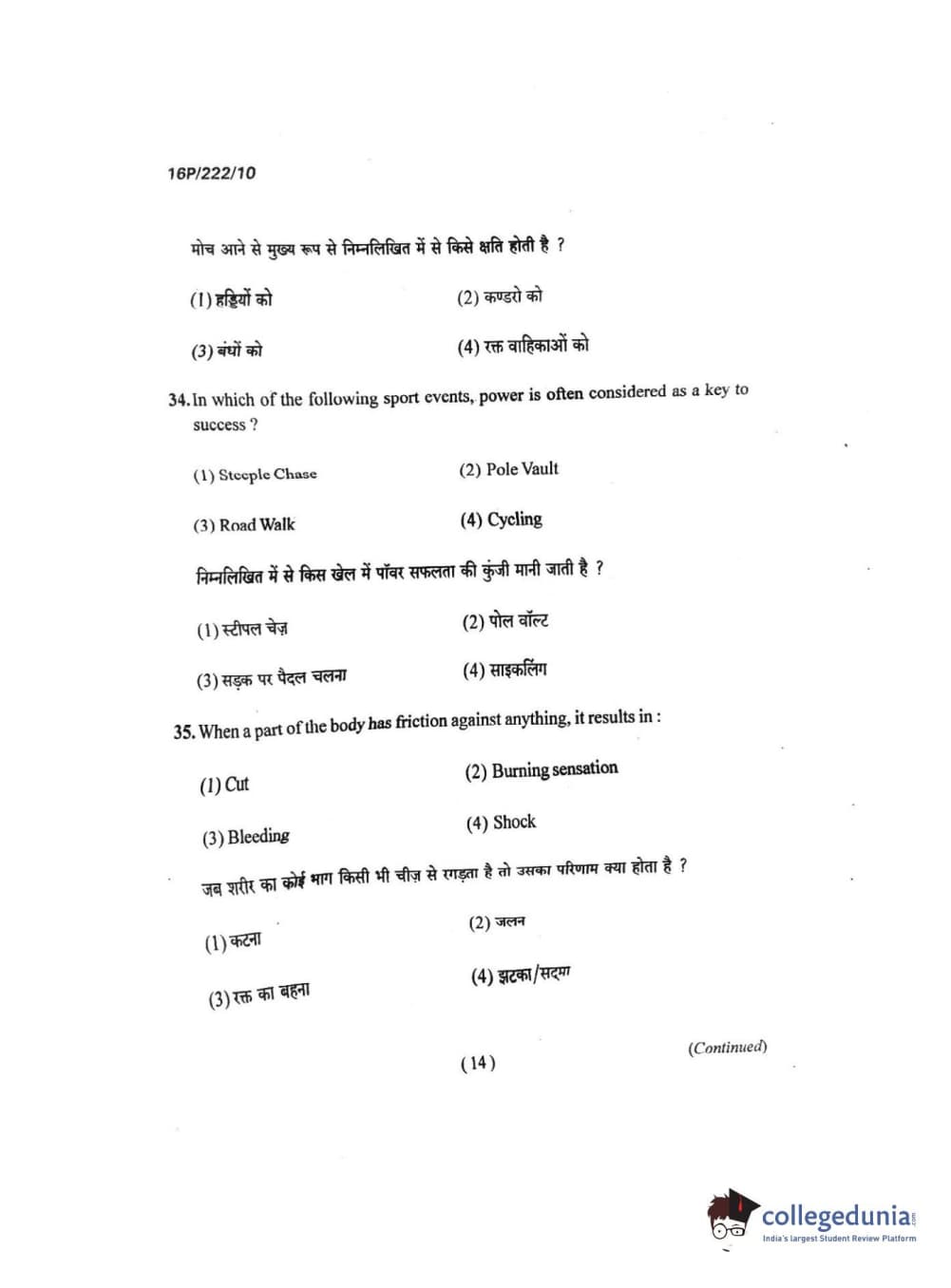 BHU PET 2016 M.P.ED Question Paper with Answer Key PDFs