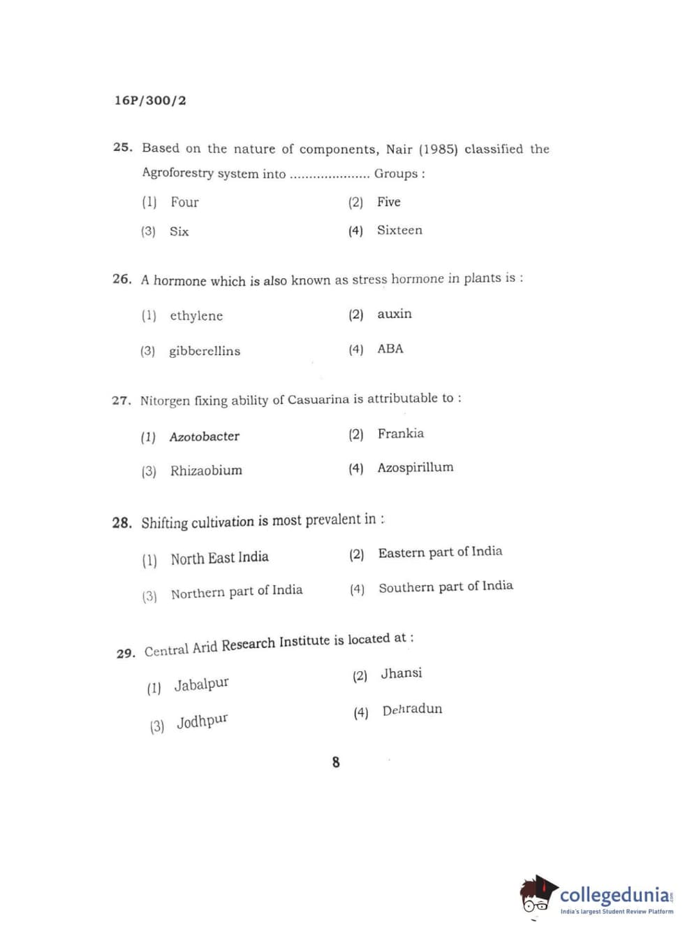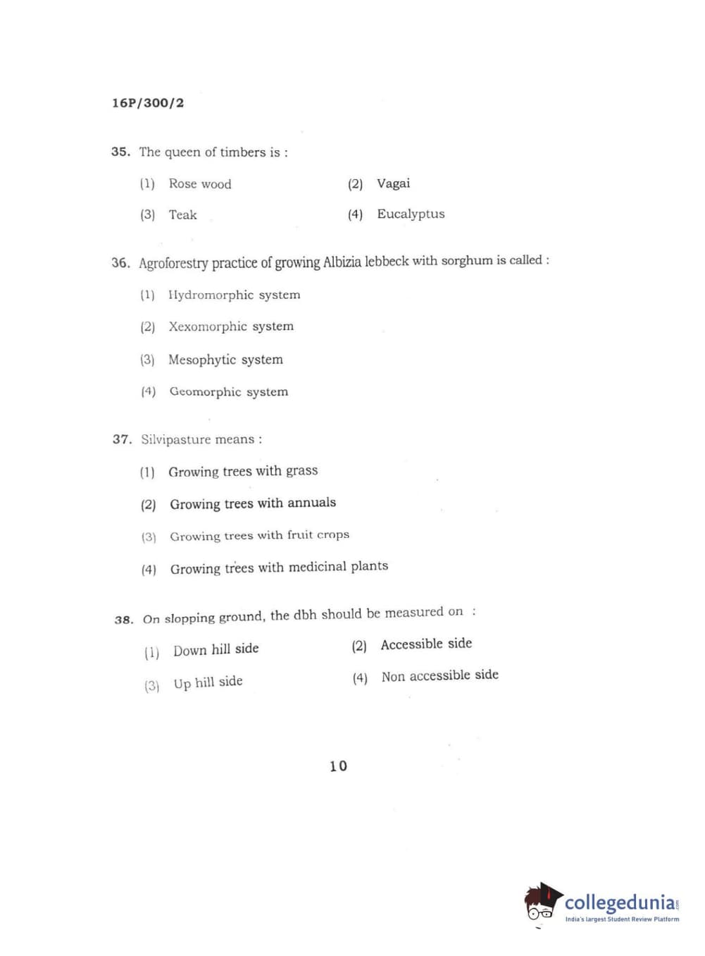 BHU PET 2016 M.SC. AG IN AGROFORESTRY Question Paper with Answer Key PDFs