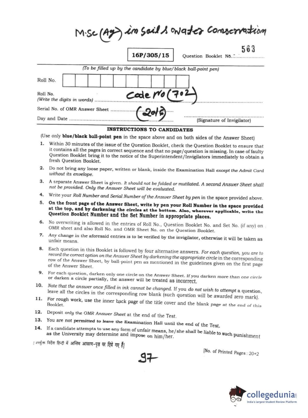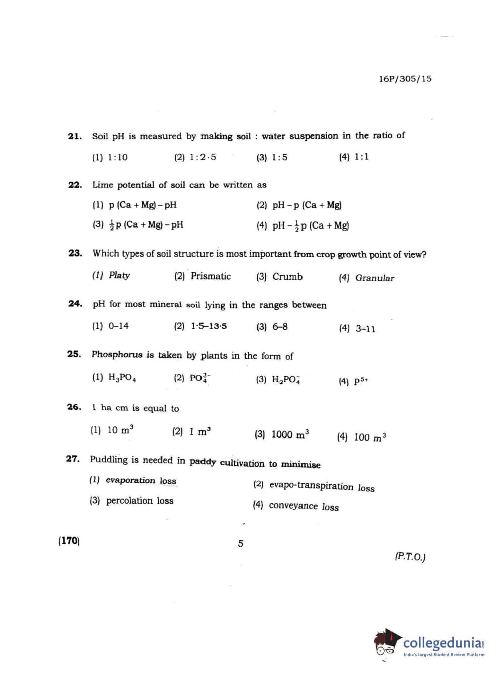 BHU PET 2016 M.SC. AG IN SOIL & WATER CONSER Question paper with answer key pdf is available for download. The exam was successfully organized by Banaras Hindu University (BHU). The question paper comprised a total of 120 questions.