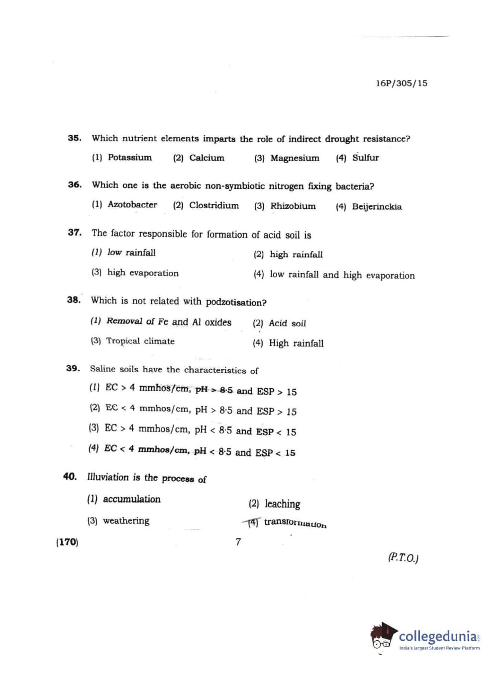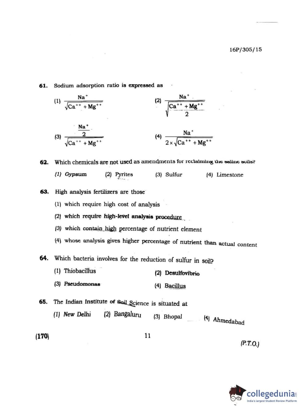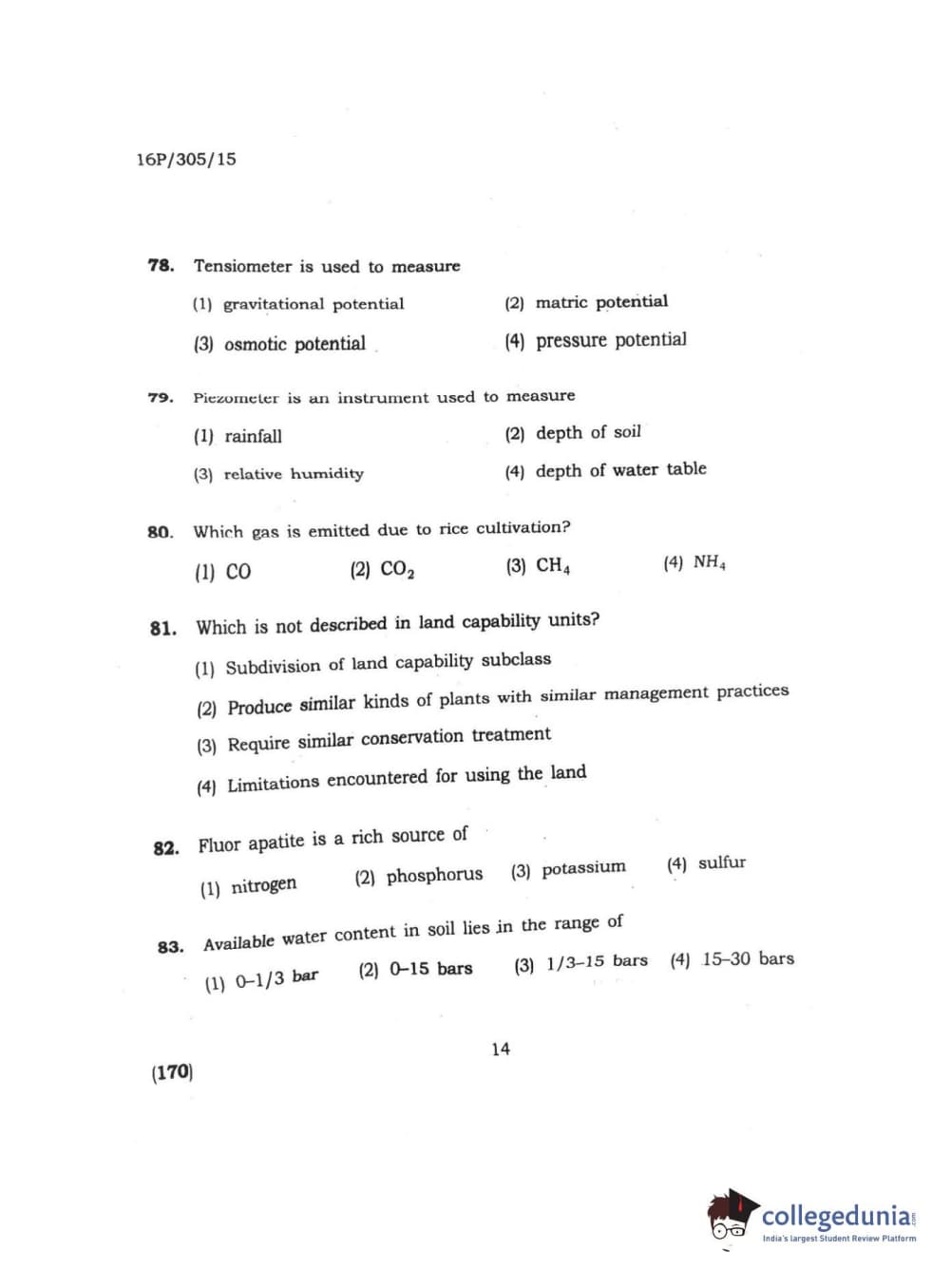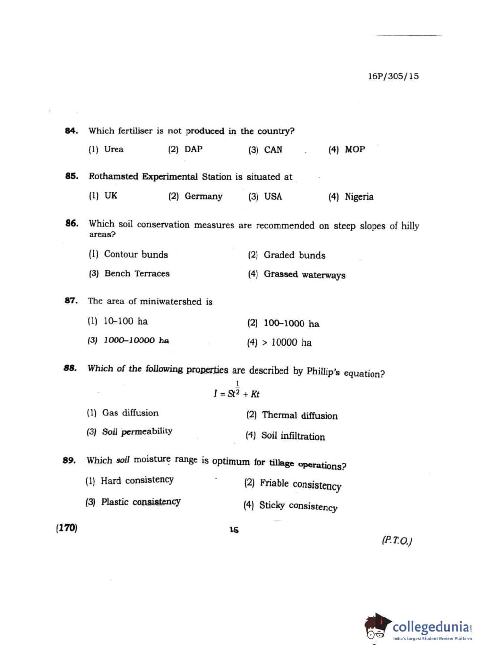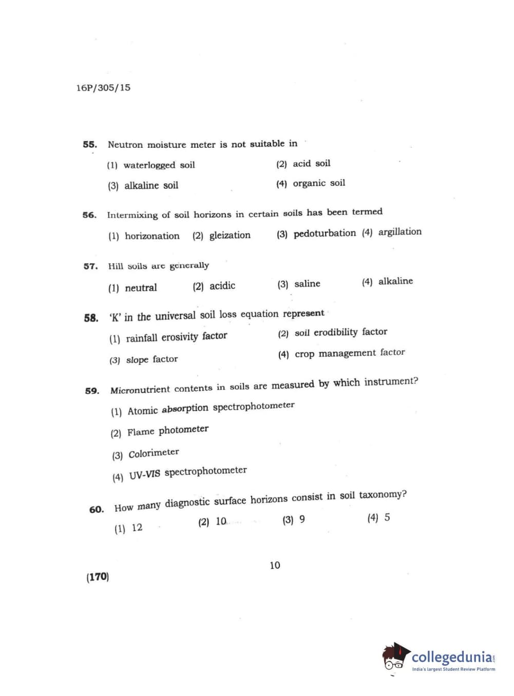 | BHU PET 2016 M.SC. AG IN SOIL & WATER CONSER Question Paper PDF | BHU PET 2016 M.SC. AG IN SOIL & WATER CONSER Answer Key PDF |