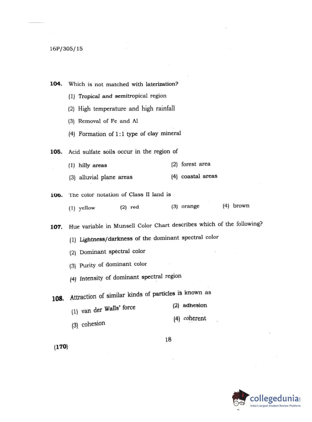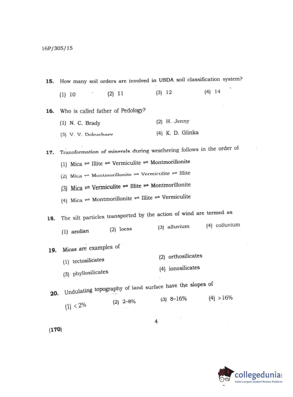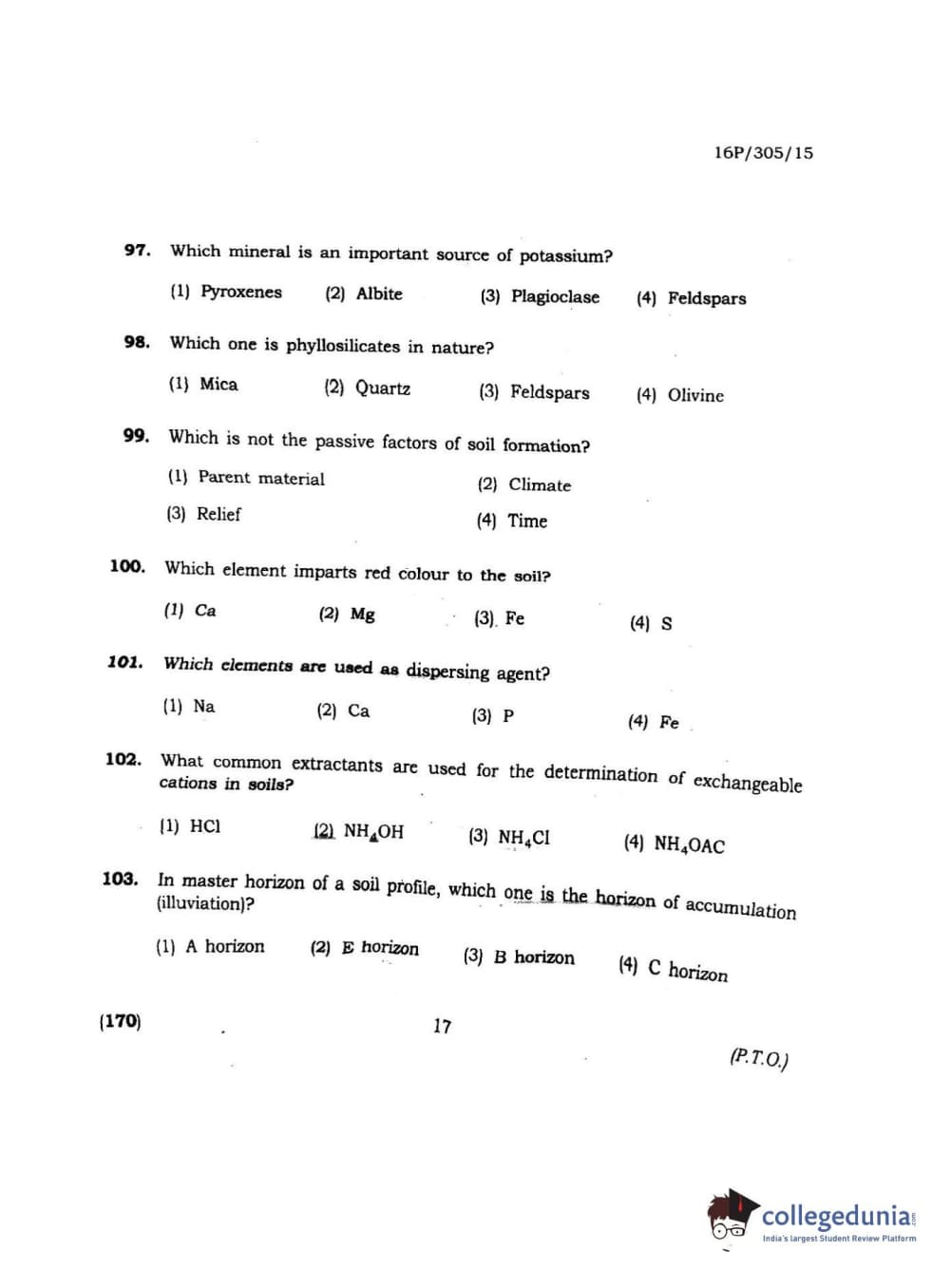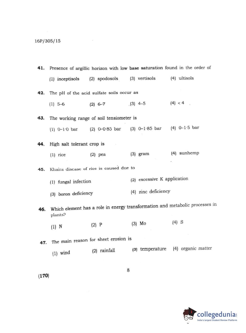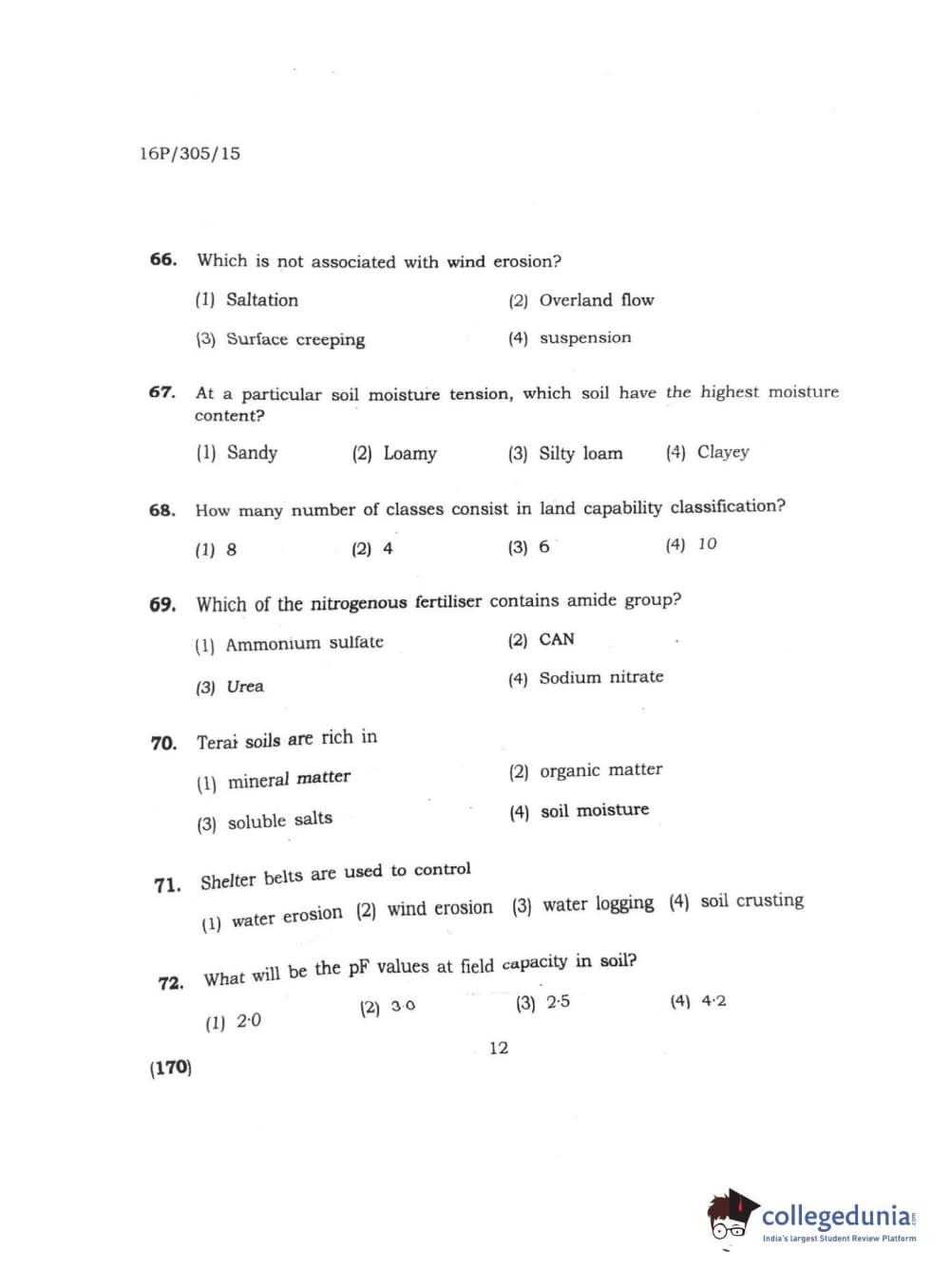 | BHU PET 2016 M.SC. AG IN SOIL & WATER CONSER Question Paper PDF | BHU PET 2016 M.SC. AG IN SOIL & WATER CONSER Answer Key PDF |