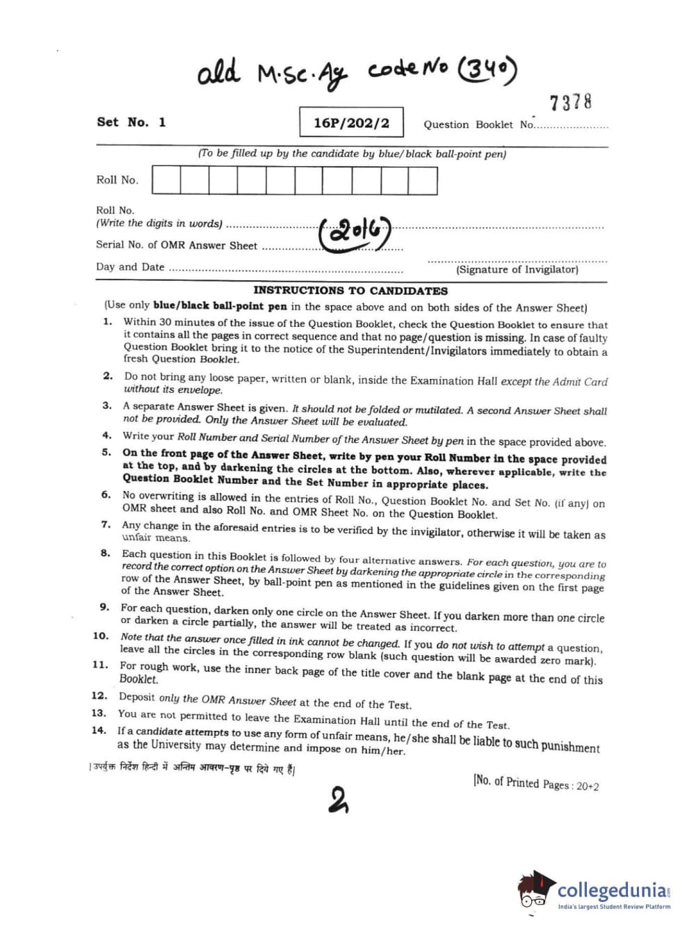 | BHU PET 2016 M.SC. AG Question Paper PDF | BHU PET 2016 M.SC. AG Answer Key PDF |