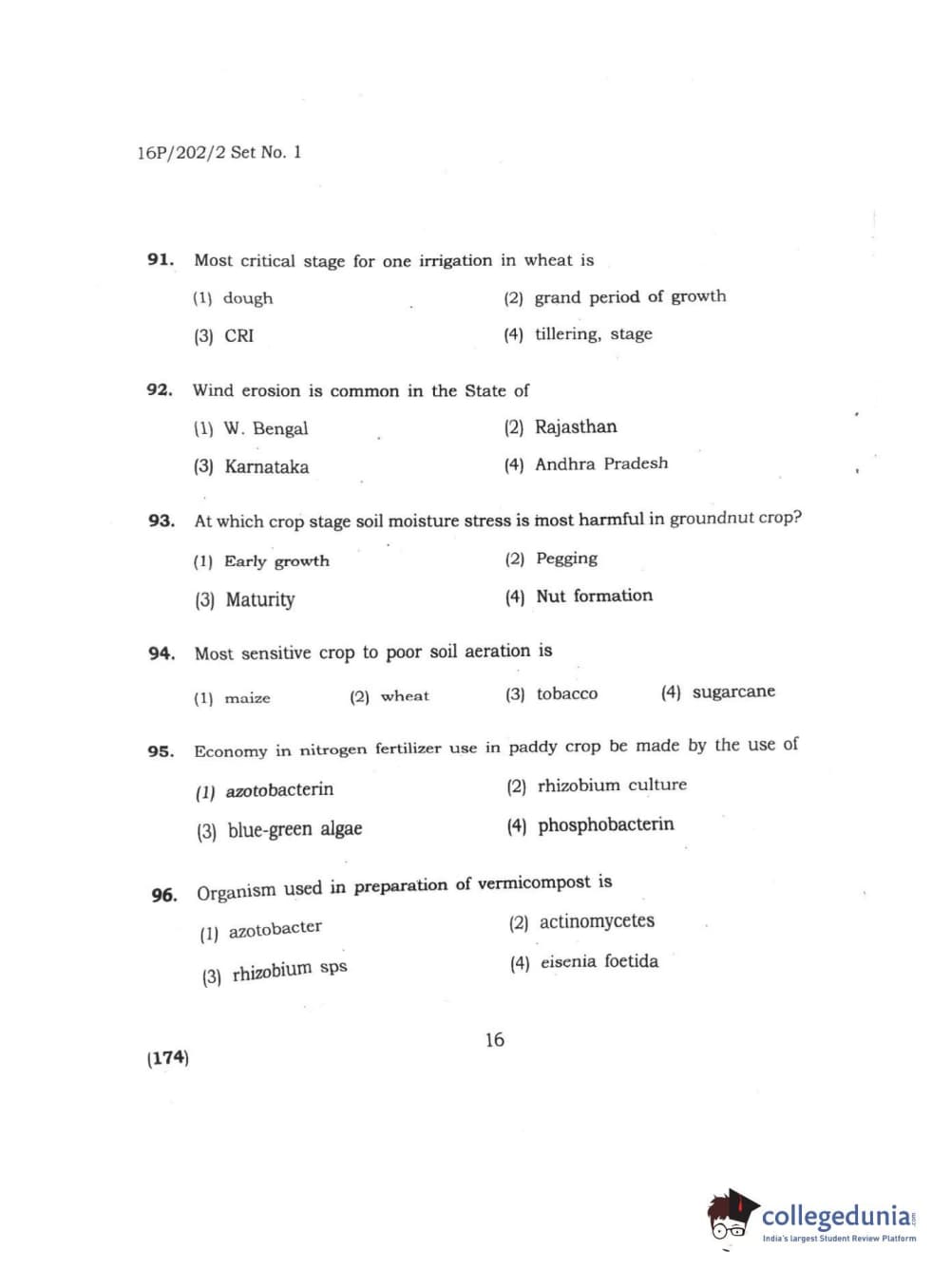 BHU PET 2016 M.SC. AG Question Paper with Answer Key PDFs